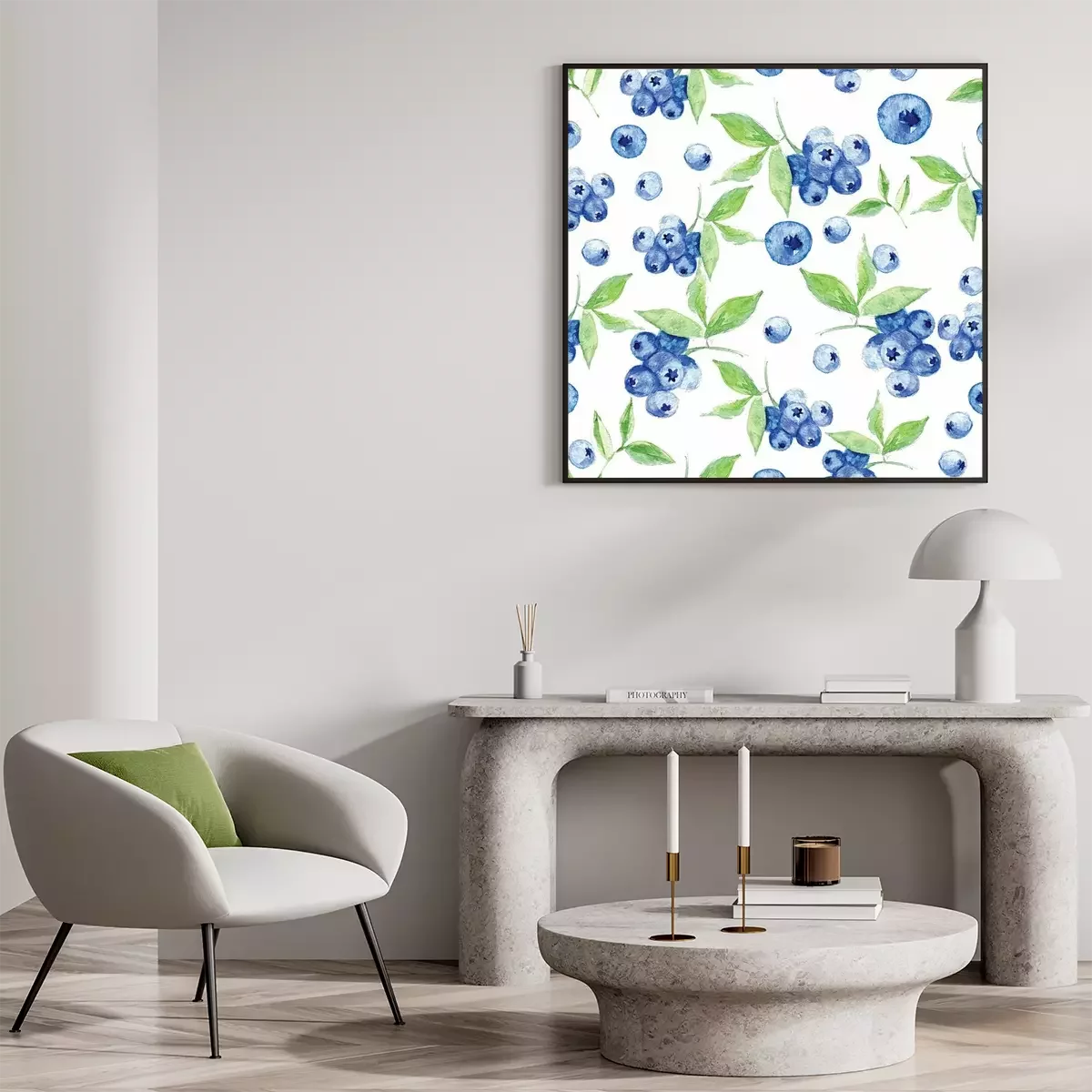 Poster  Modèle sans couture d'aquarelle et de myrtille sur fond blanc