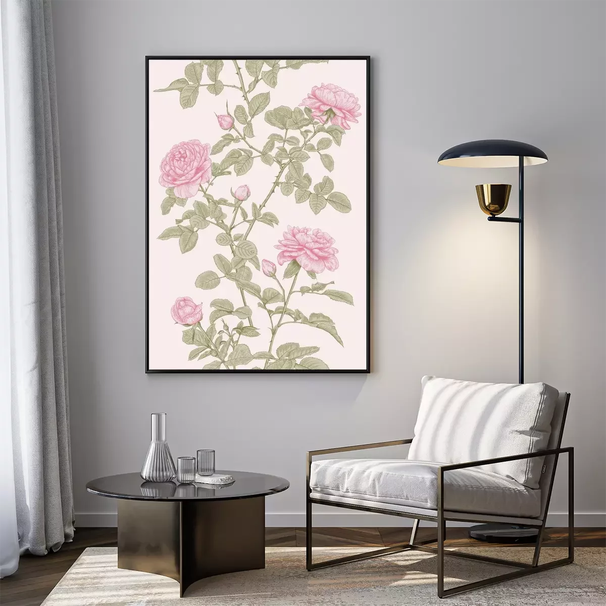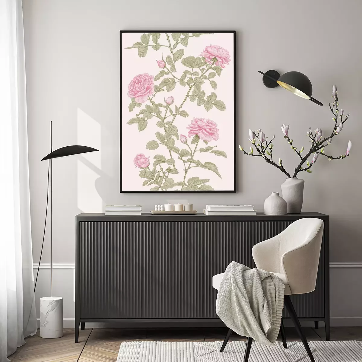 Poster : Modèle vertical de roses et de brindilles
