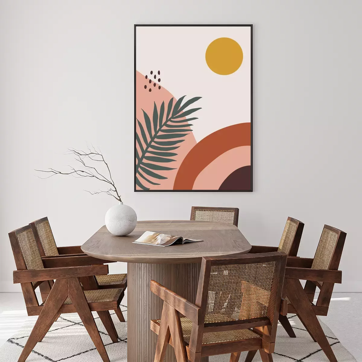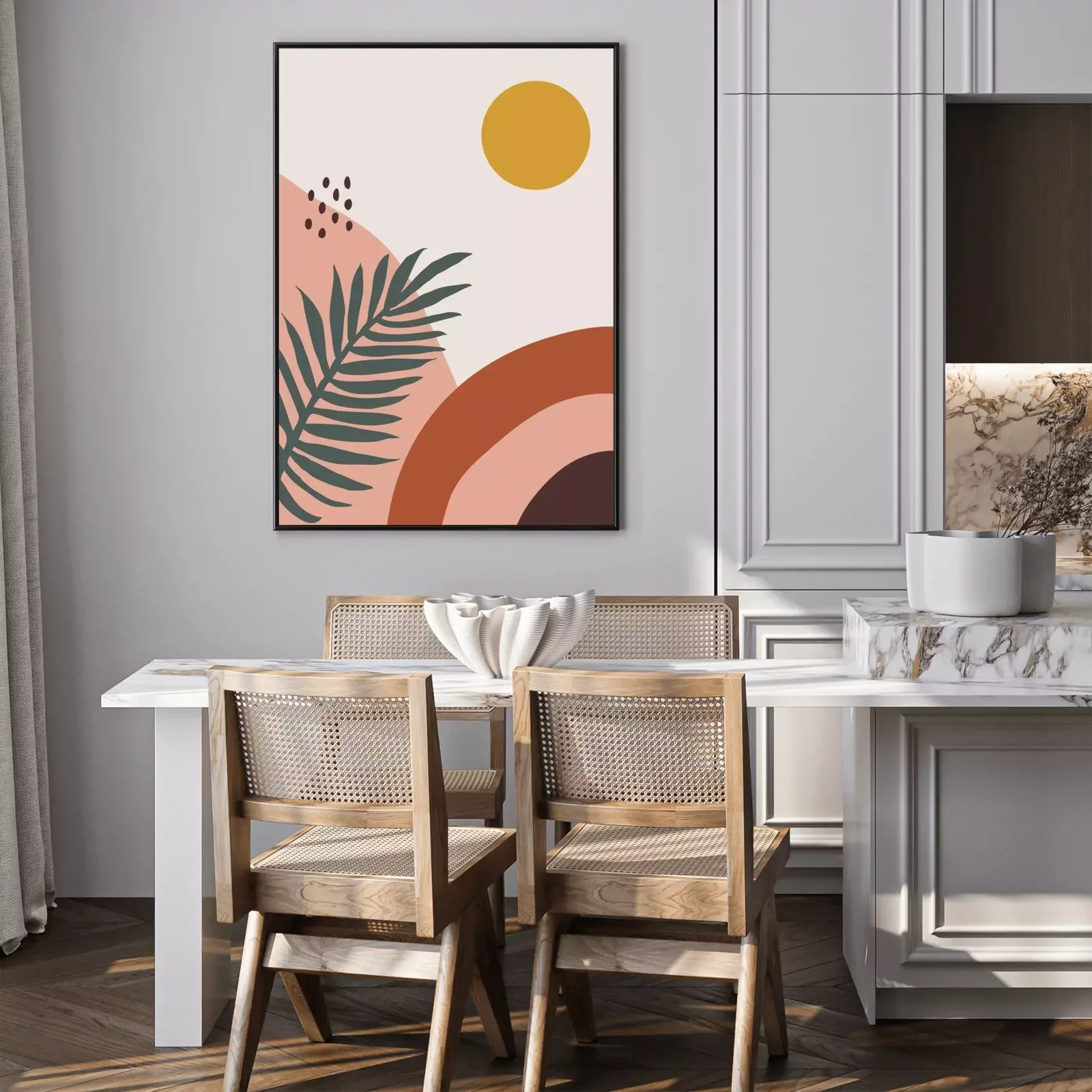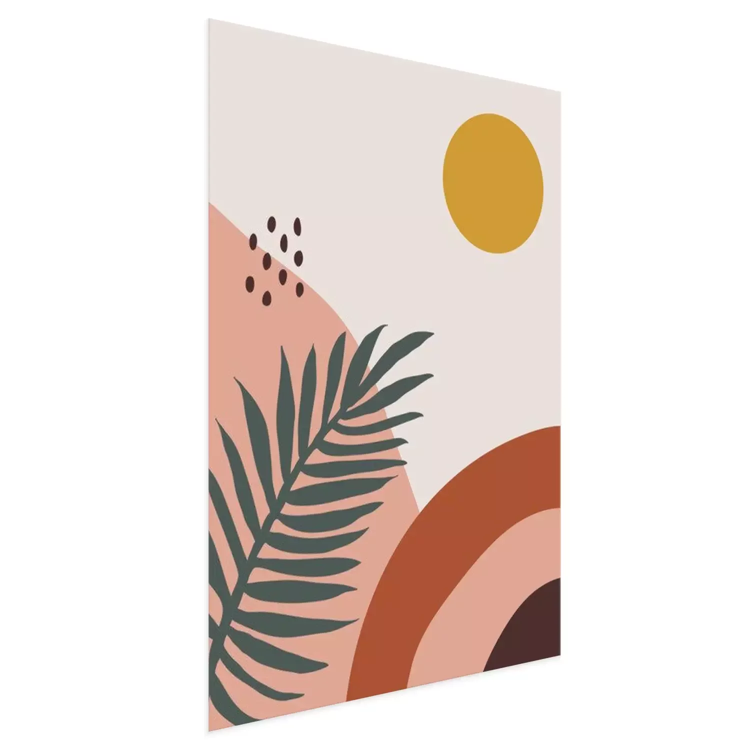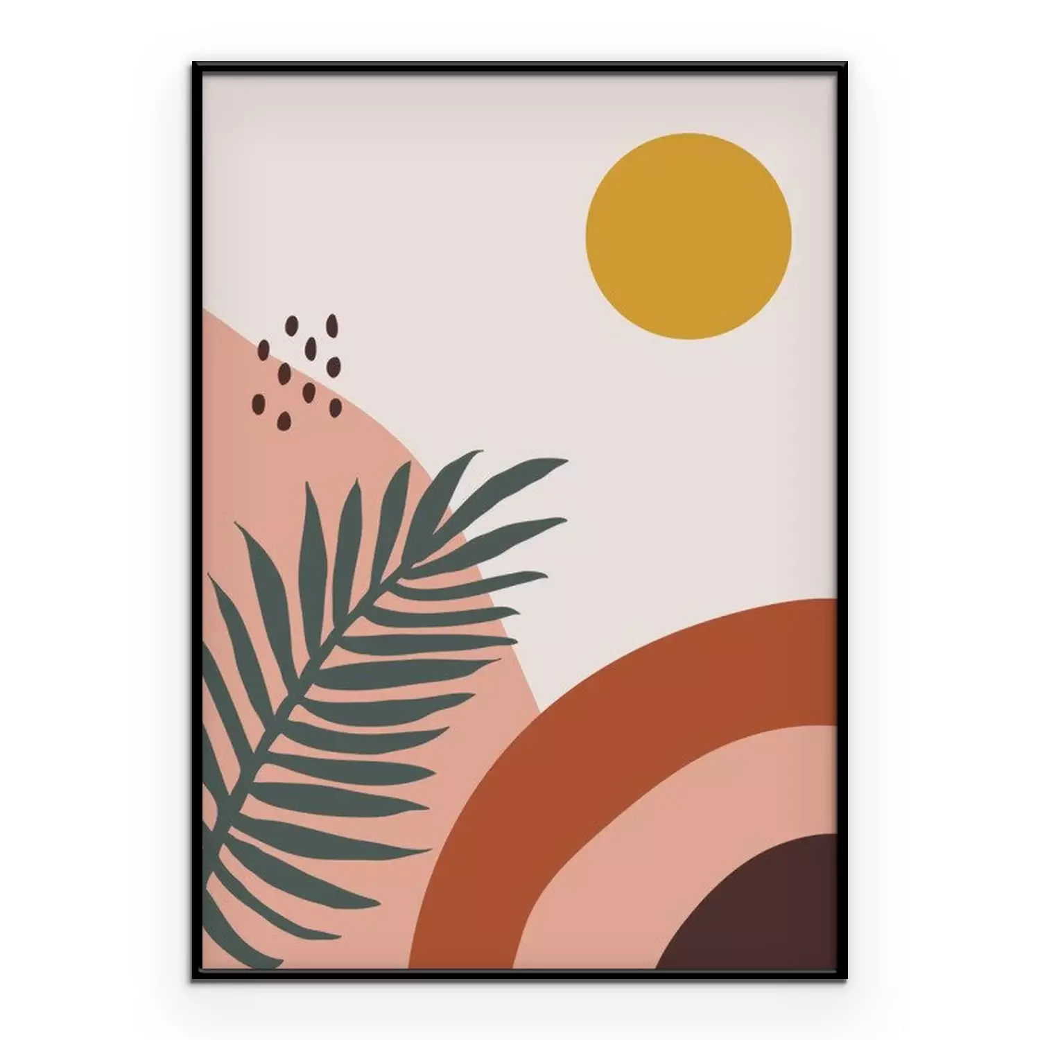 Poster : Modern abstract aesthetic background with hand drawn shapes and leaves. Wall decor in boho style. Mid century vector print for cover, wallpaper, card, social media, interior decor
