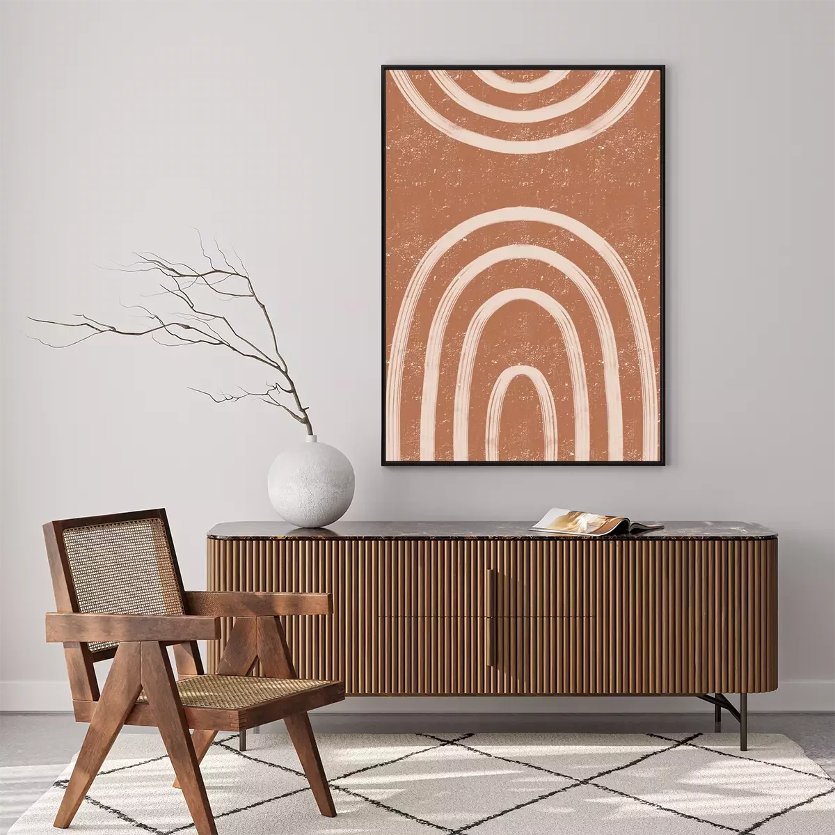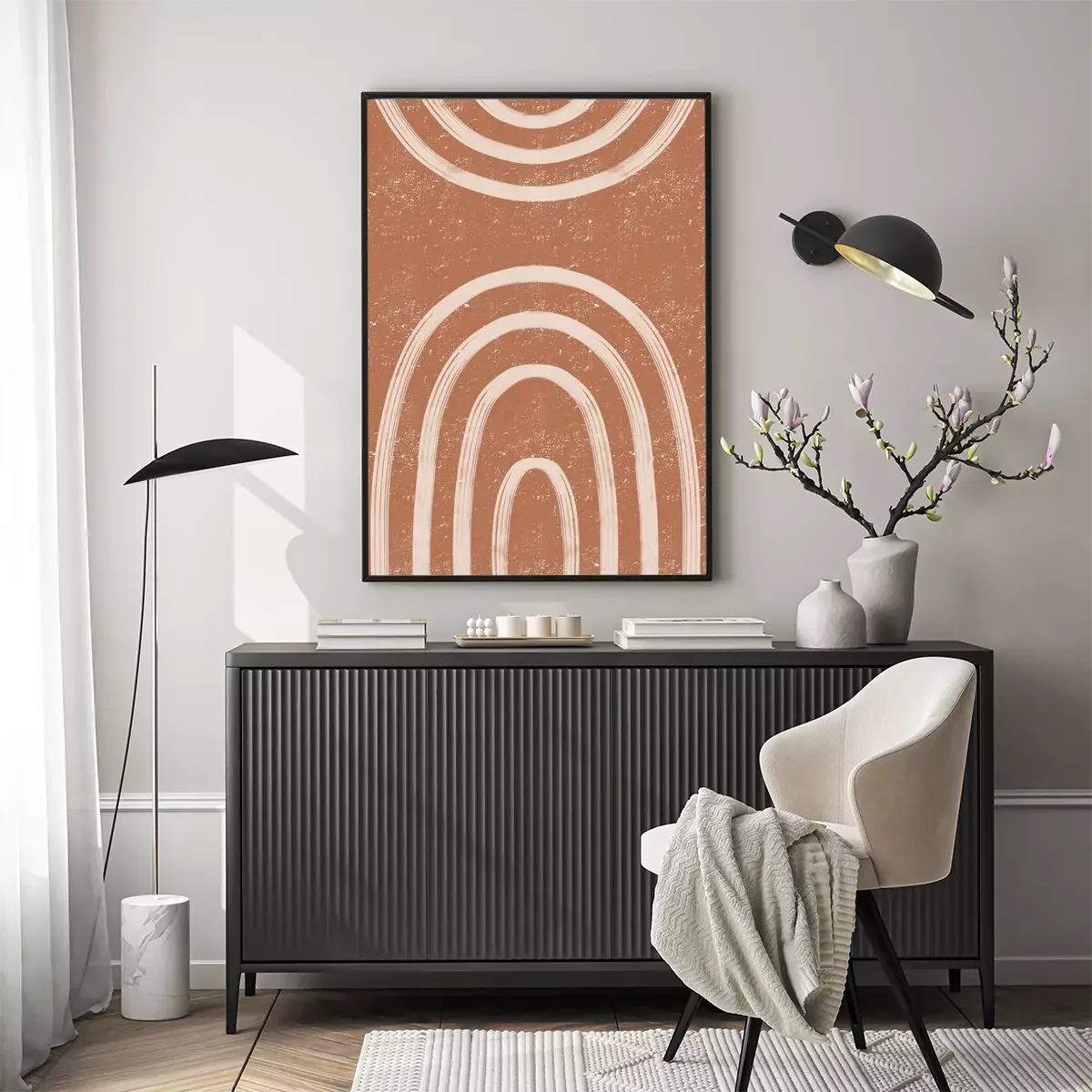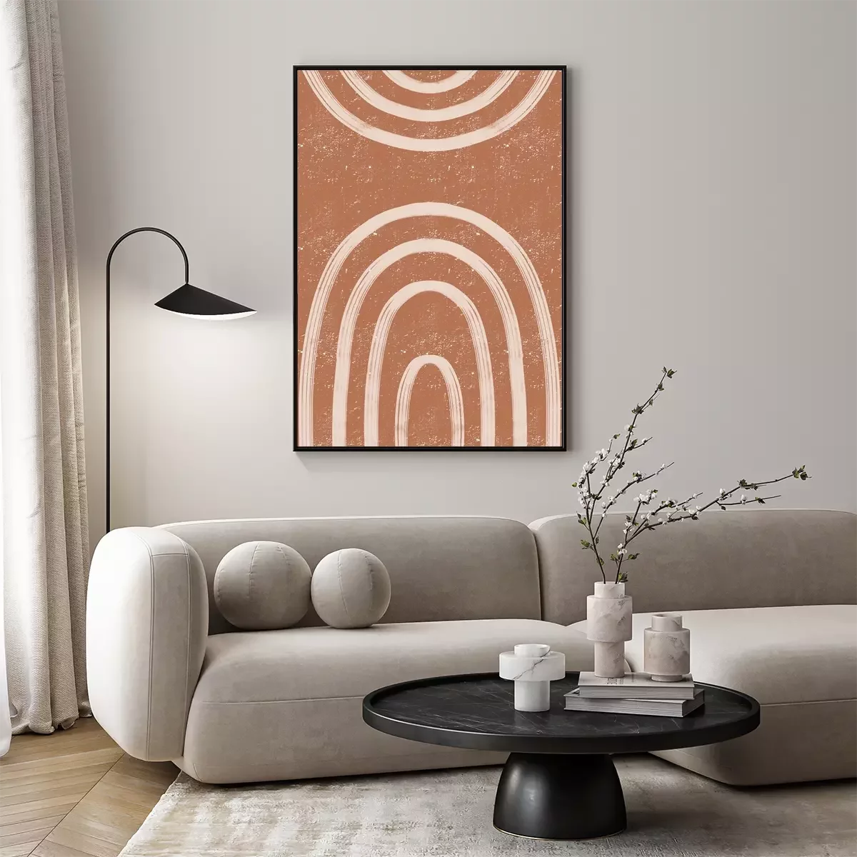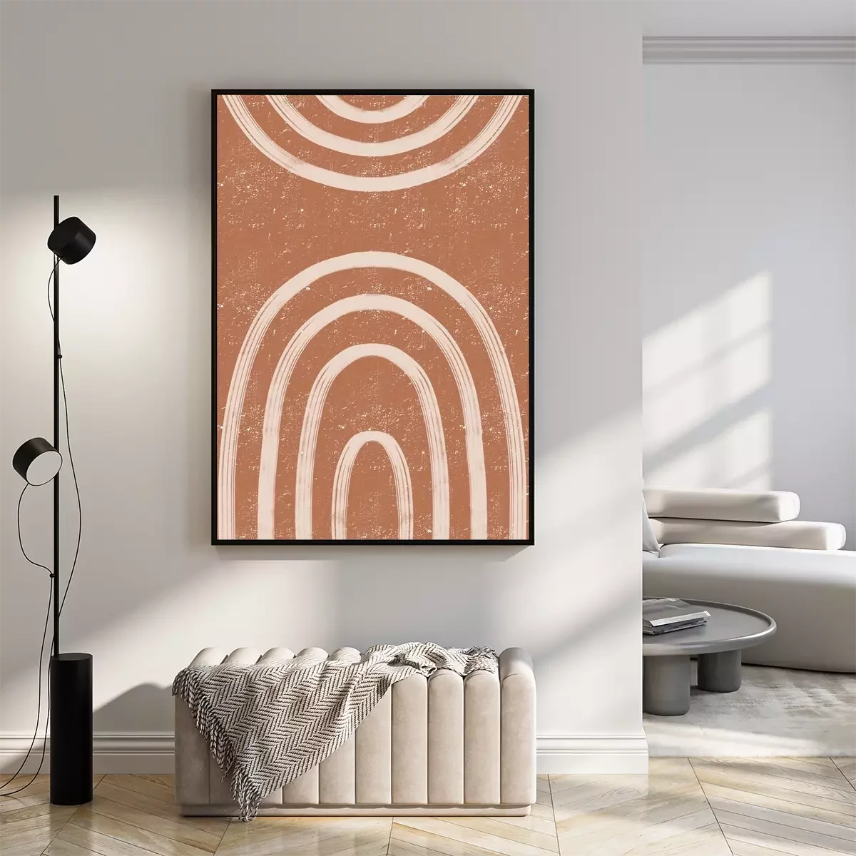 Poster : Modern abstract art with geometric lines rainbows. Minimalist boho decor for printable. Hand drawn illustration in sand palette. Styled design for home decor.