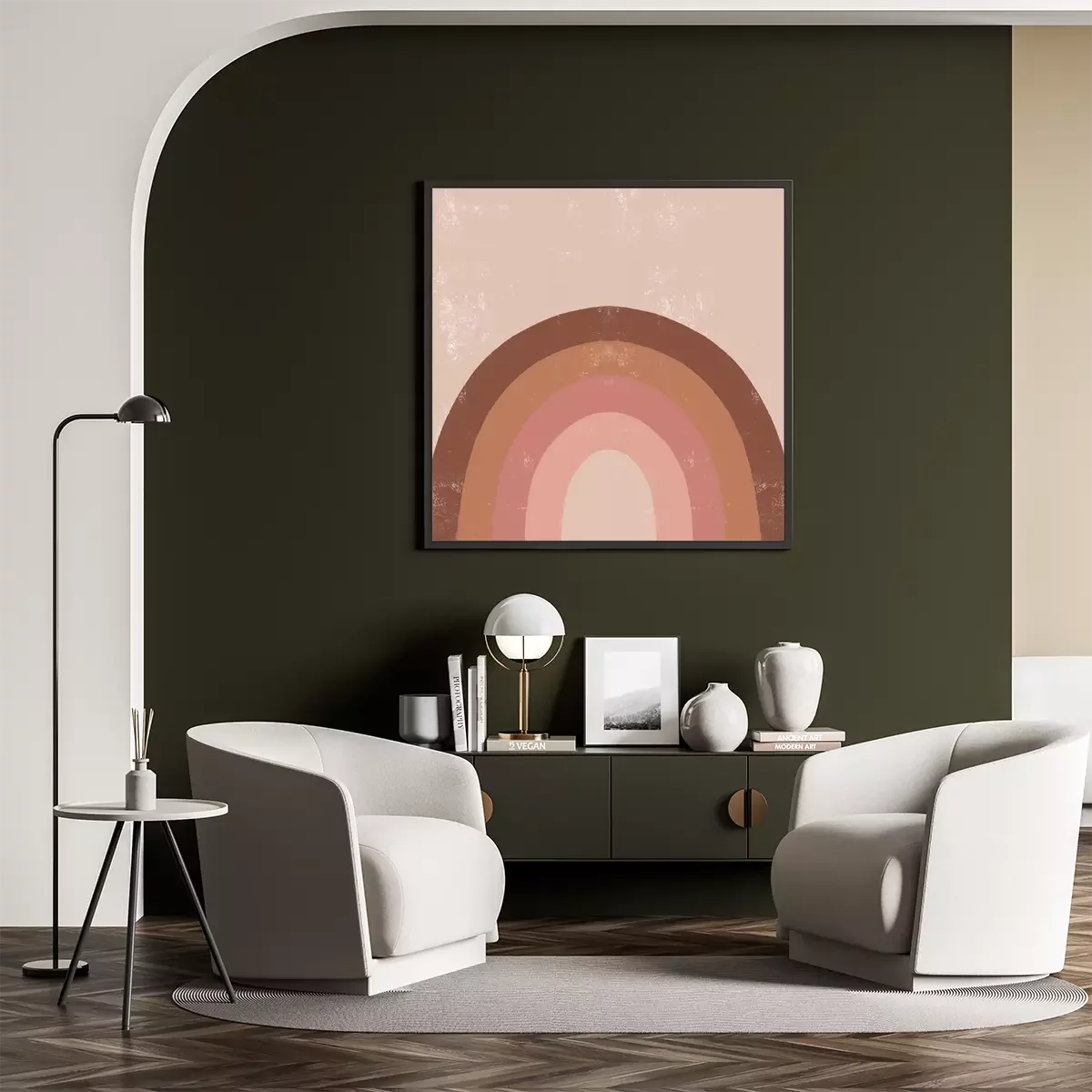 Poster : Modern abstract art with textured rainbow. Minimalist boho style for design and decoration. Hand drawn illustration in pastel colors. Perfect for home and nursery decor.