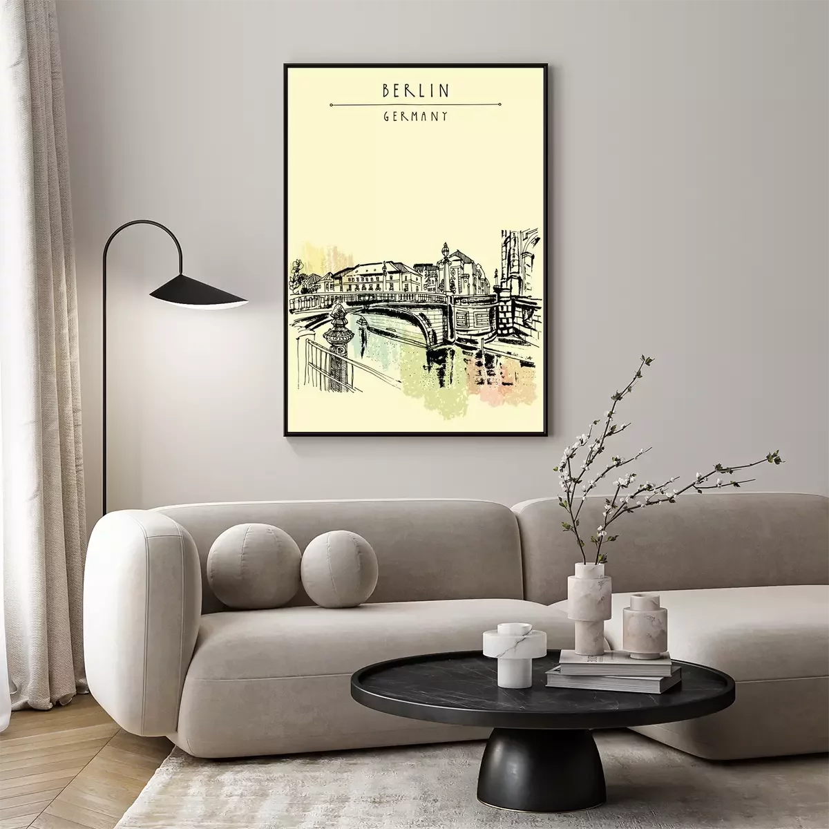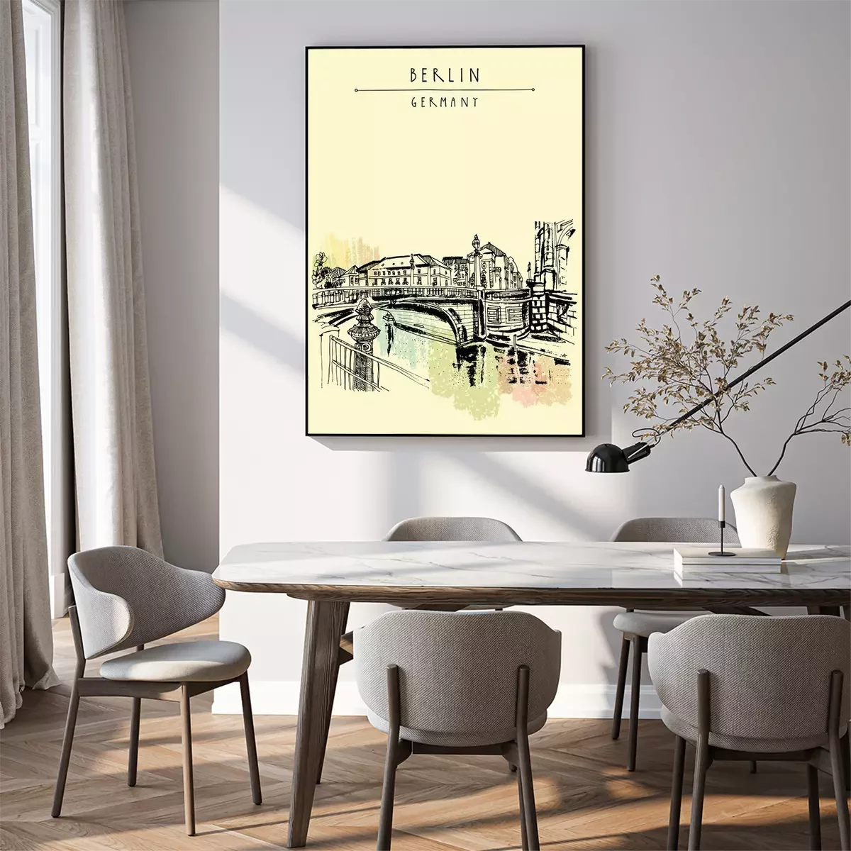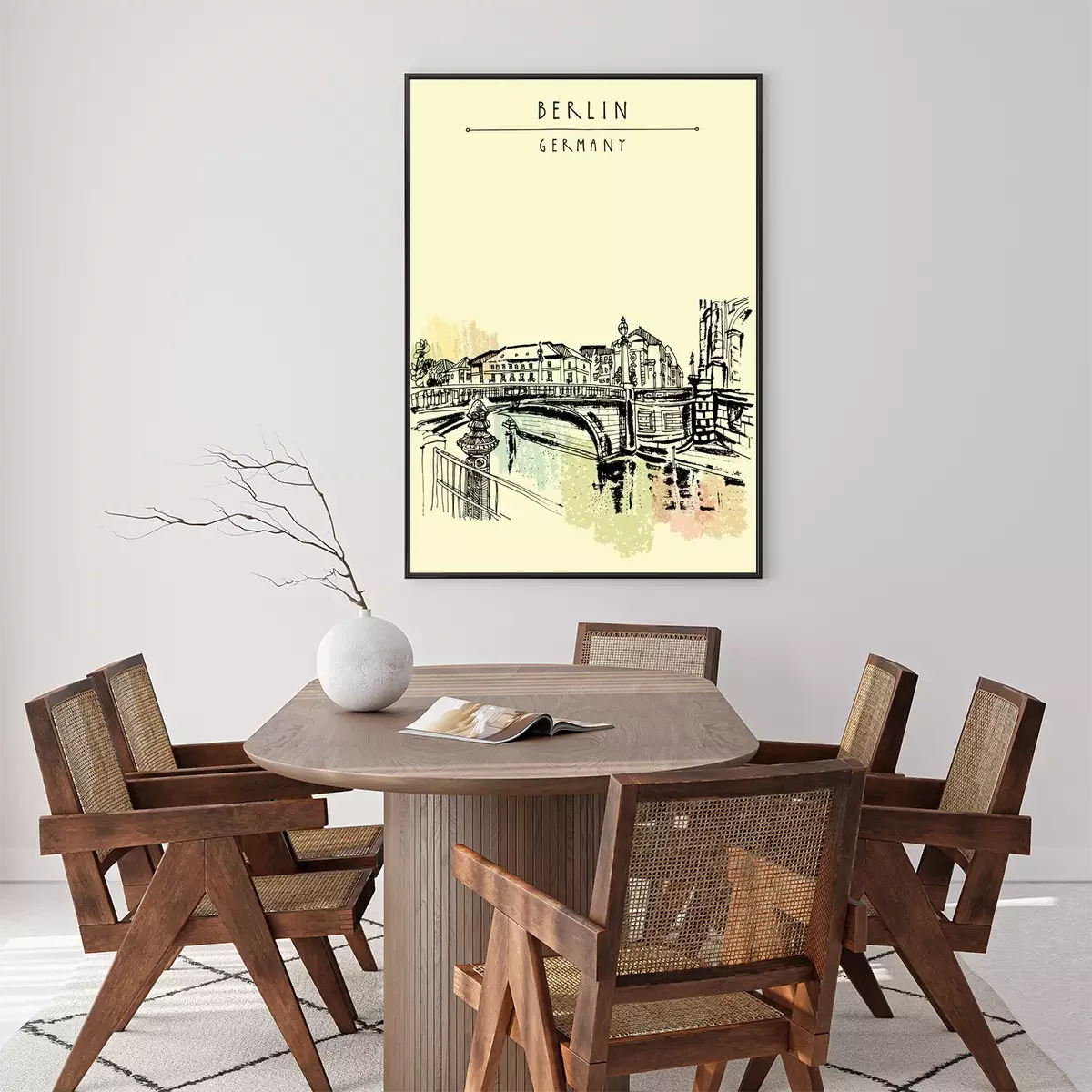 Poster  Monbijou pont à Berlin, Allemagne, Europe. Rivière Spree, rivière. Dessin à main levée. Croquis de voyage. Vintage touristique carte postale, affiche, livre illustration