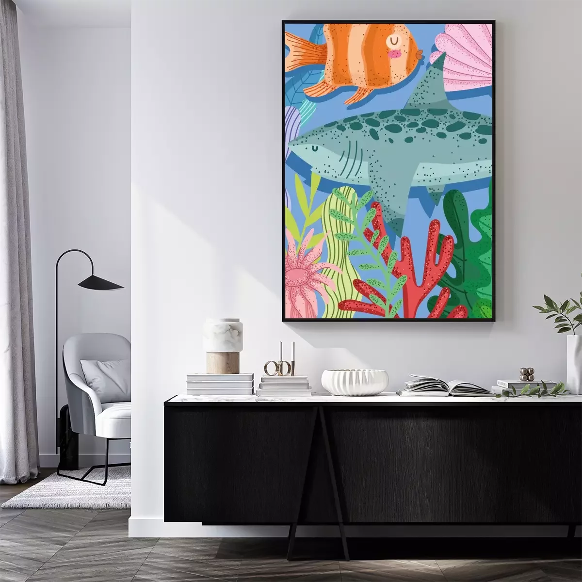 Poster : Monde sous-marin avec des plantes tropicales