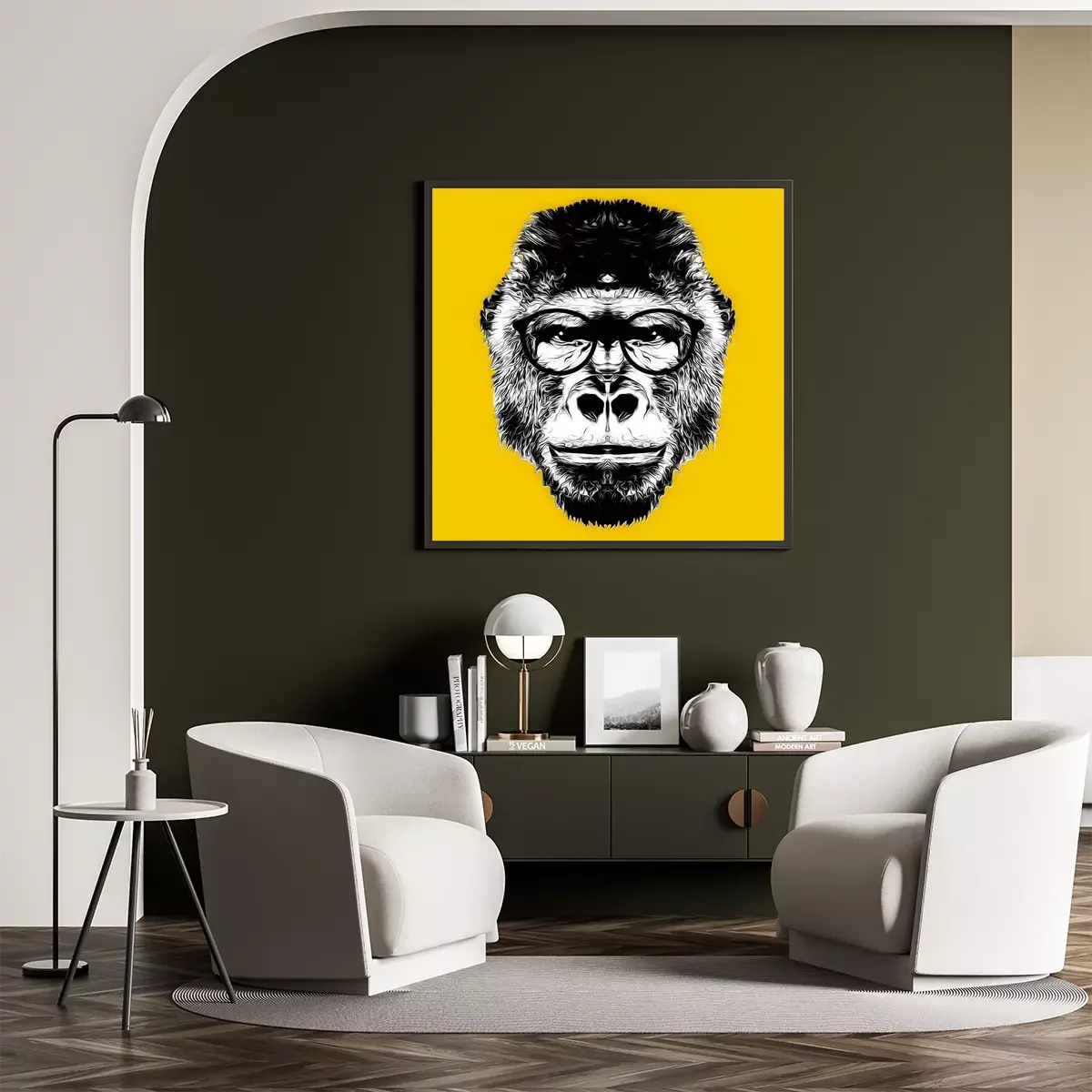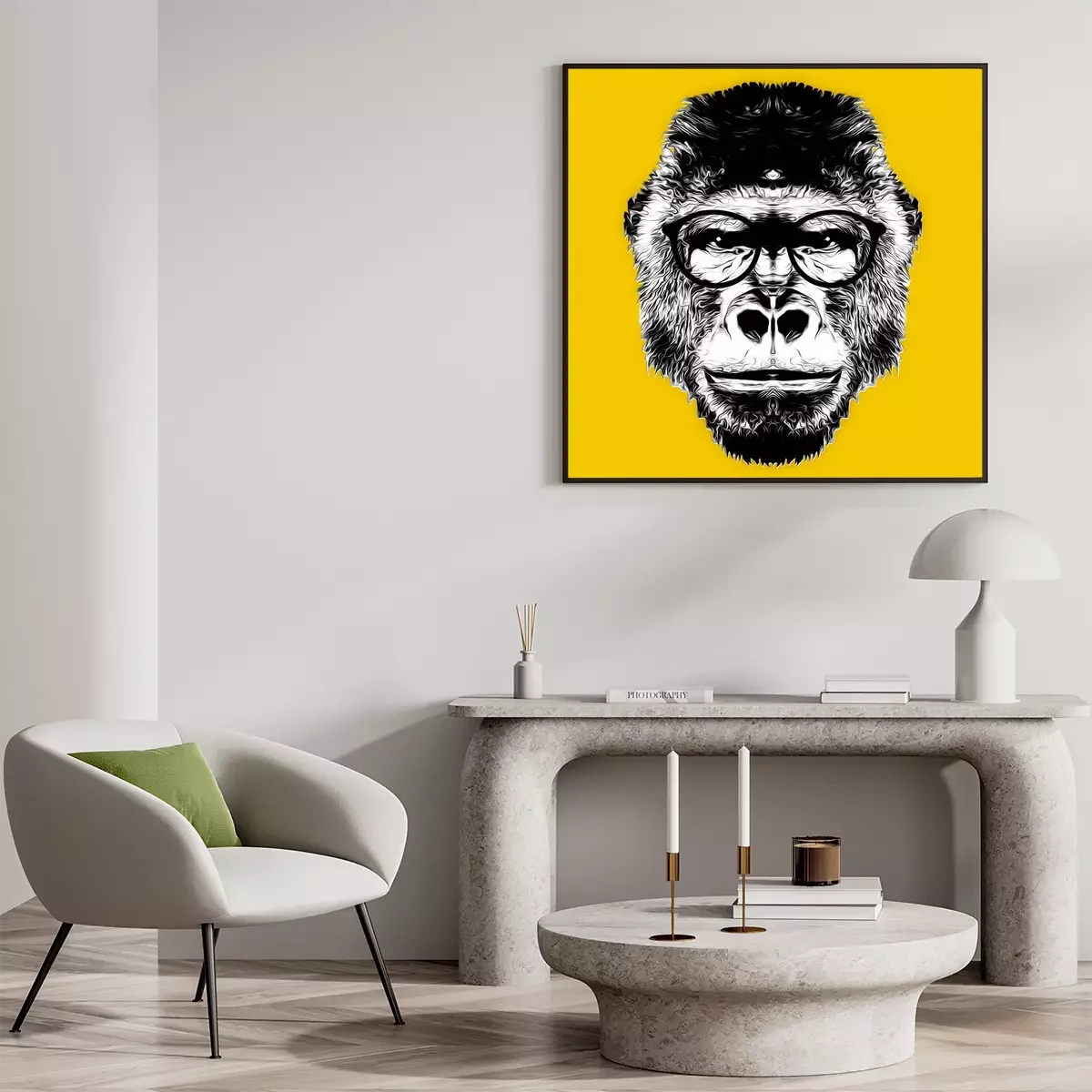 Poster : Monkey head black and white illustration on background, digital art