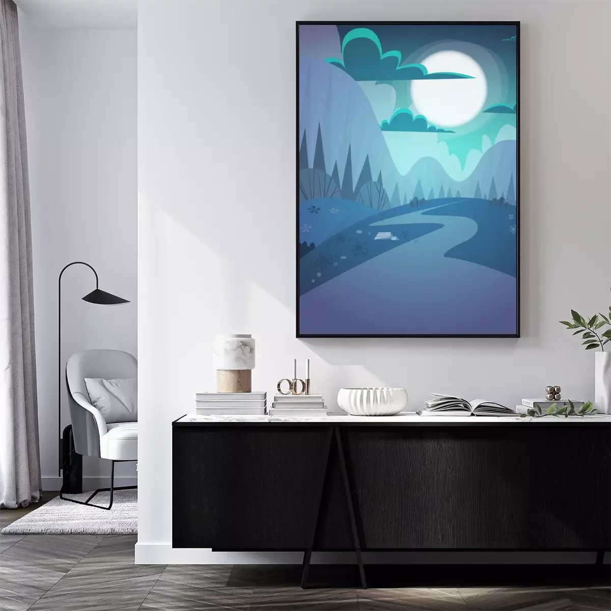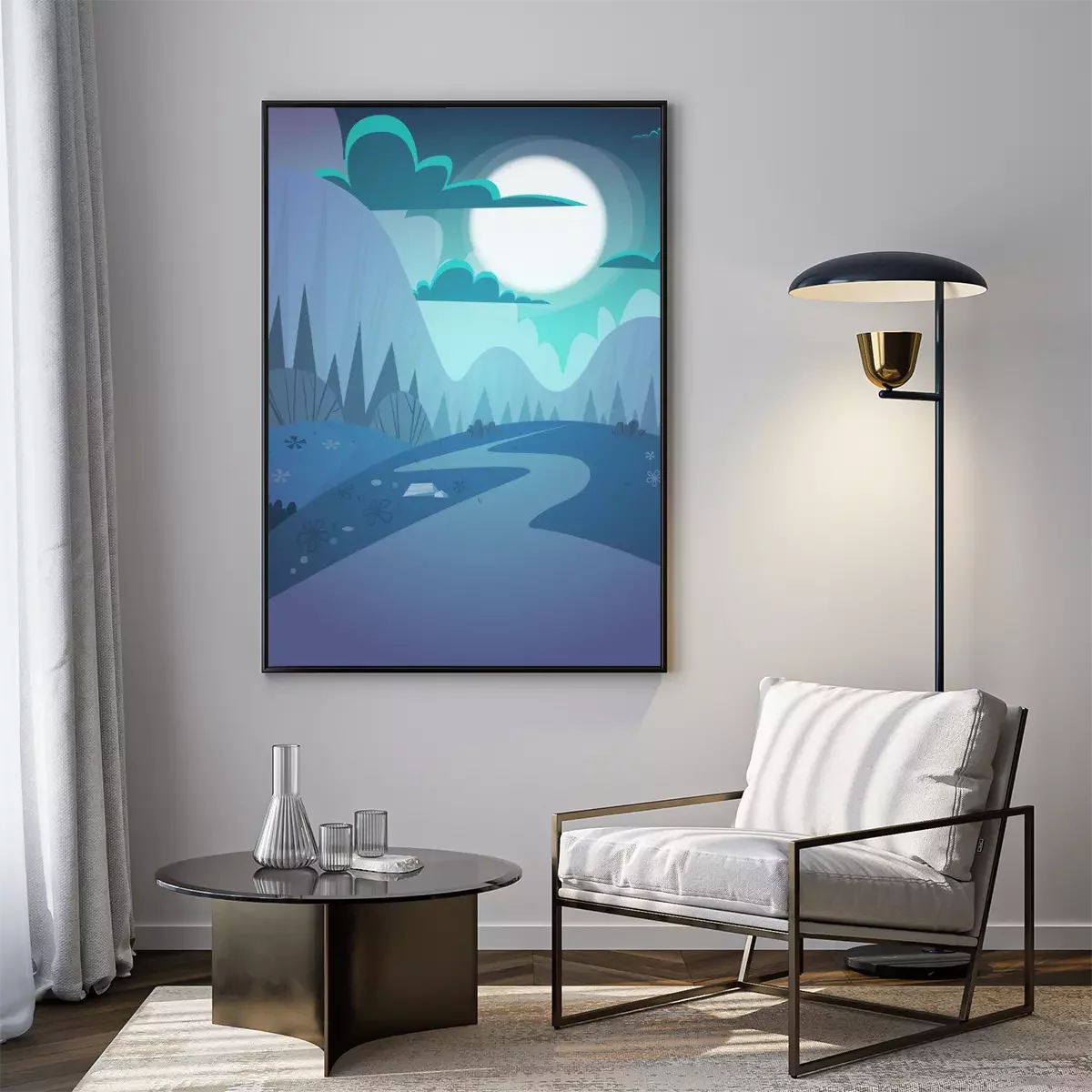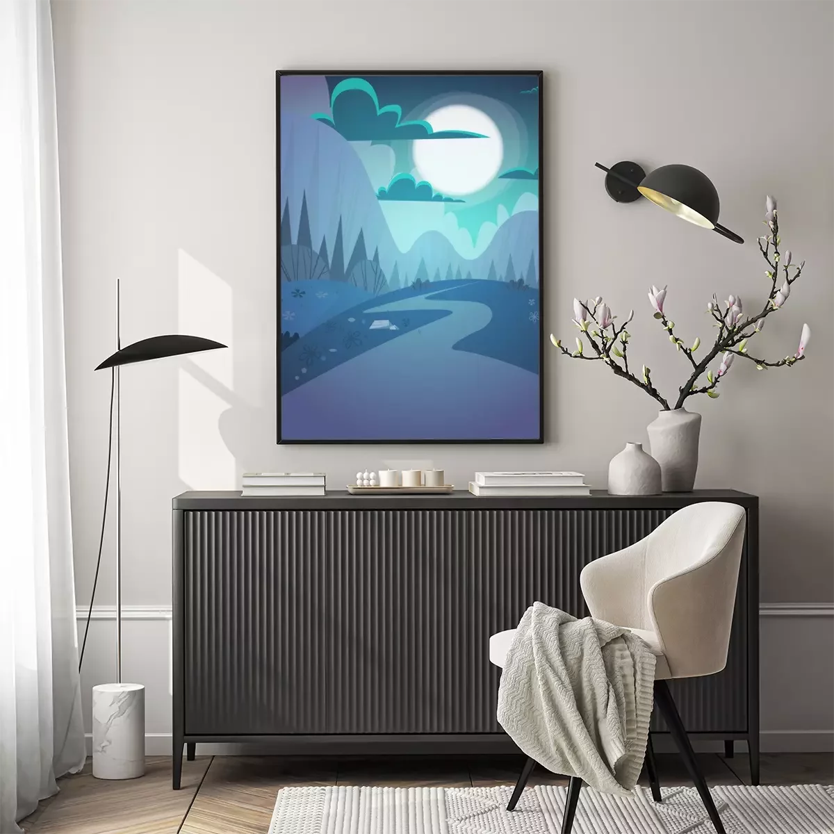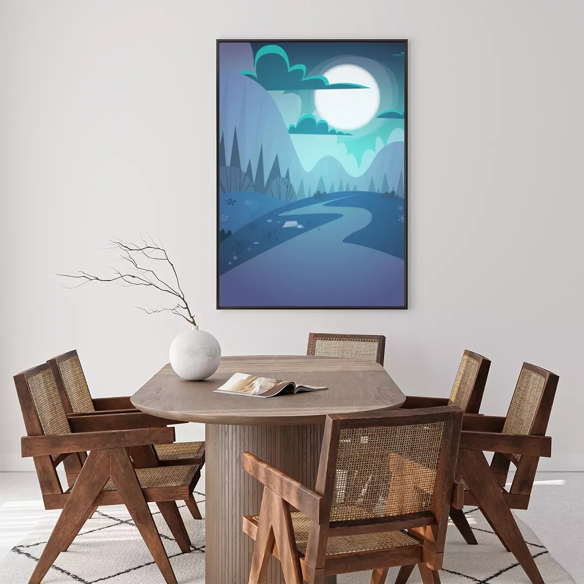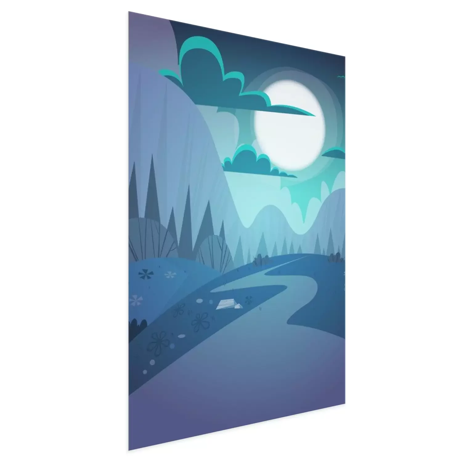Poster  Montagne, chaîne, printemps, nuit, paysage, pays, route, nature, fond, plat, vecteur, Illustration