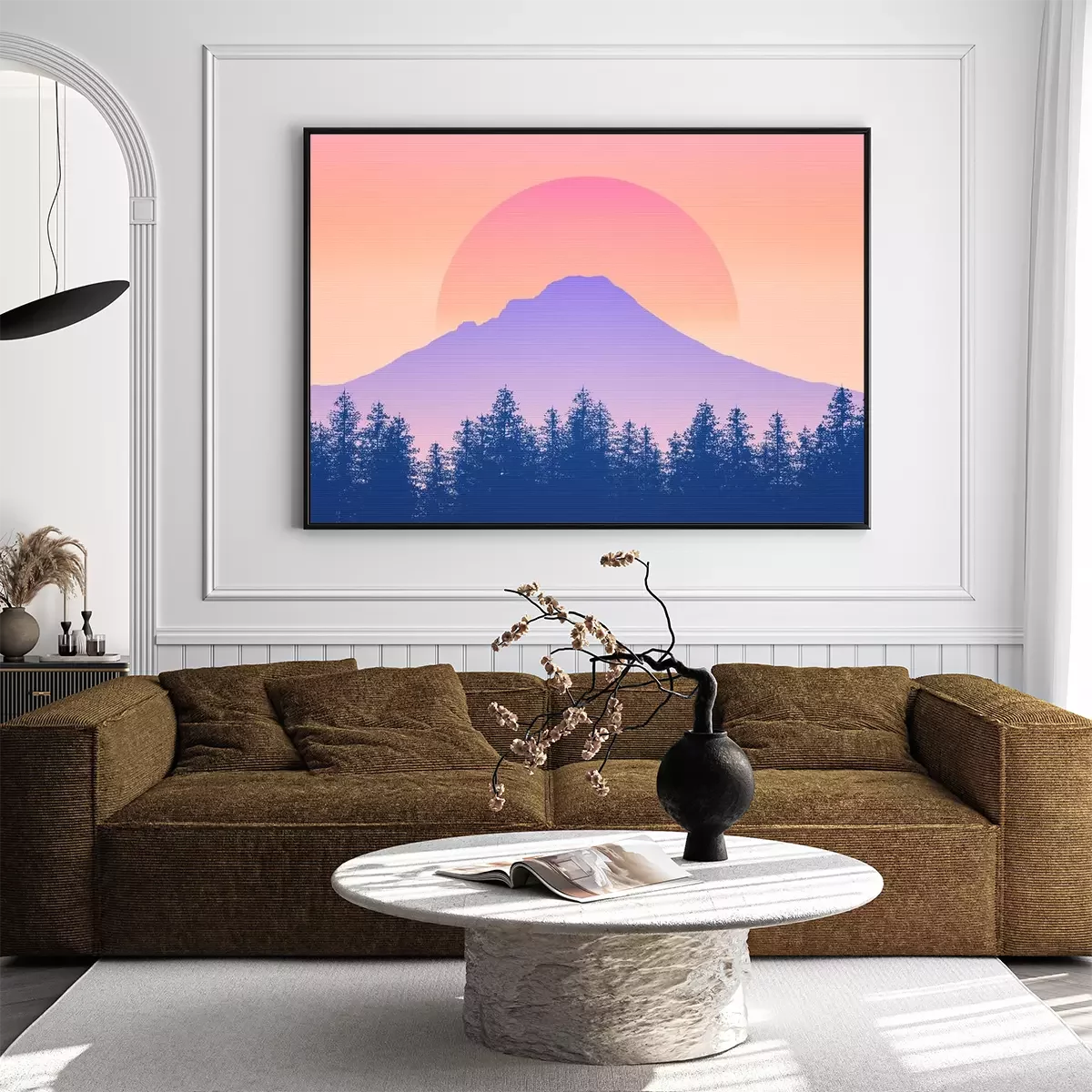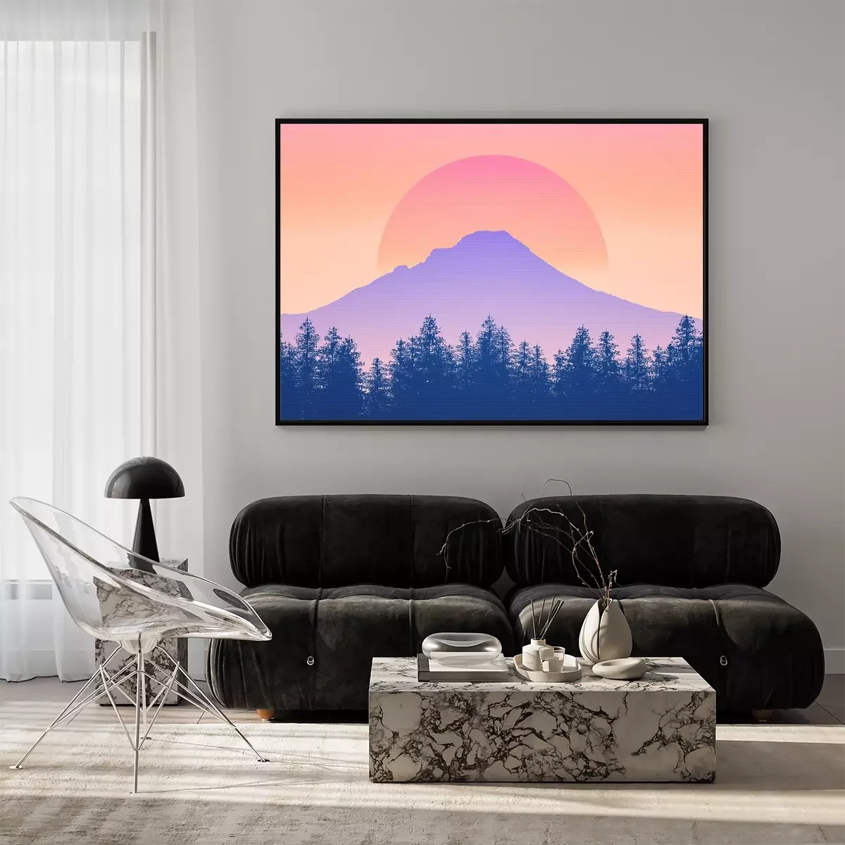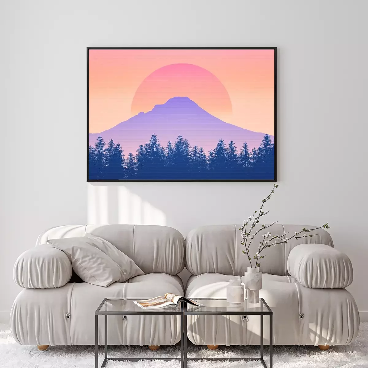 Poster  Montagne sur fond de coucher de soleil
