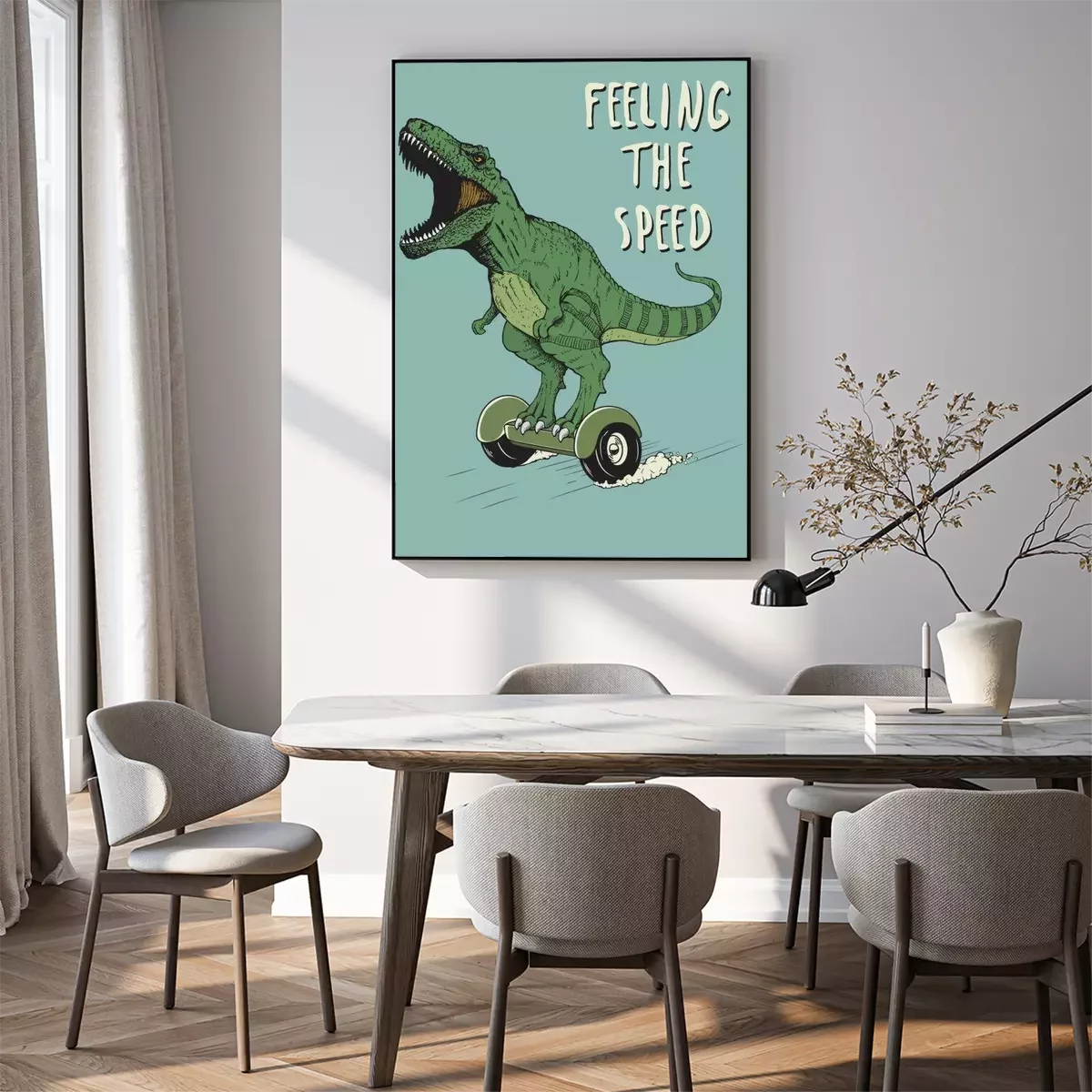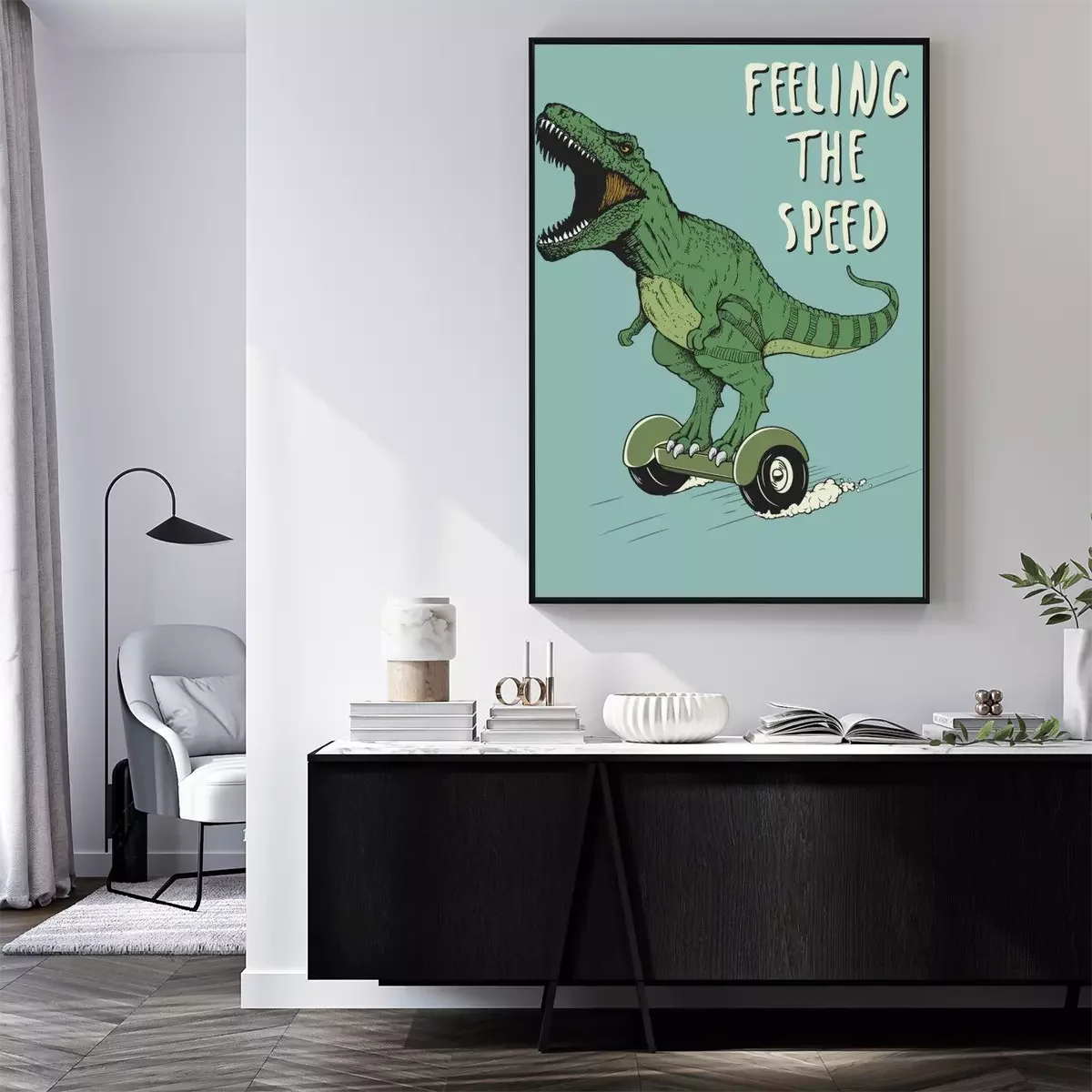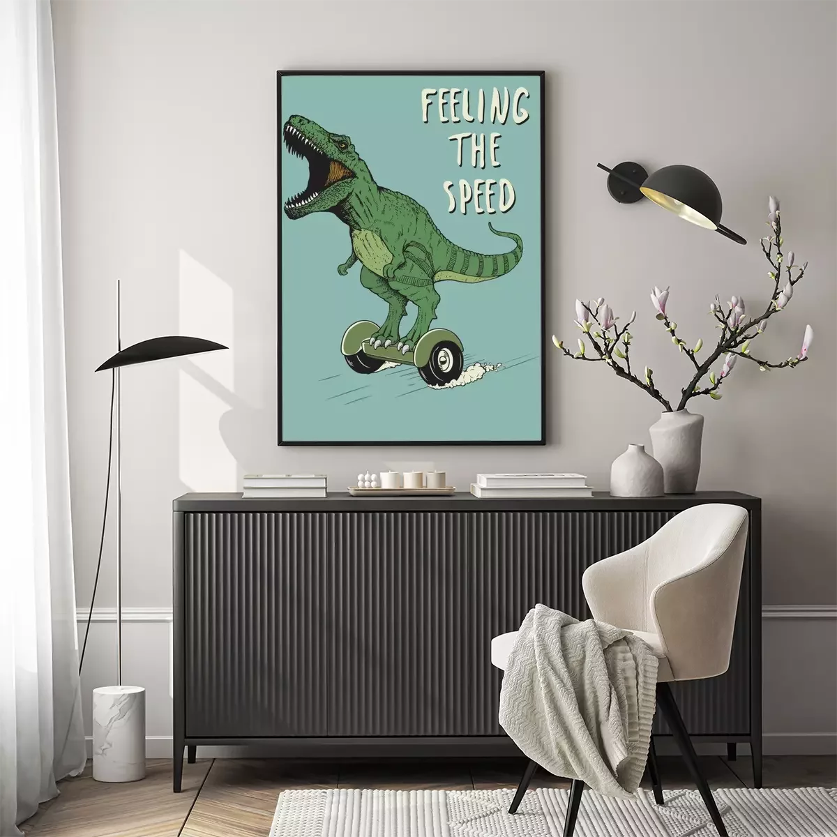 Poster  Motif abstrait avec un dinosaure sur un skateboard