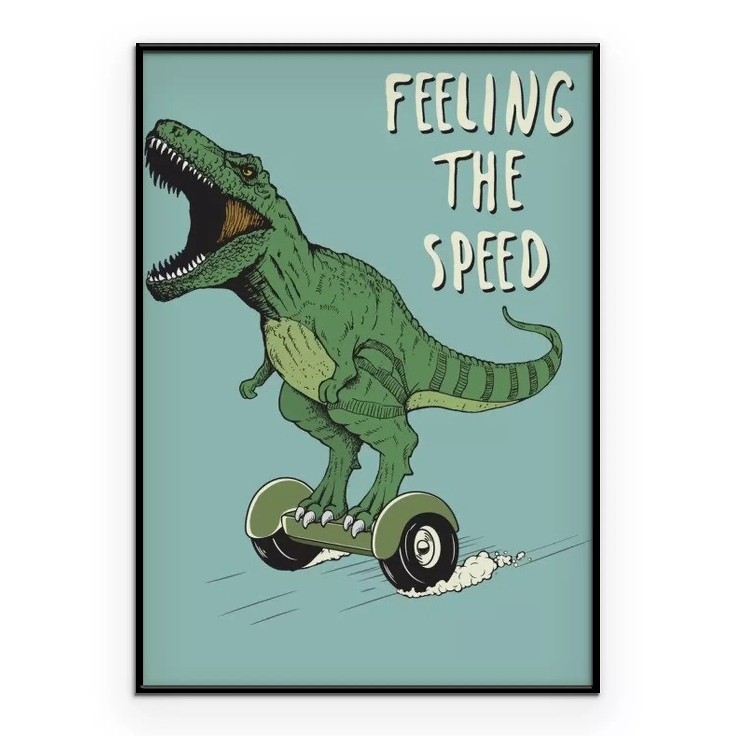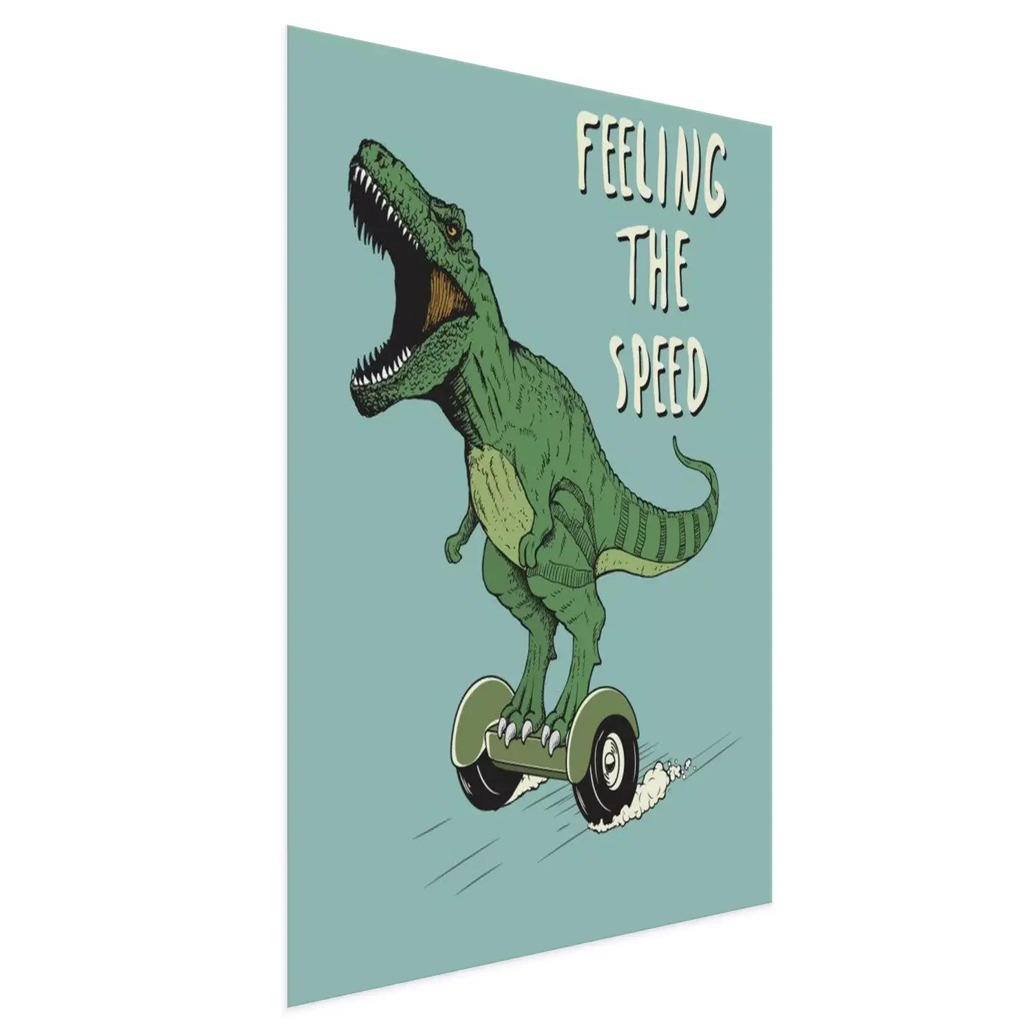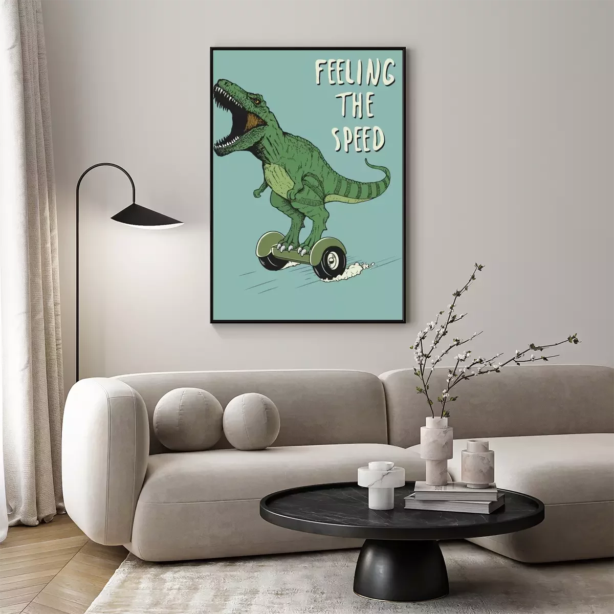 Poster  Motif abstrait avec un dinosaure sur un skateboard