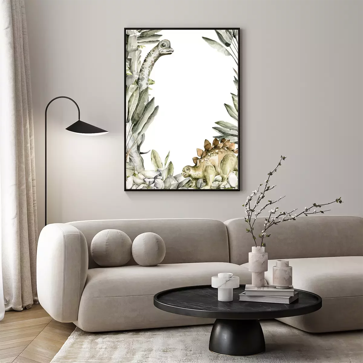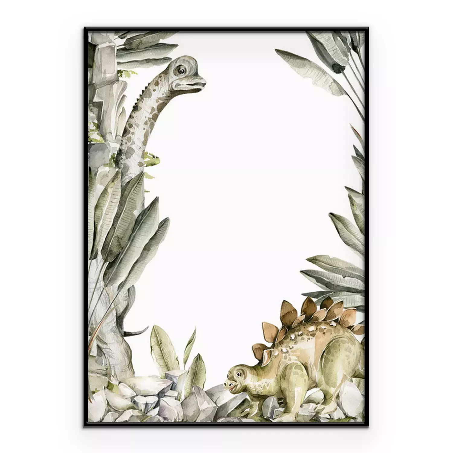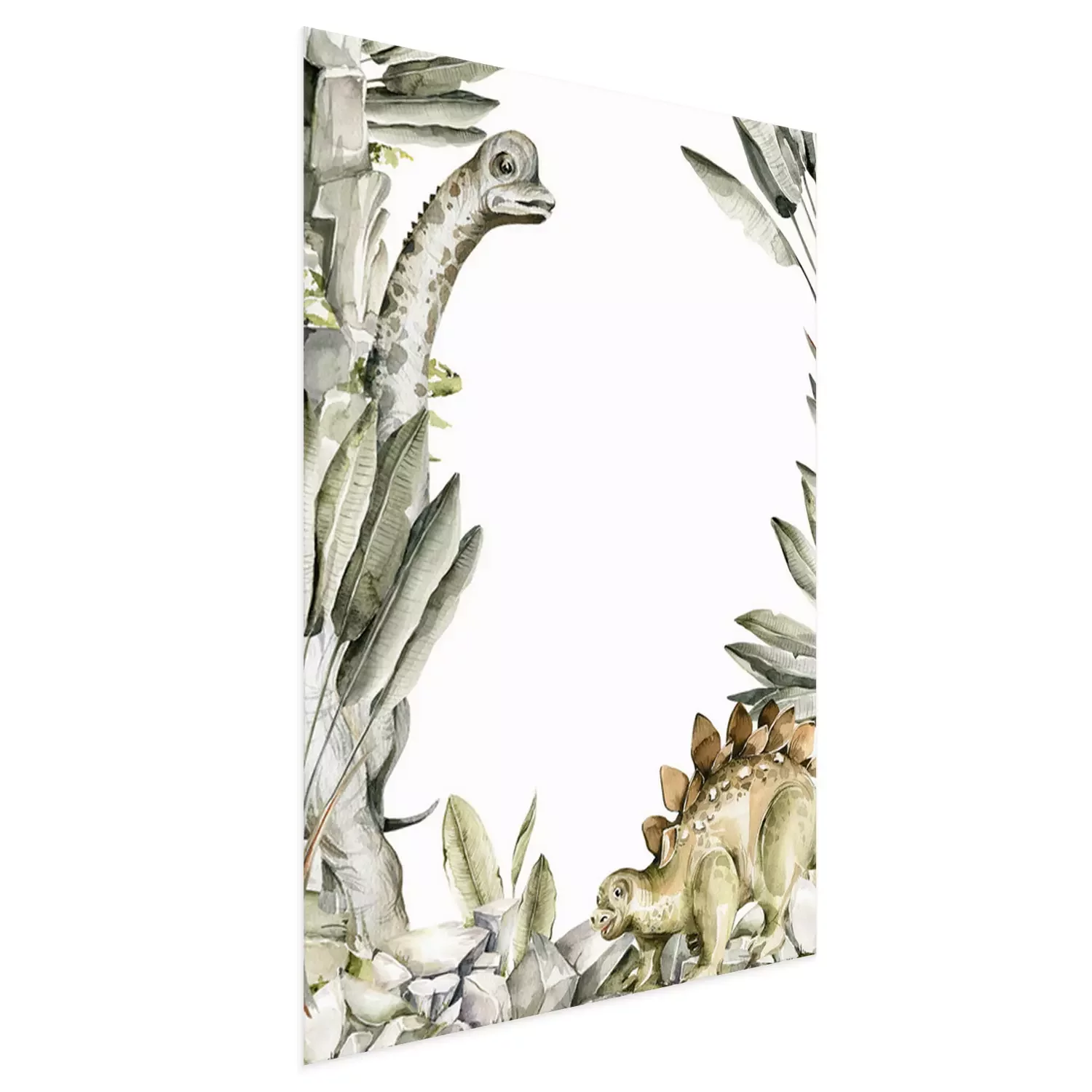 Poster : Motif aquarelle avec des dinosaures sur fond blanc