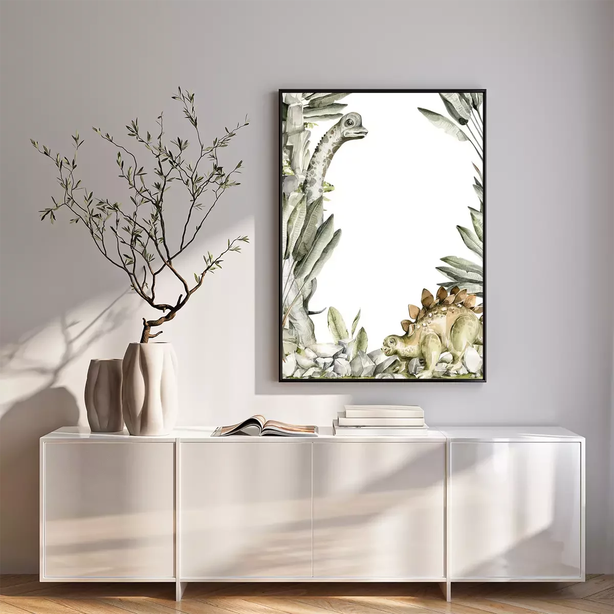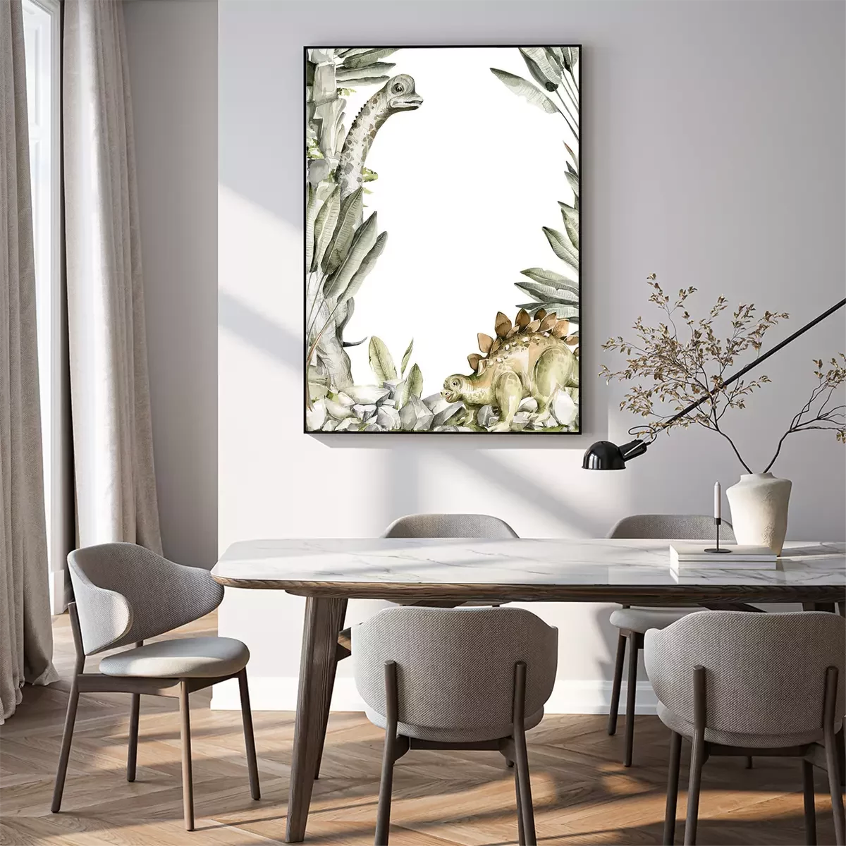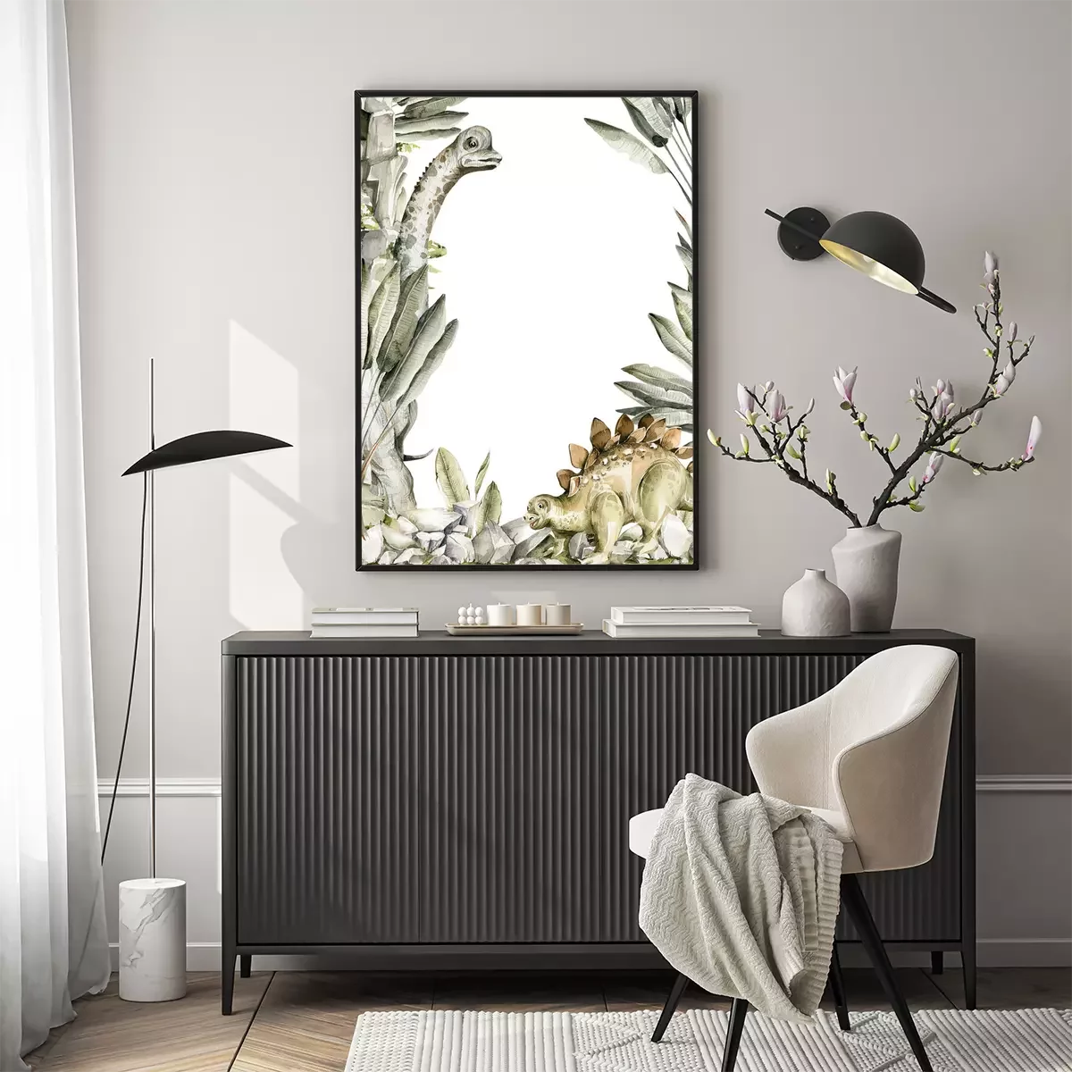 Poster : Motif aquarelle avec des dinosaures sur fond blanc