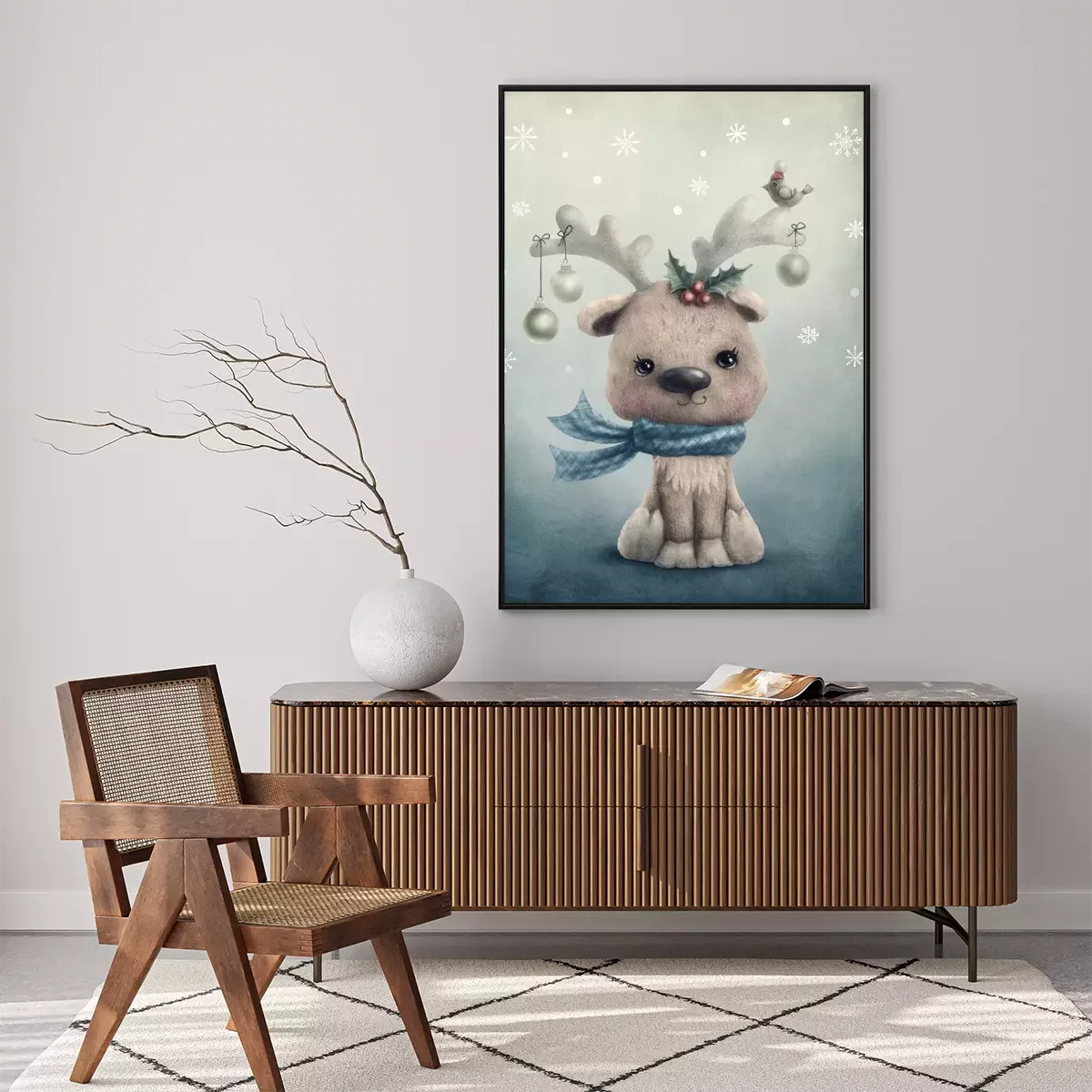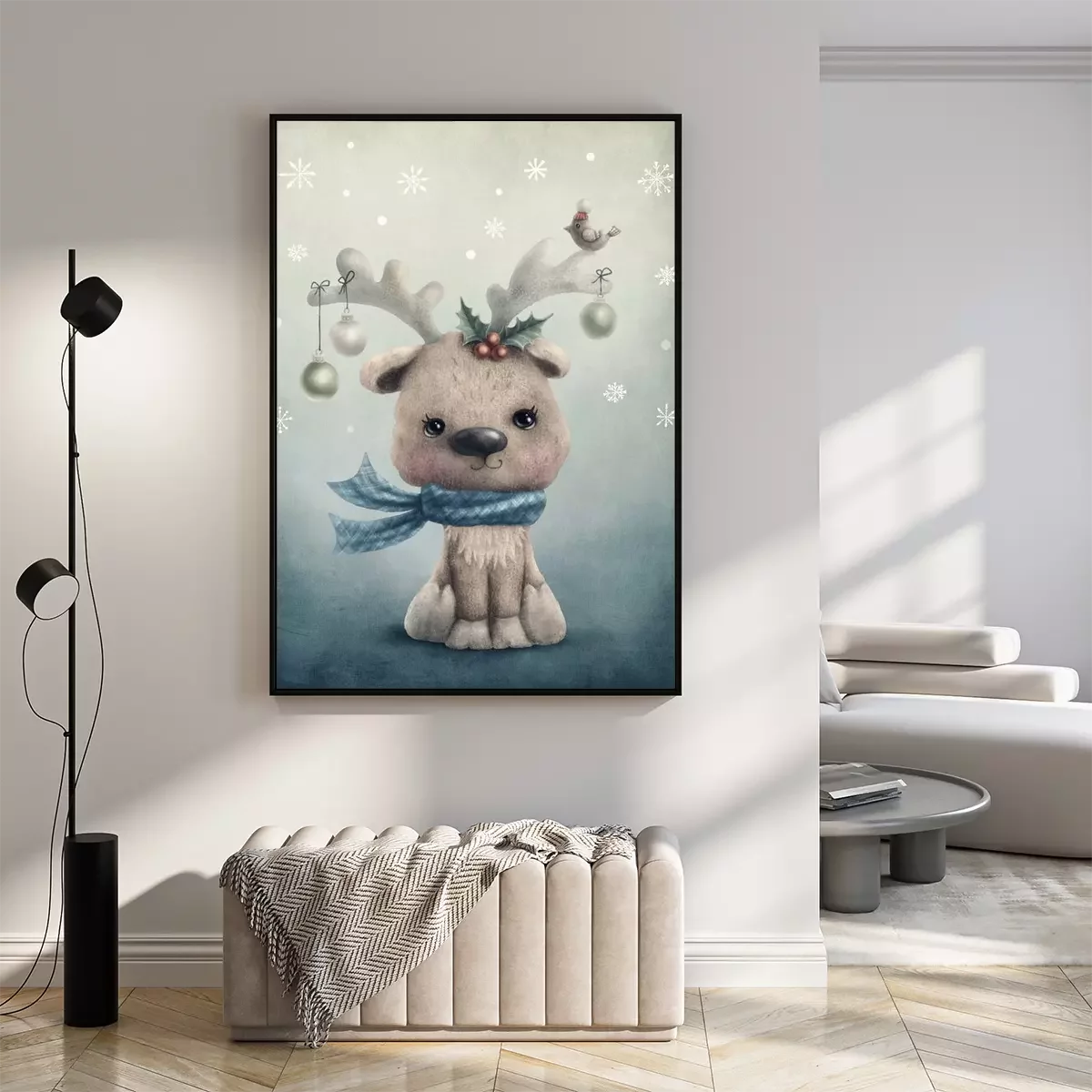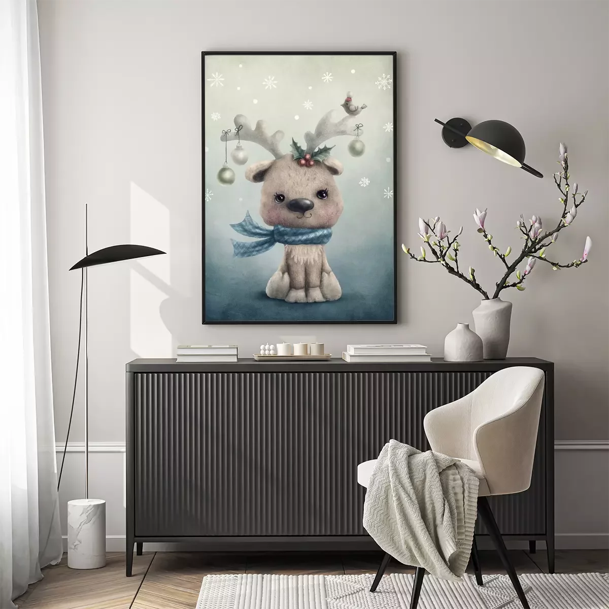 Poster  Motif avec des rennes avec un fond aquarellé en arrière-plan