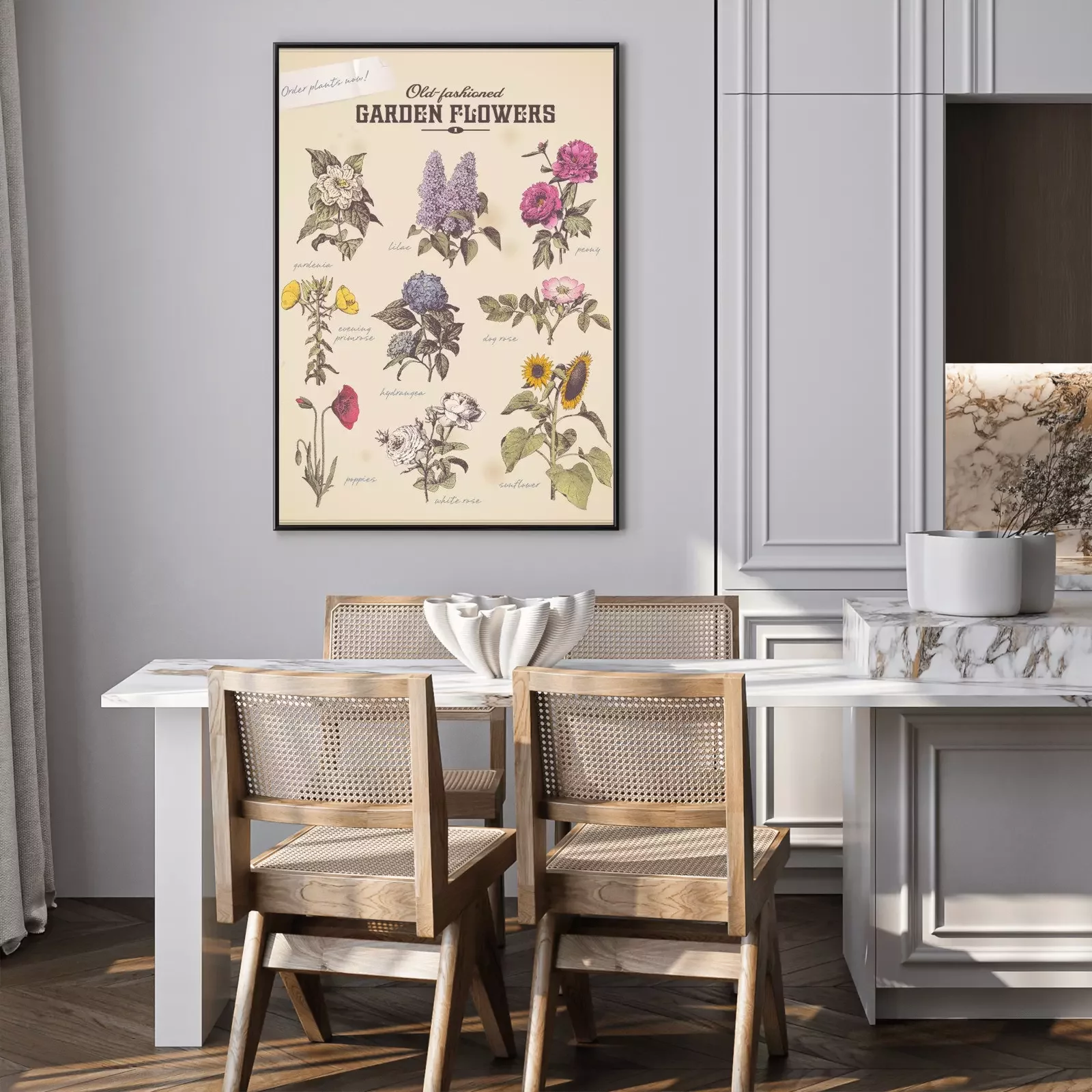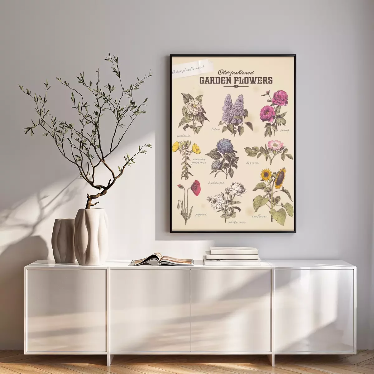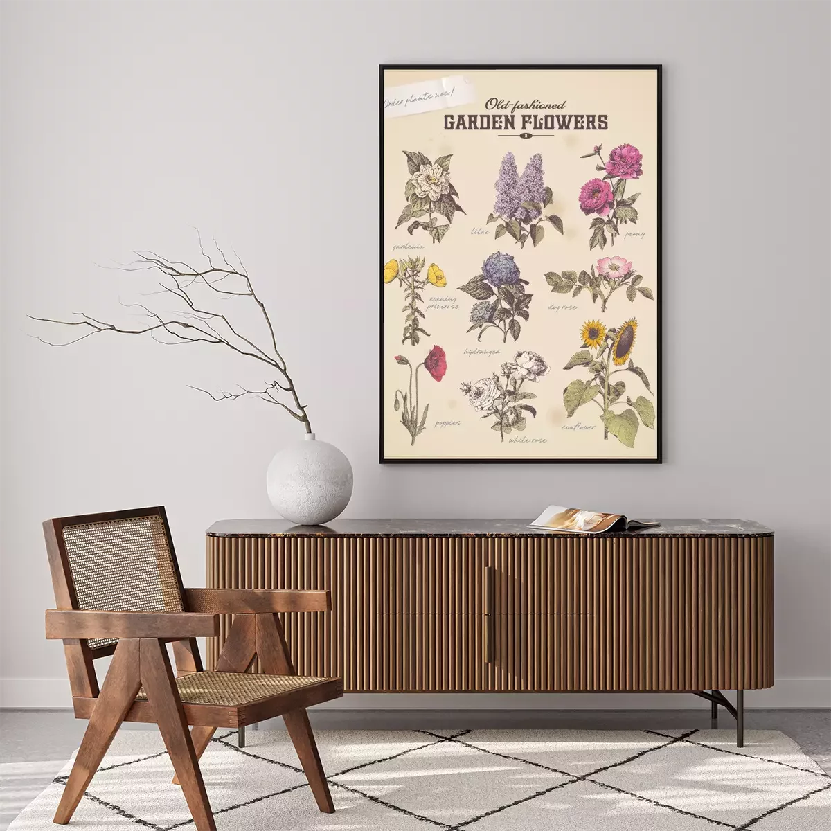 Poster : Motif botanique avec des fleurs vintage