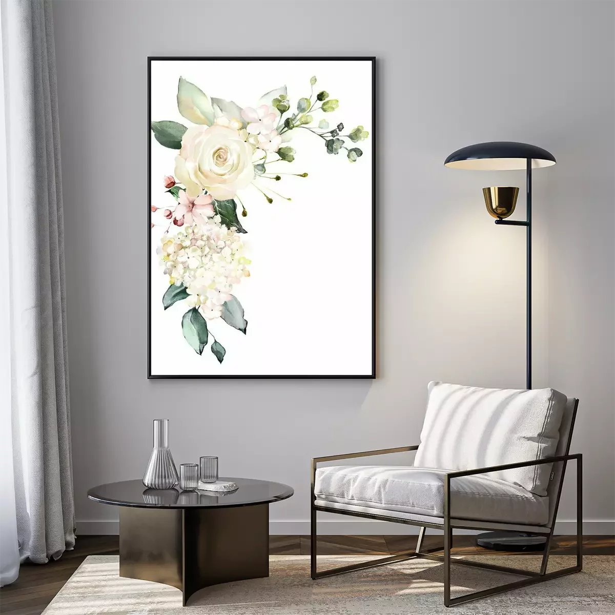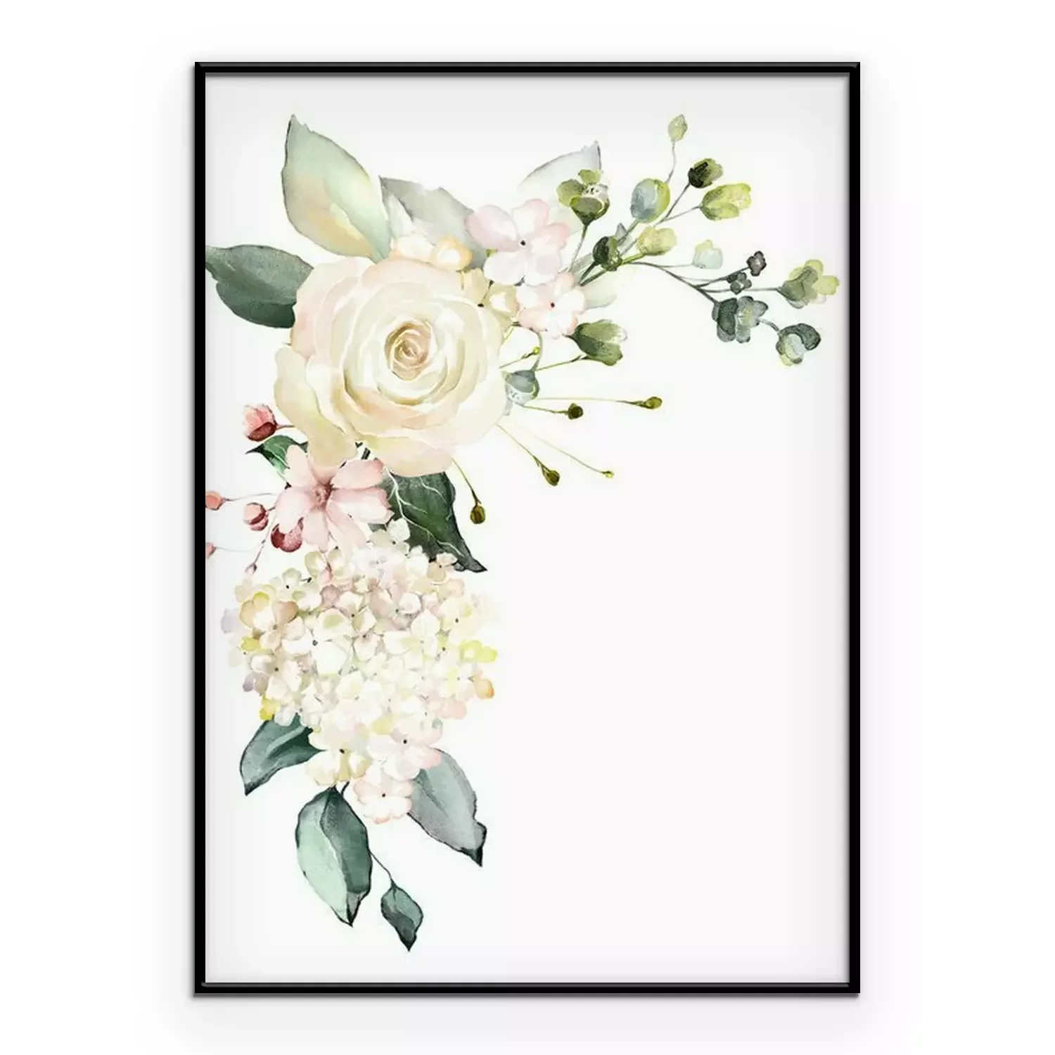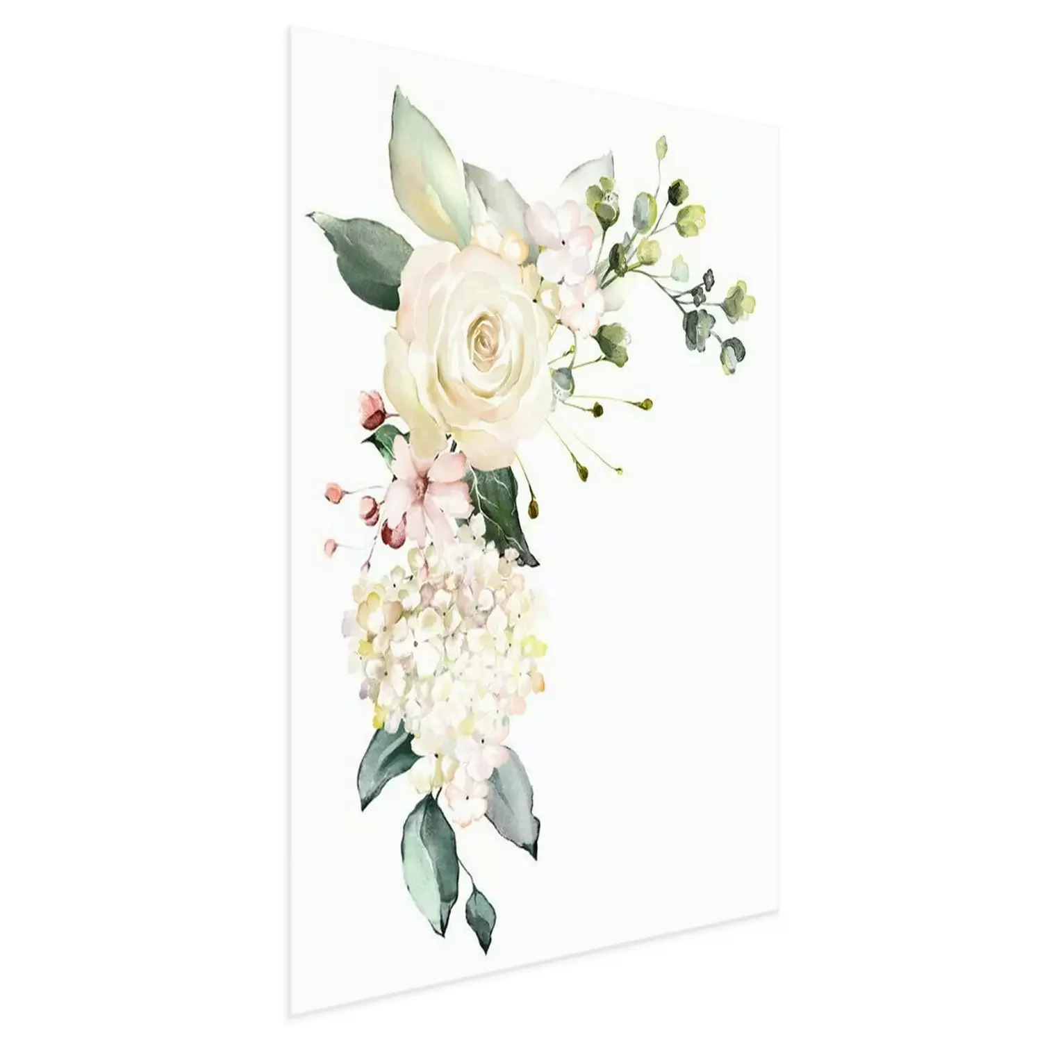 Poster  Motif éthéré de roses blanches avec des feuilles