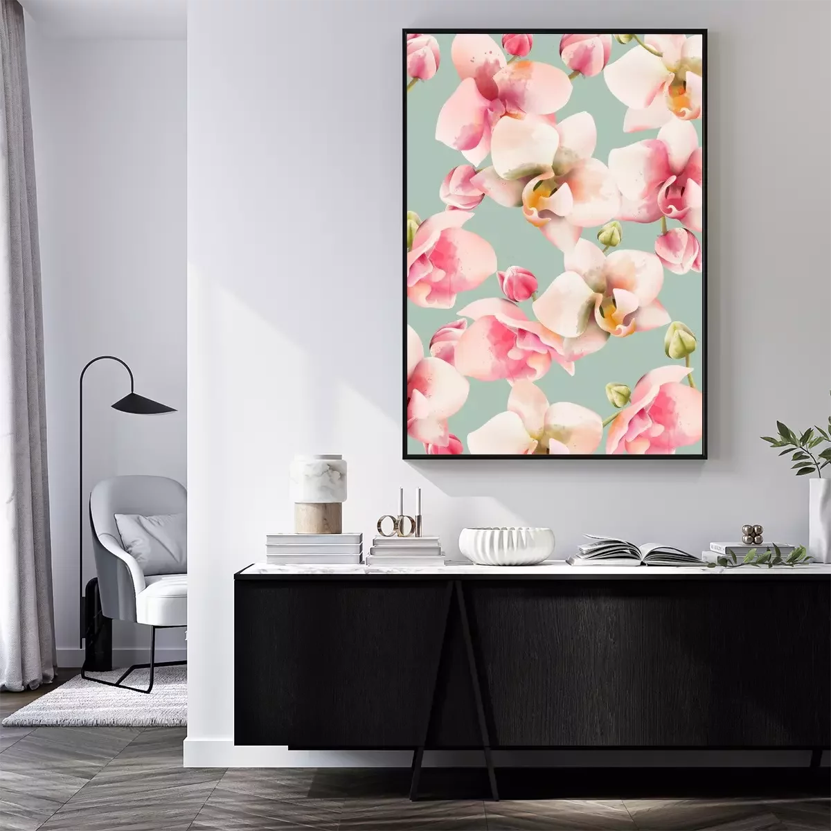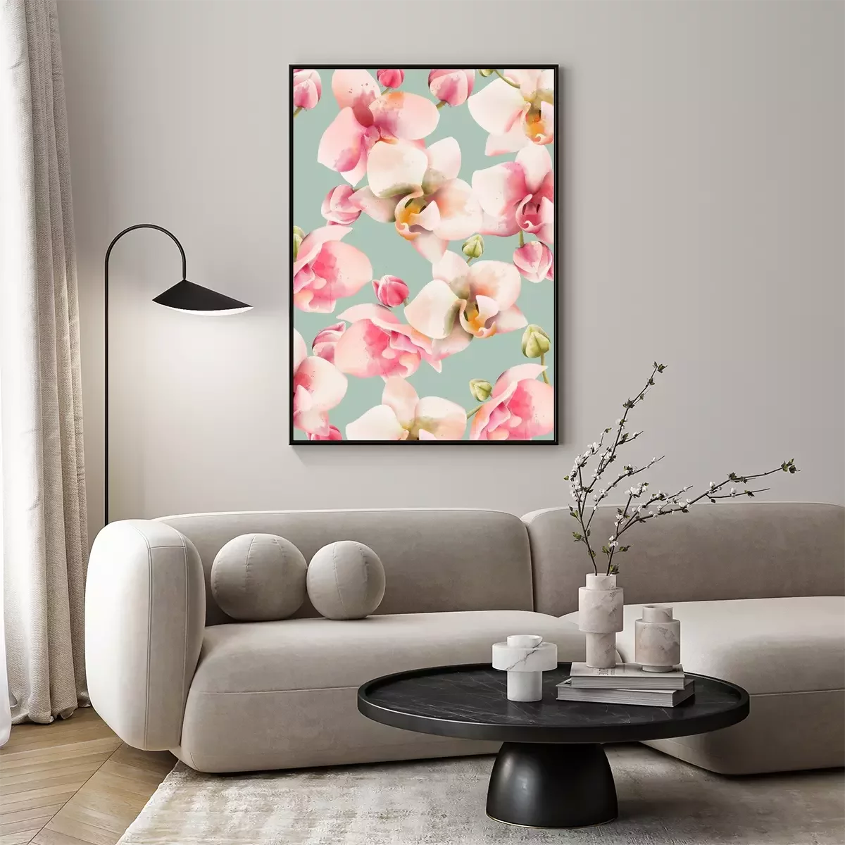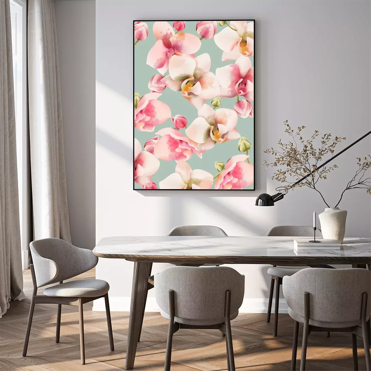 Poster  Motif irrégulier de fleurs d'orchidées ombragées