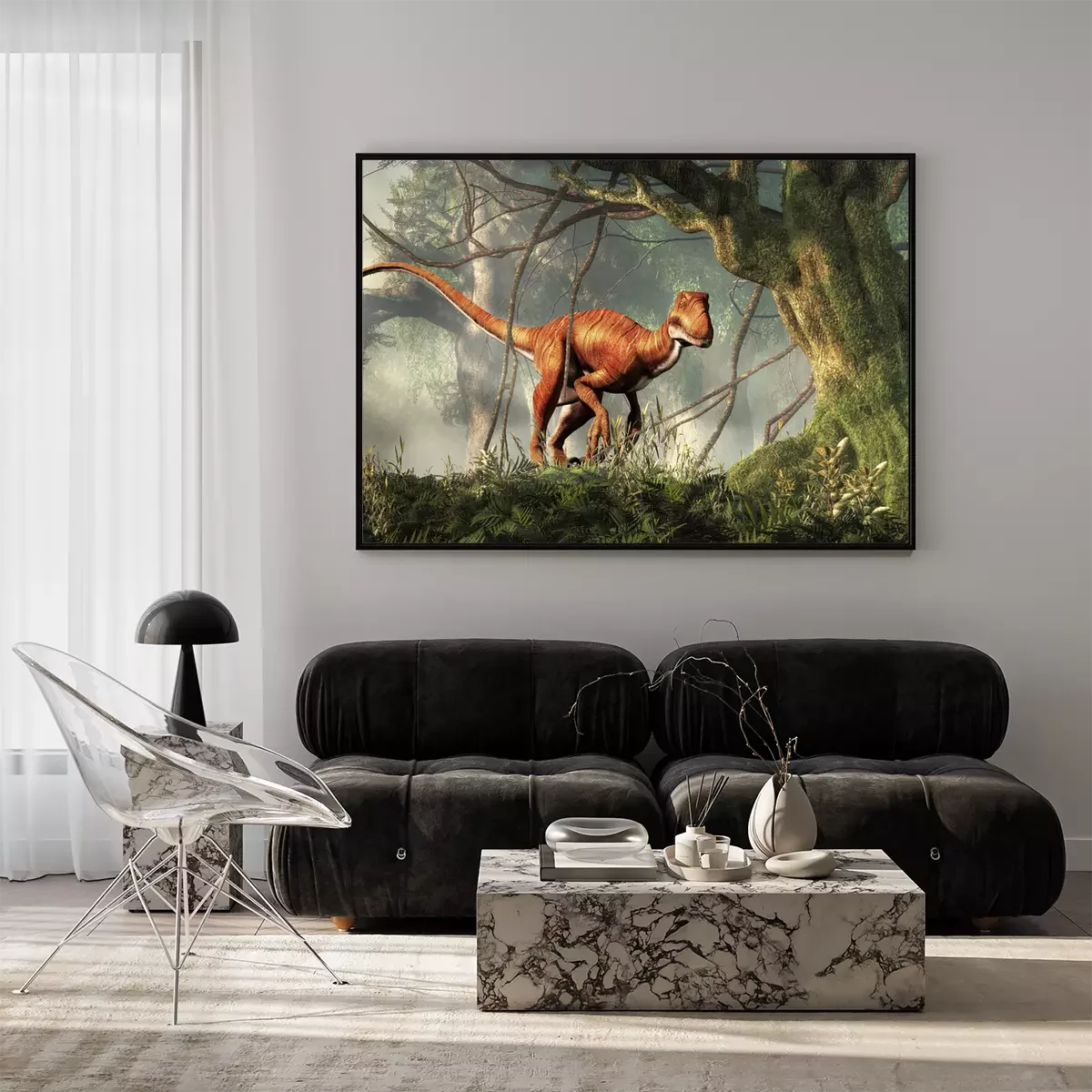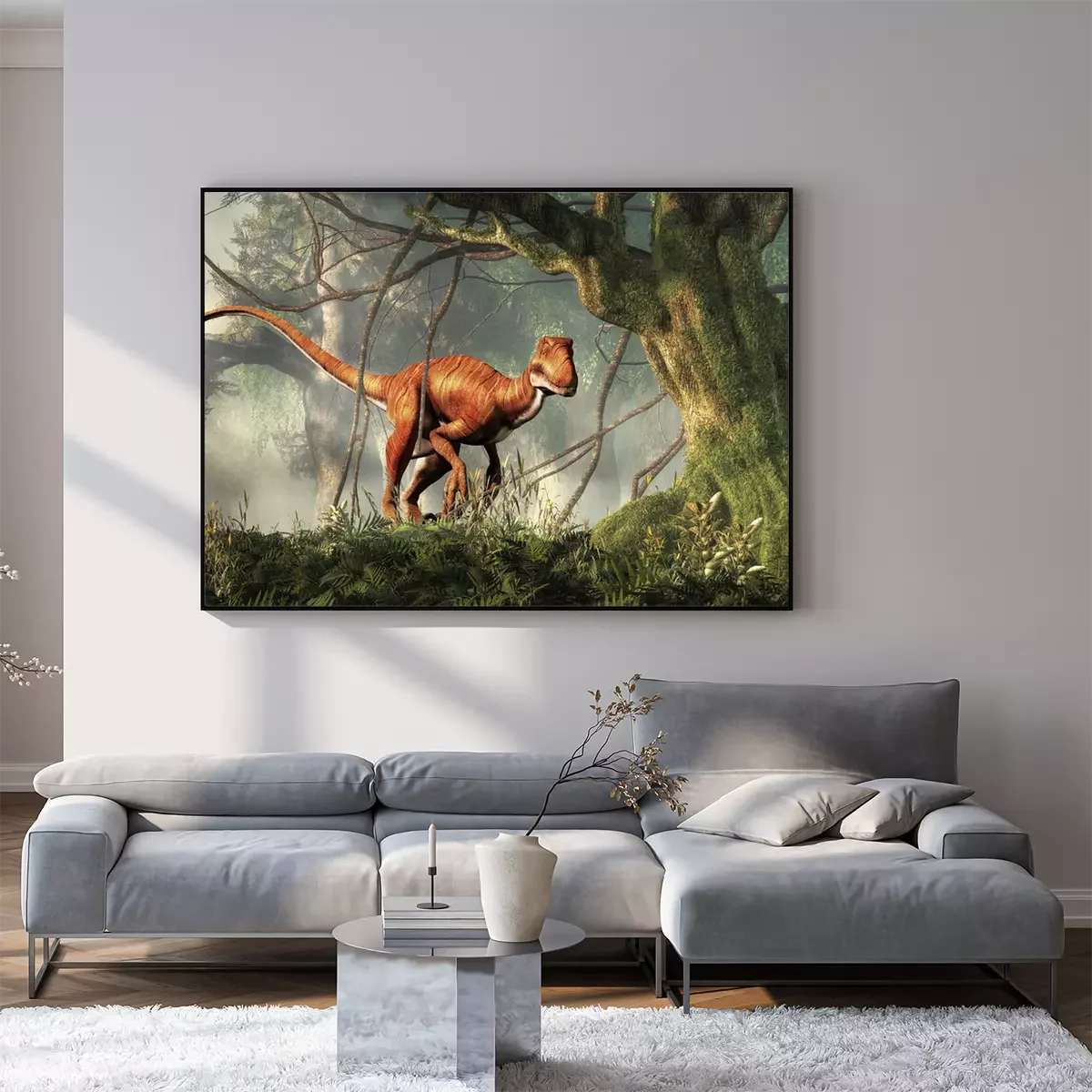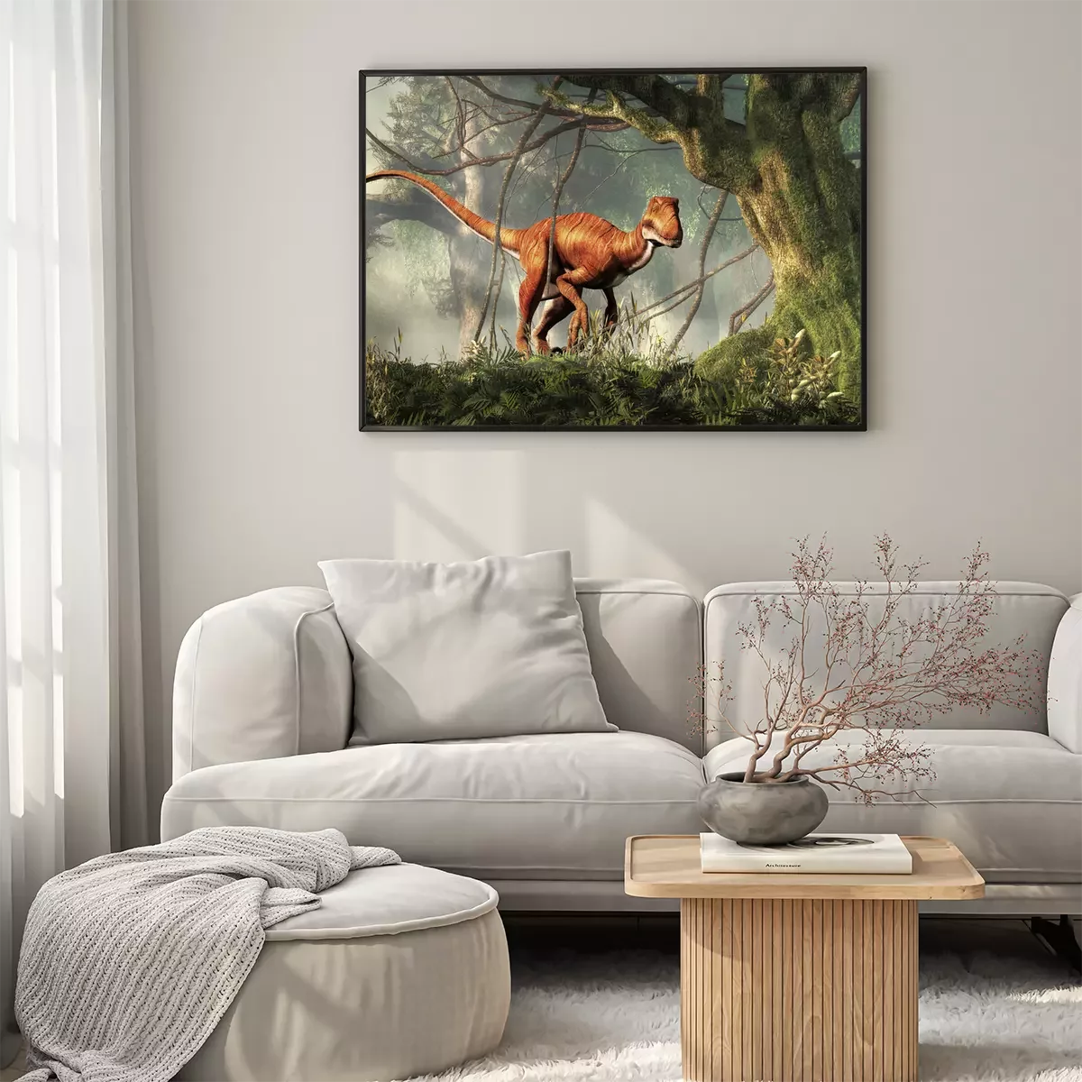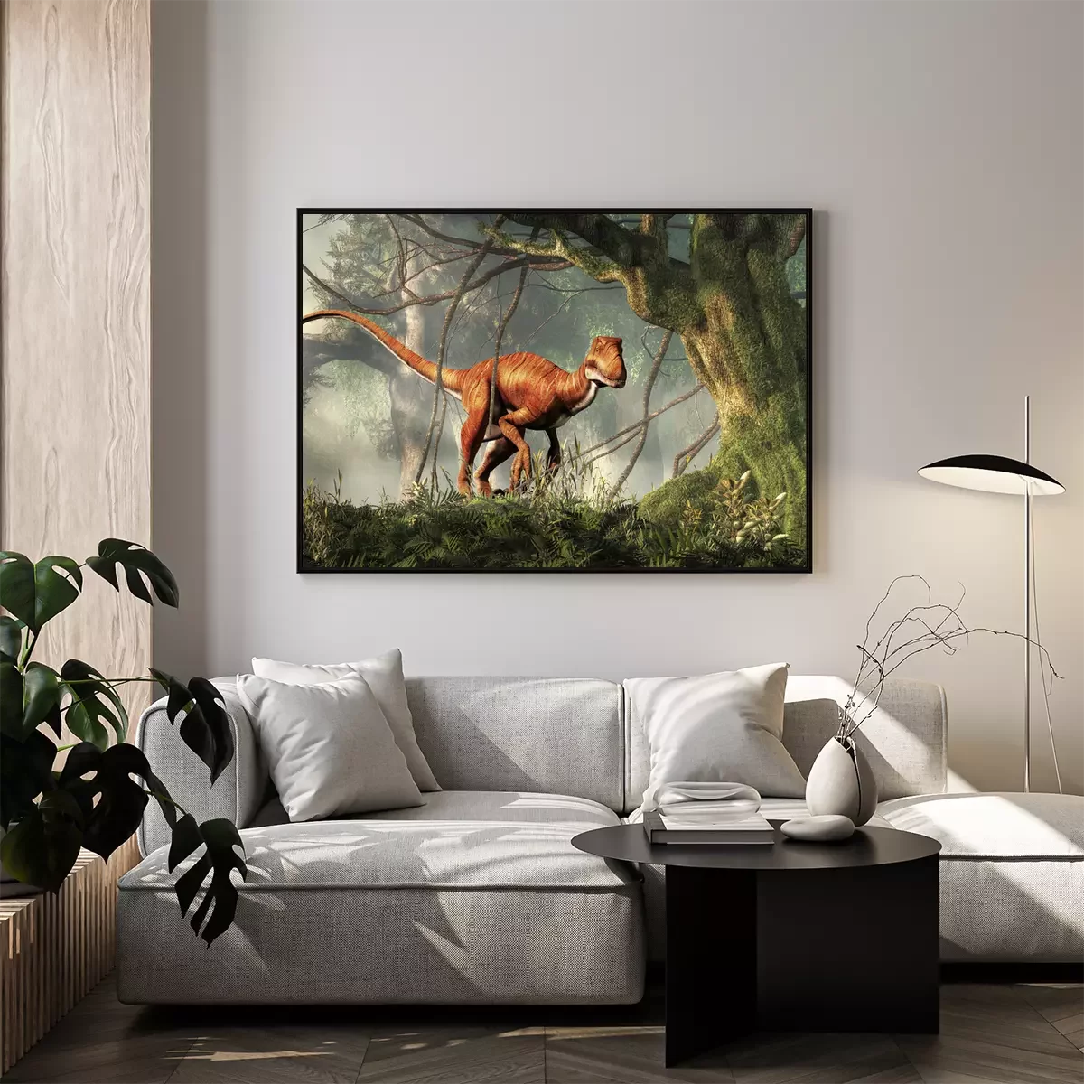 Poster : Motif tropical avec un dinosaure dans la jungle