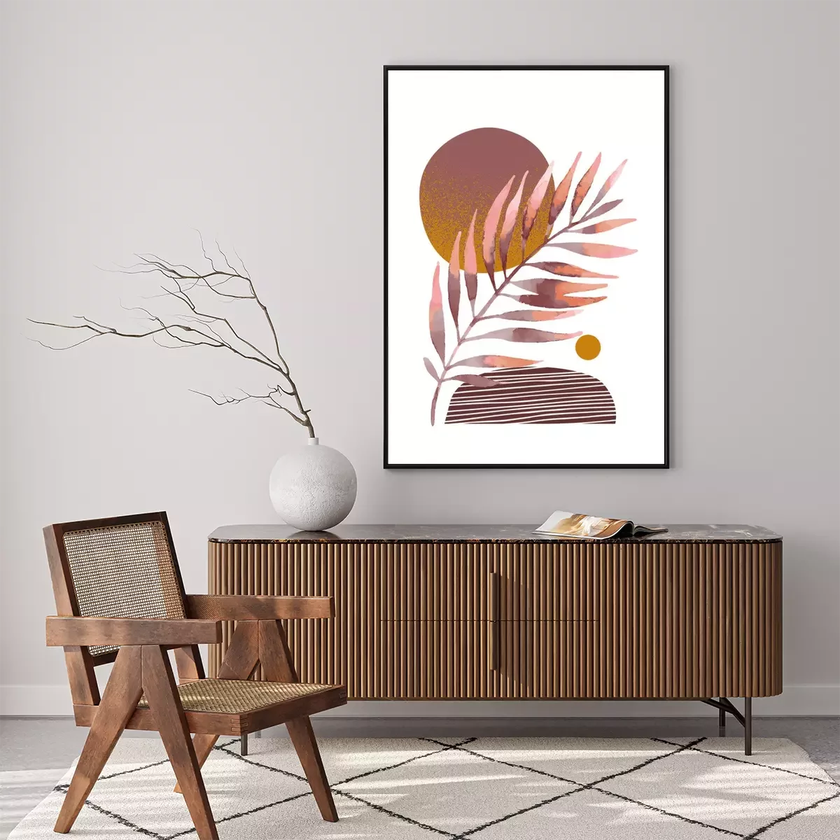Composition exotique avec monstera et triangles