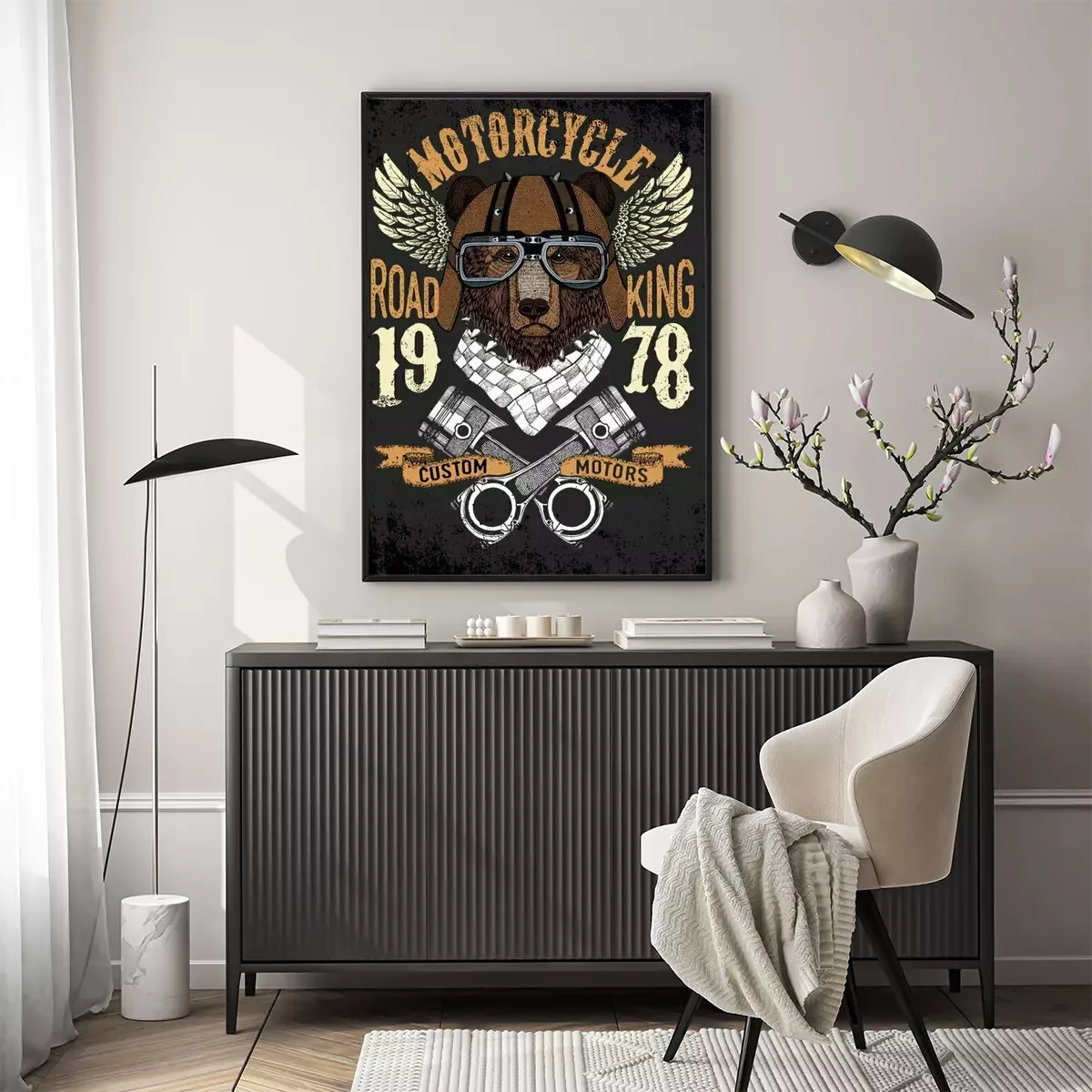 Poster  Motorcycle, biker. Print for tee shirt, poster, logo, emblem, embroidery