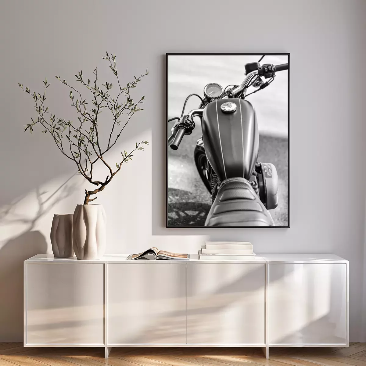 Poster  motorcycle parked on the street