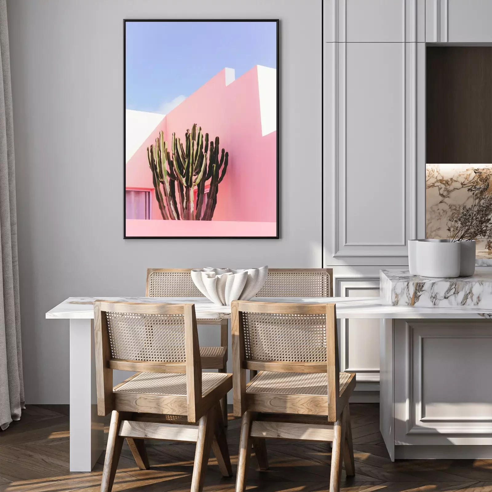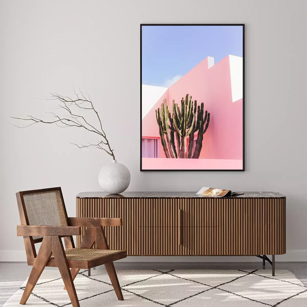 Poster : Mur rose et cactus