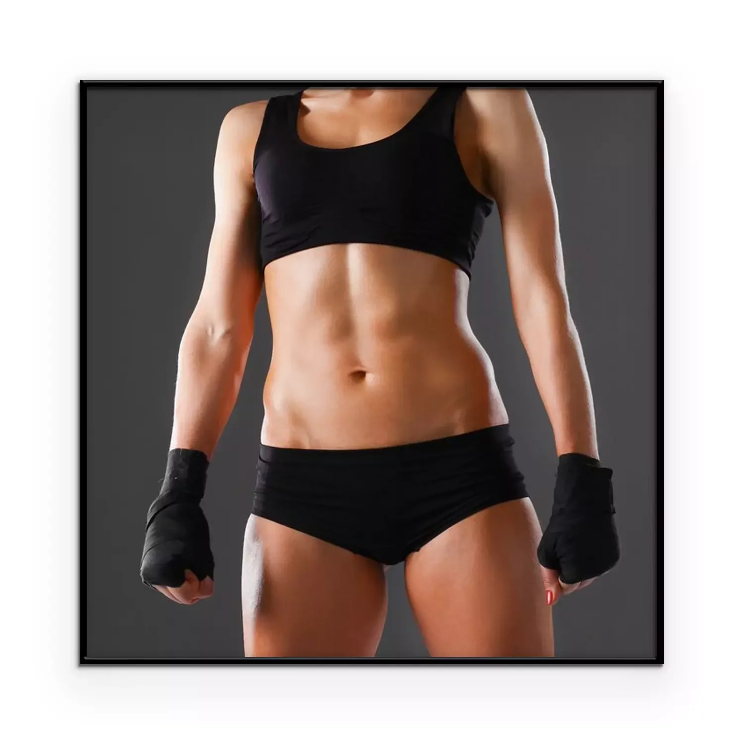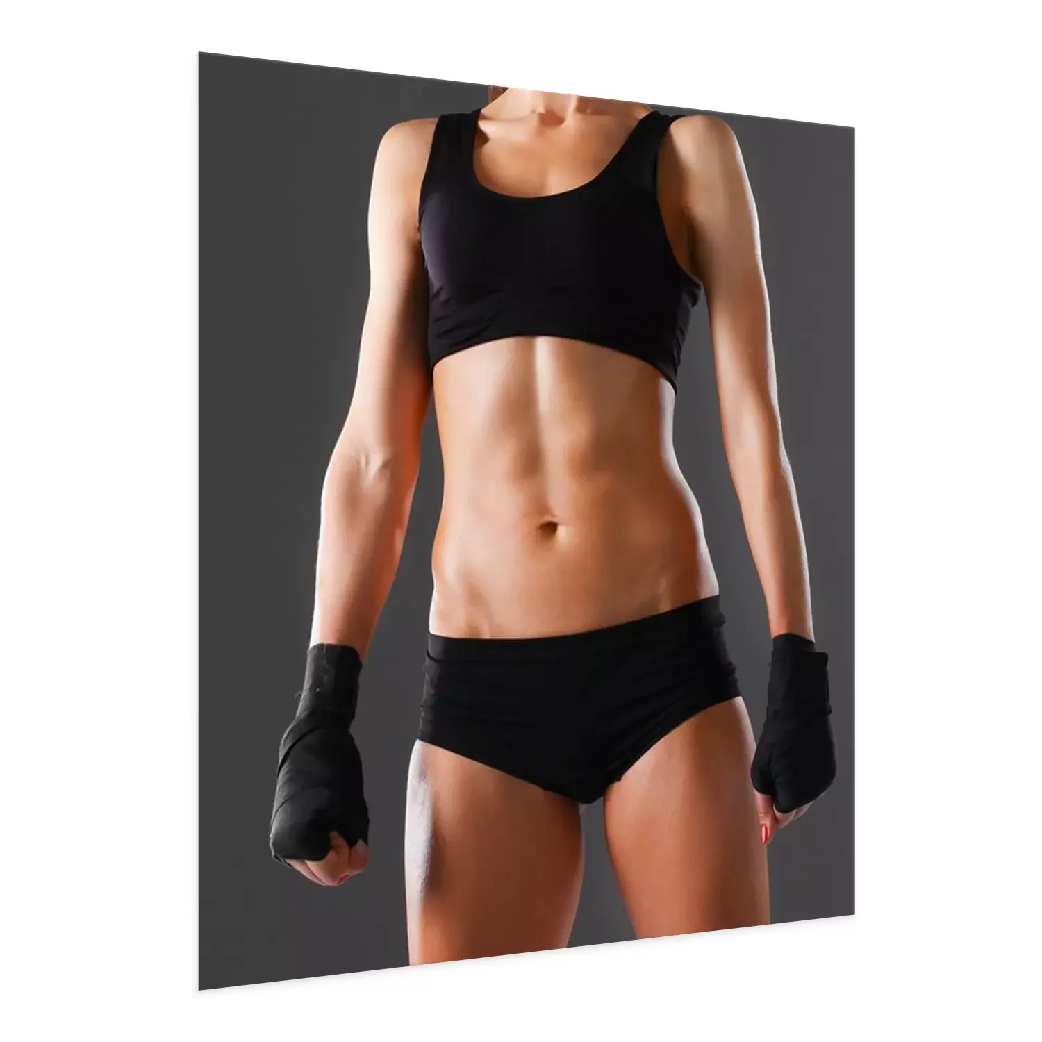 Poster  Musculaire, jeune, femme, debout, gris, fond