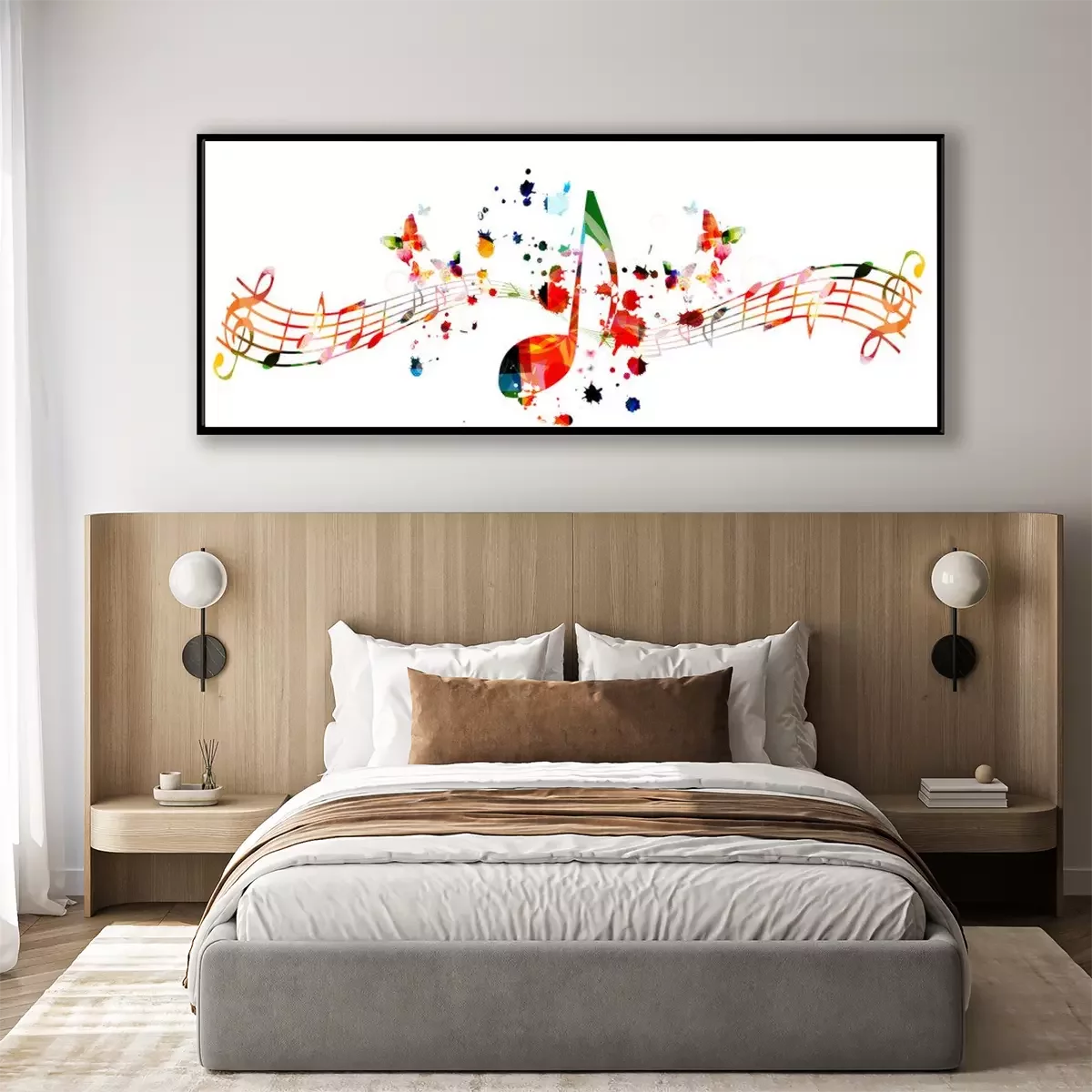 Poster  Music background with colorful music notes vector illustration design. Artistic music festival poster, live concert events, party flyer, music notes signs and symbols