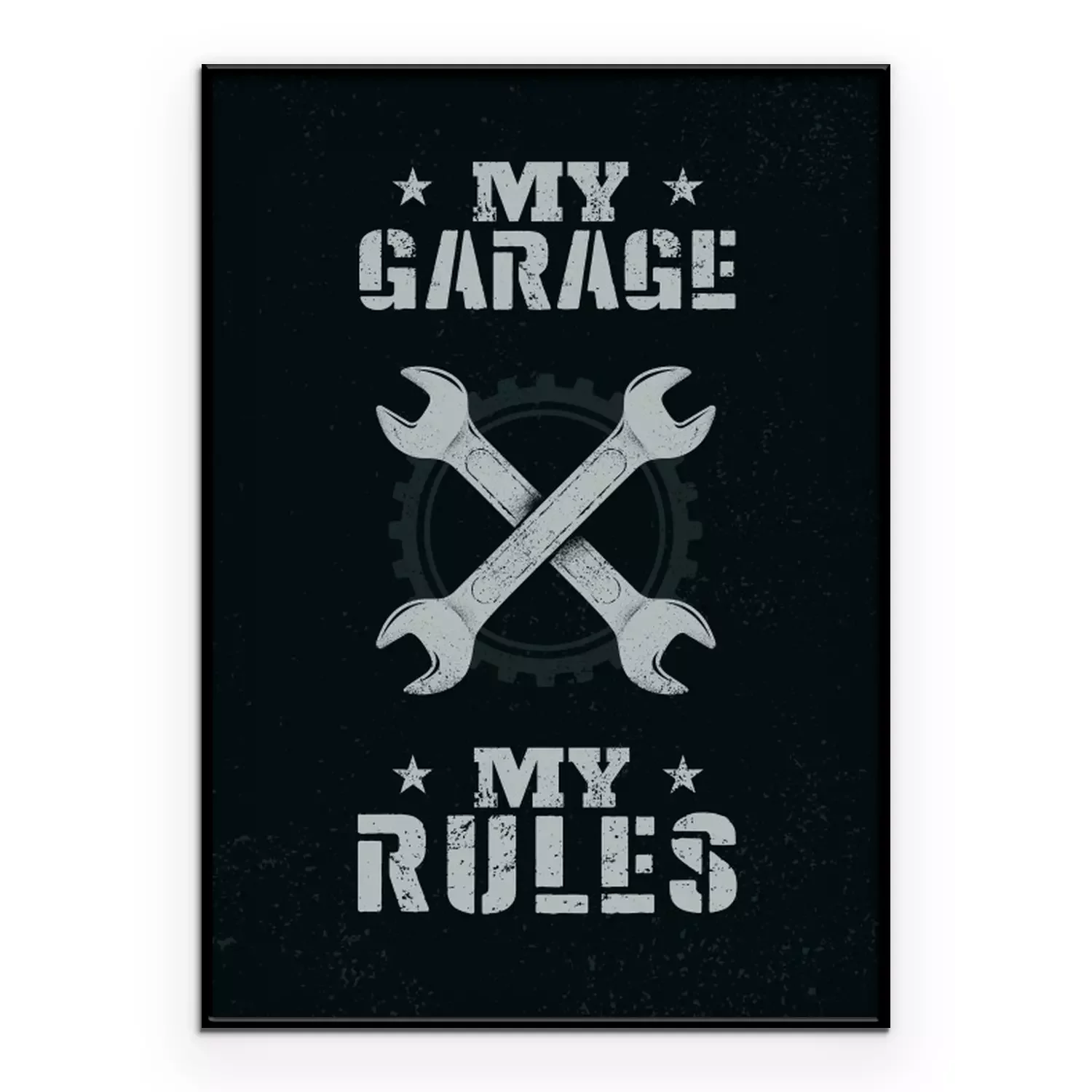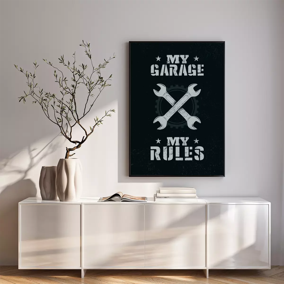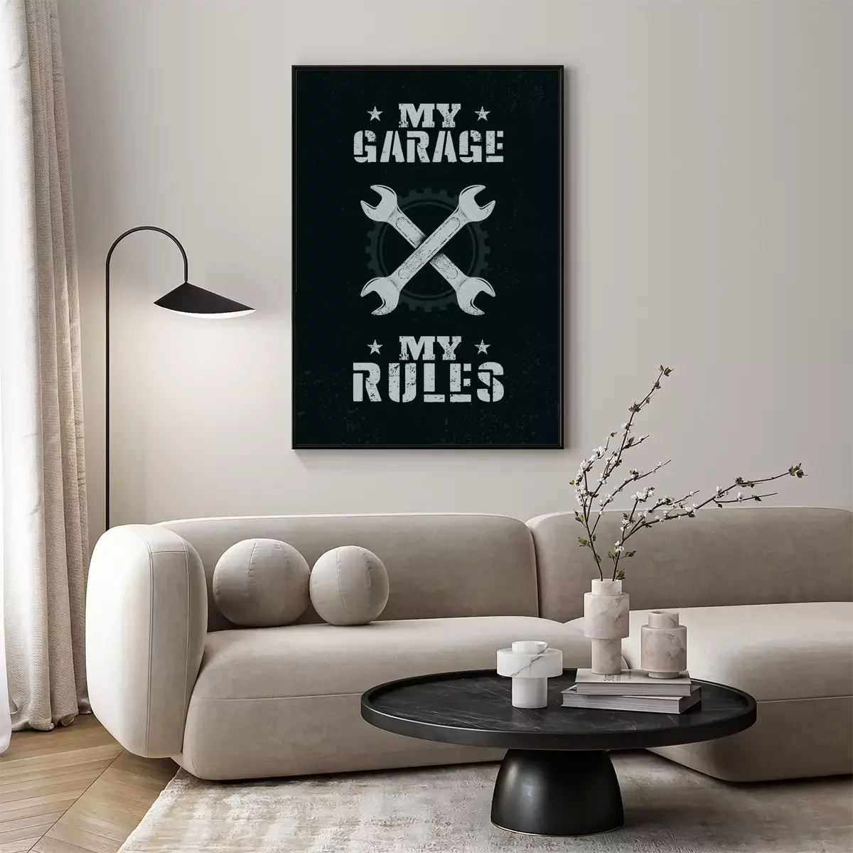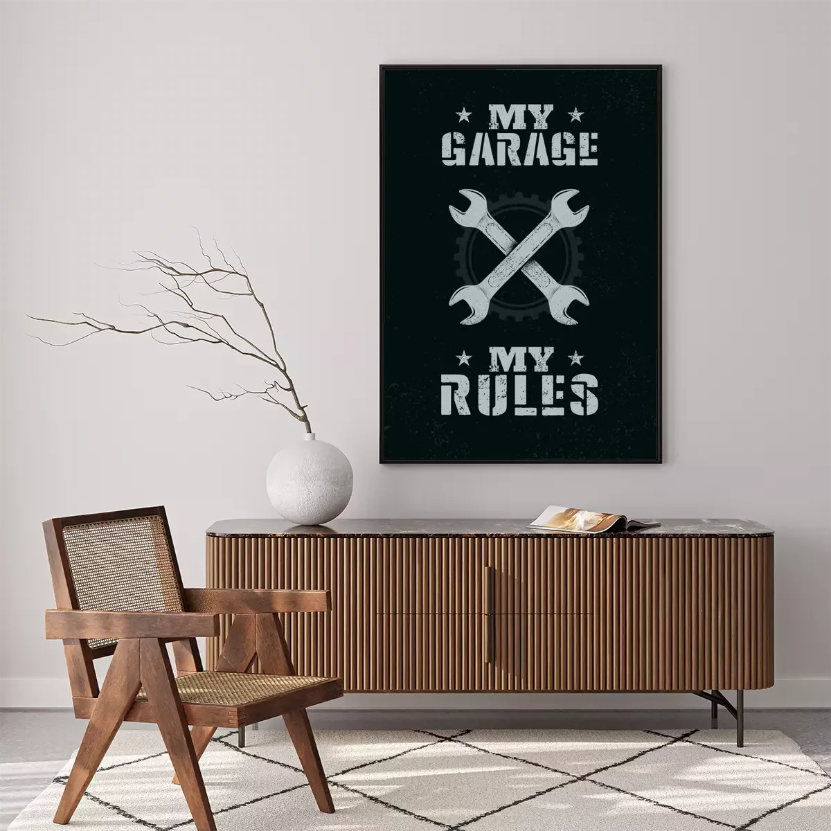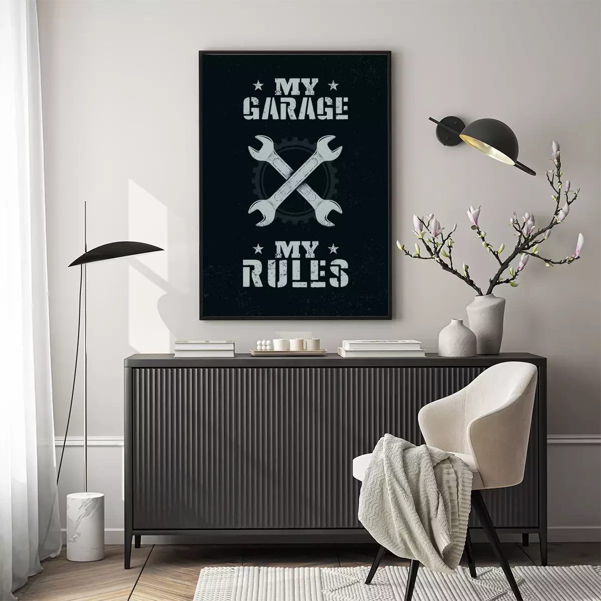 Poster  My Garage. My Rules. Creative Man Cave Motivation Interior Poster Design Concept