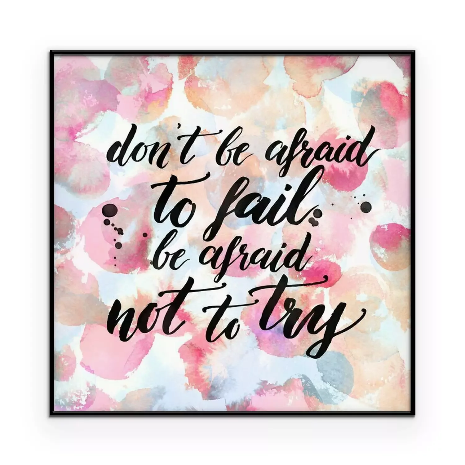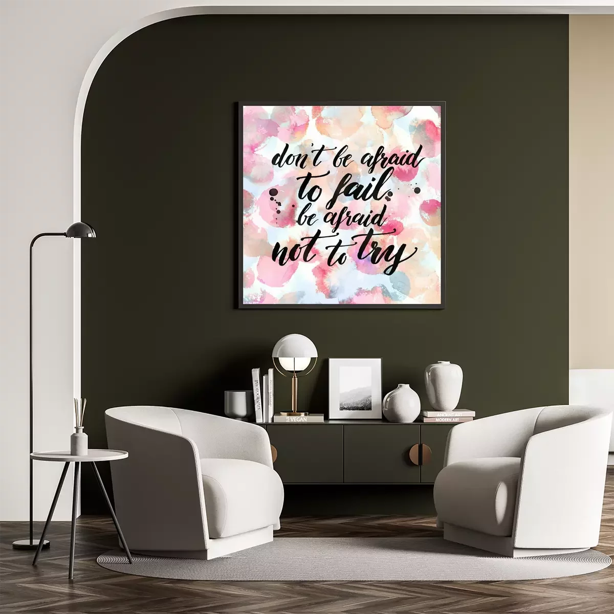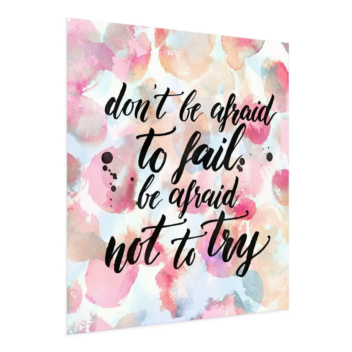 Poster  N'ayez pas peur d'échouer, craignez de ne pas essayer. Citation d'inspiration sur la vie, l'amour et les défis. Calligraphie, pastel, rose, aquarelle, fond