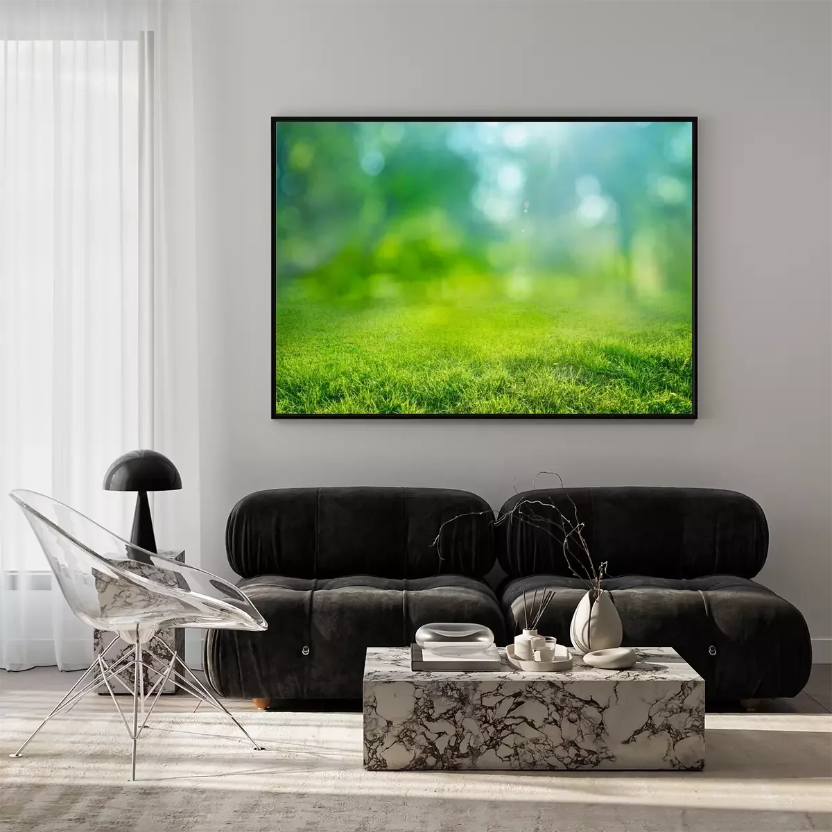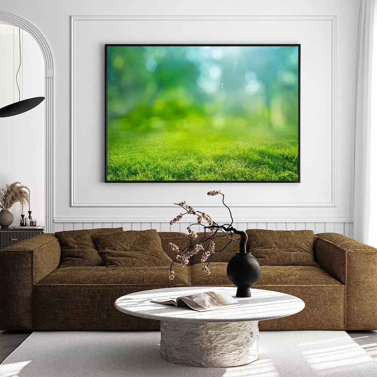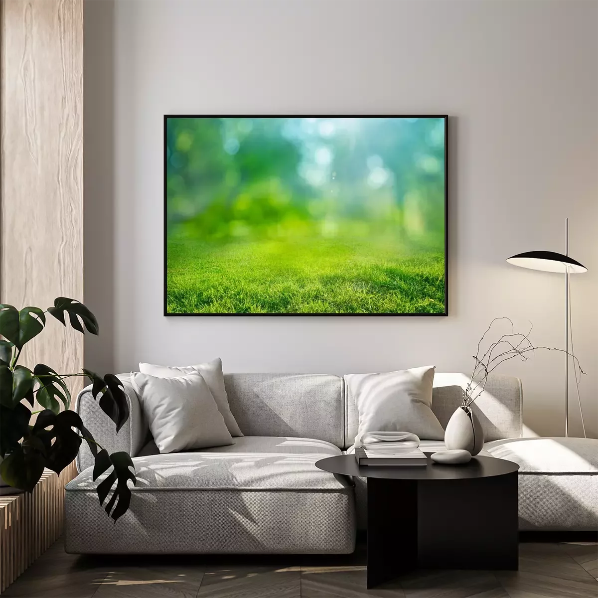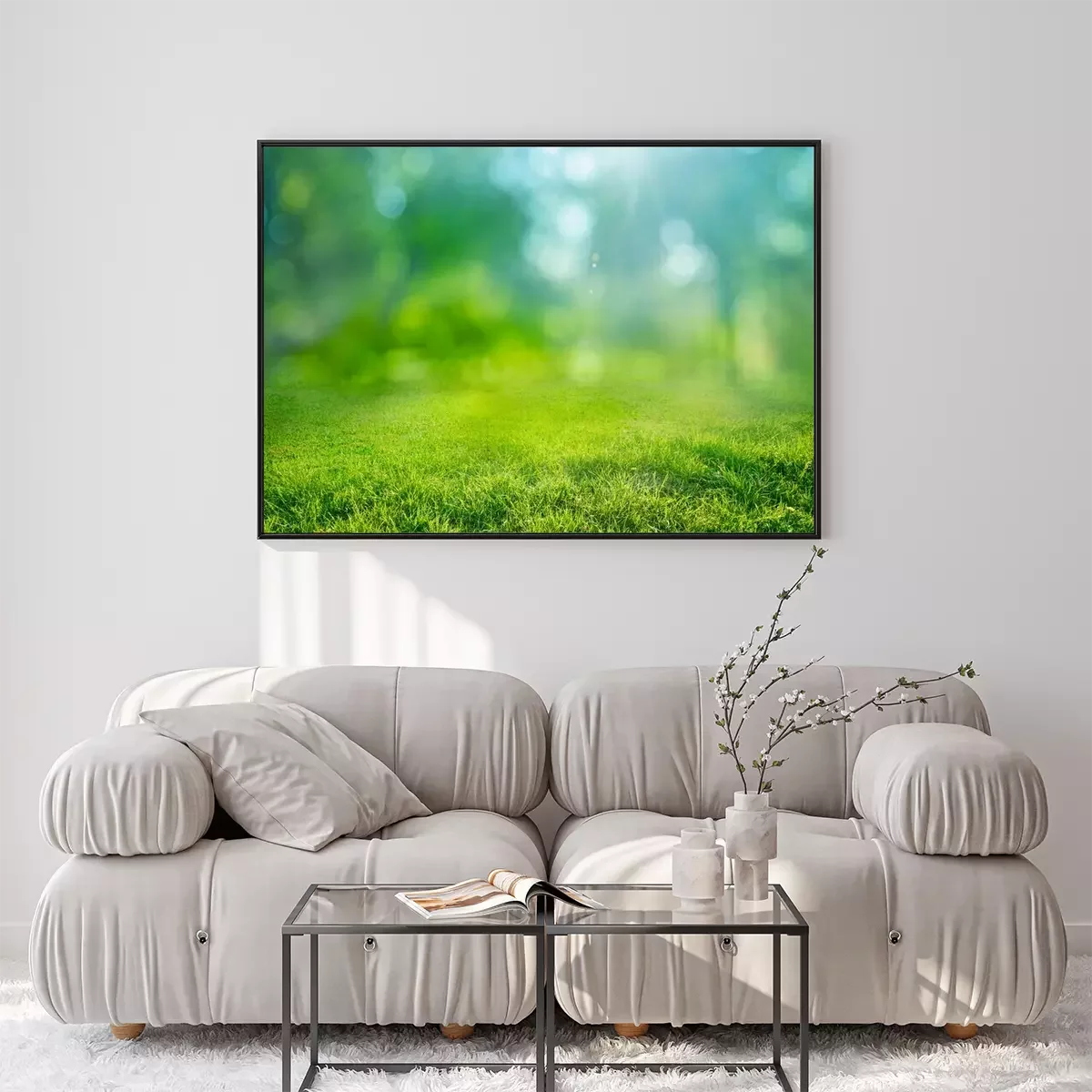 Poster  natural grass background with blurred bokeh and sun