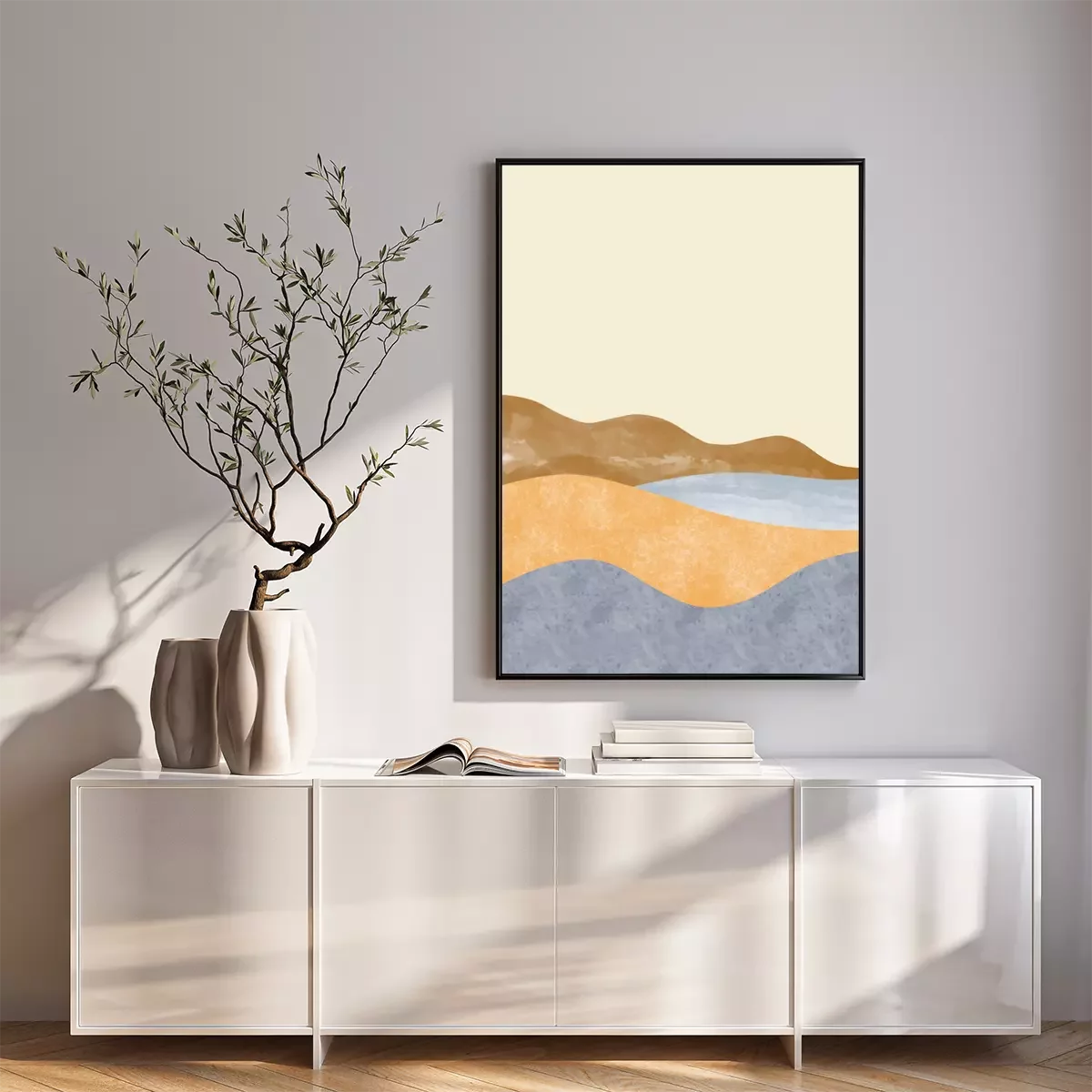 Poster : Natural Landscape background with hand painted illustrations. Mountain in poster design. Abstract arts background . Vector illustration