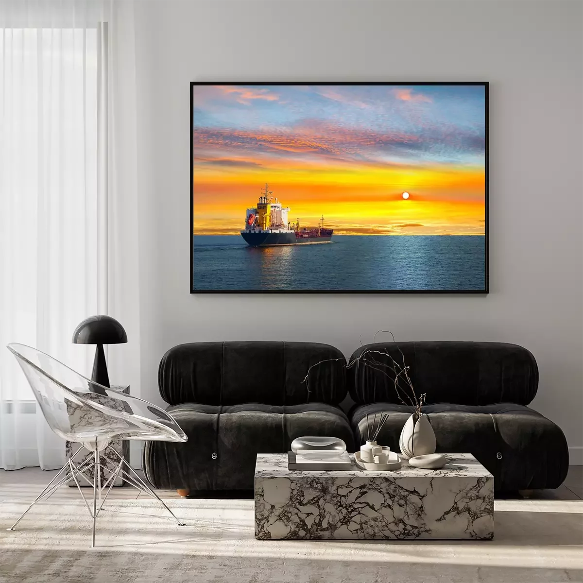 Poster : Navire en mer paysage pittoresque
