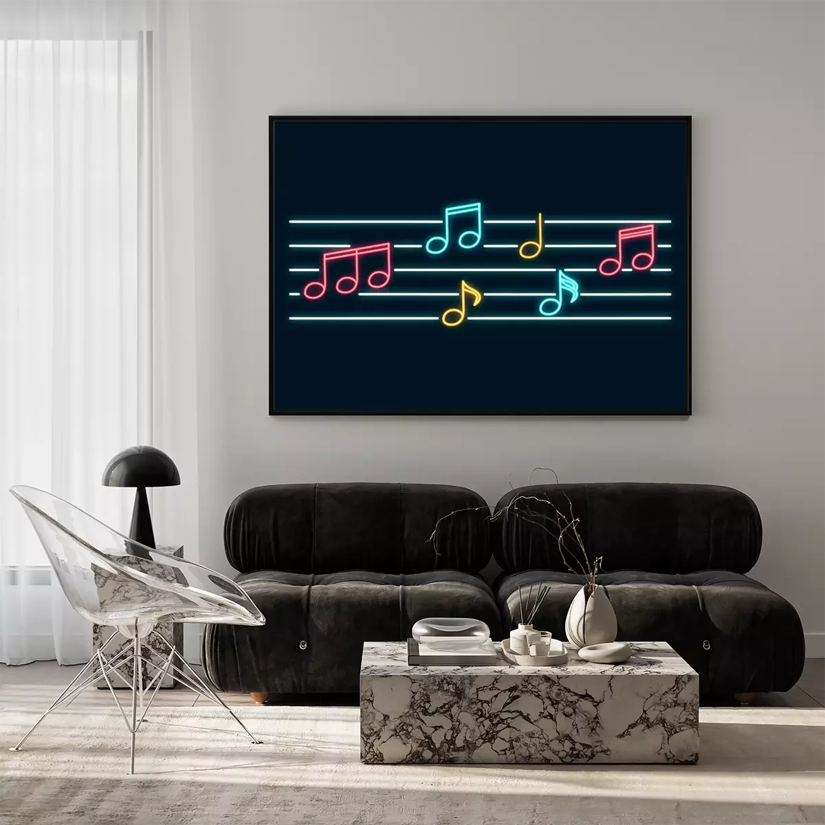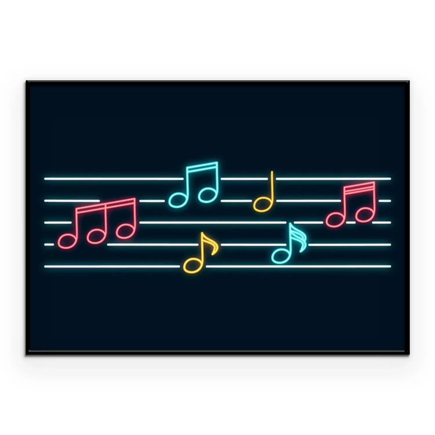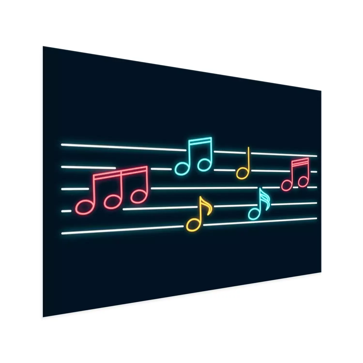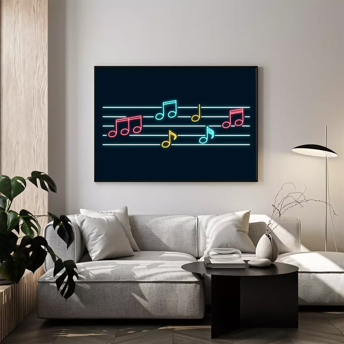 Poster : Notes de musique frontière signe néon. Led Concept pour magasin de musique avec clef. Illustration de vecteur isolé