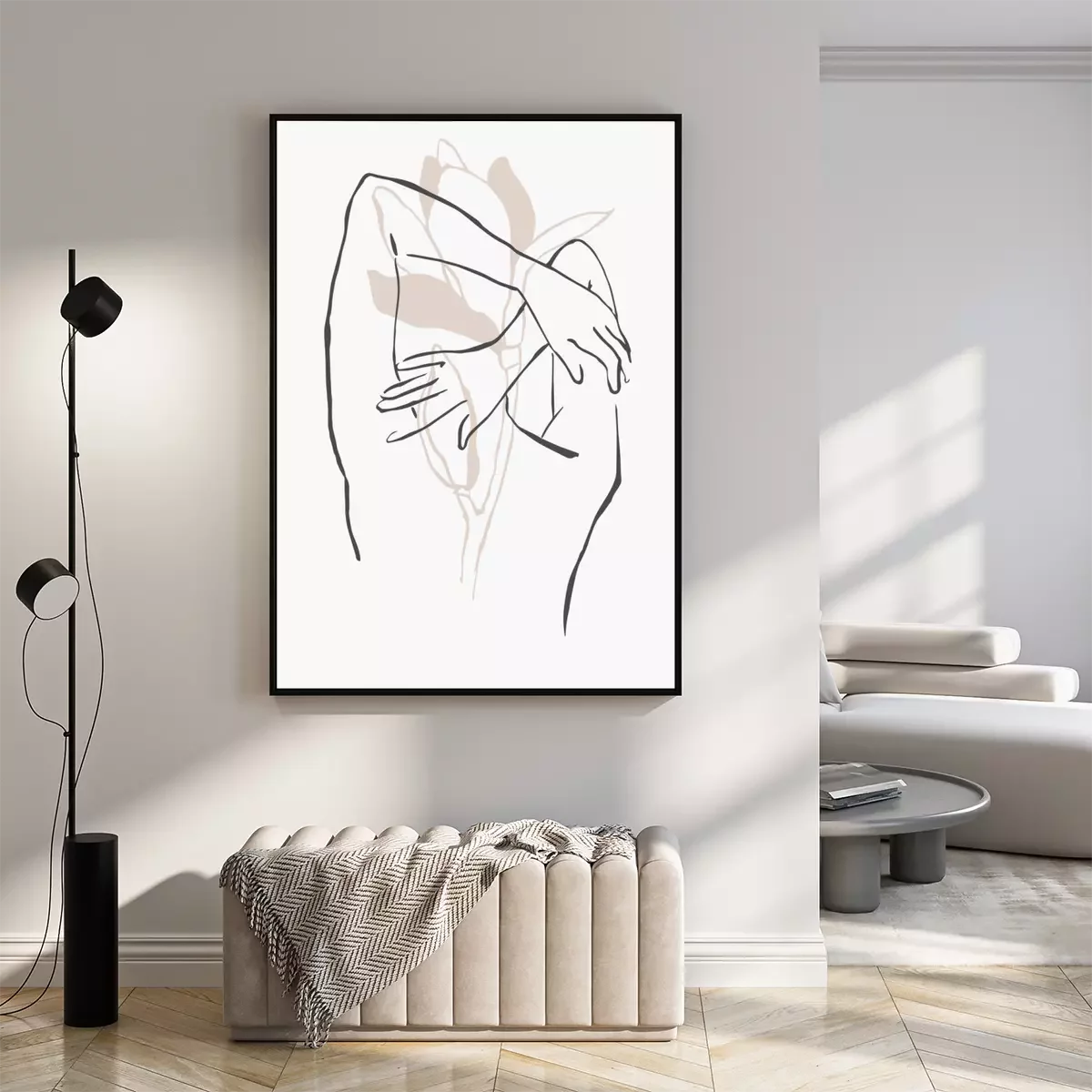 Silhouettes féminines minimalistes sur fond tropical Feuilles