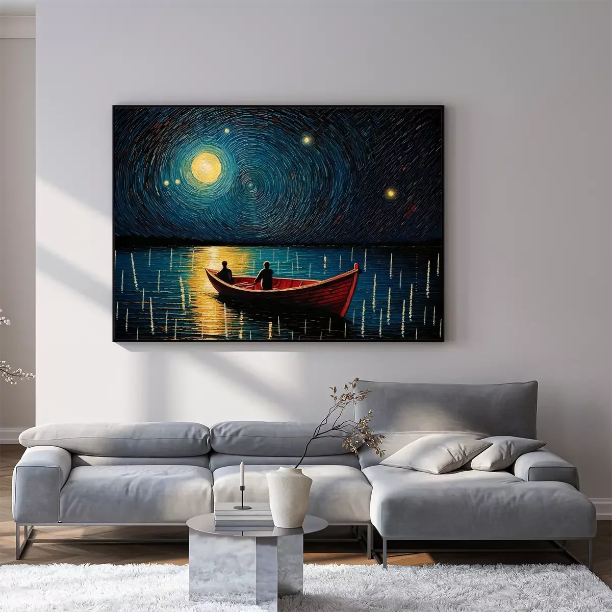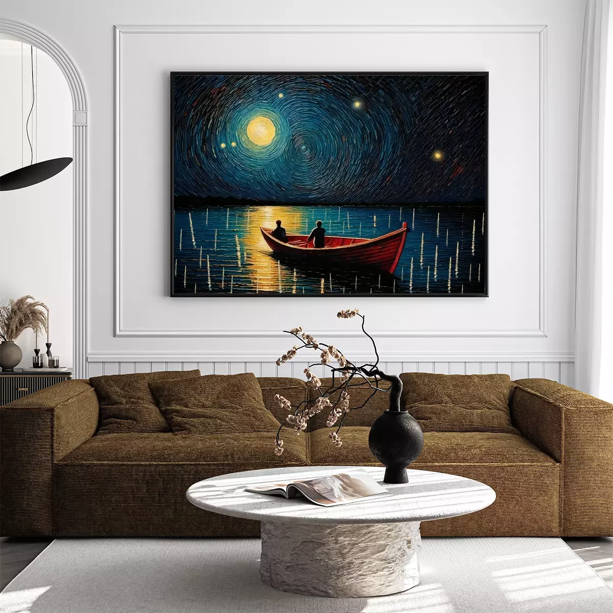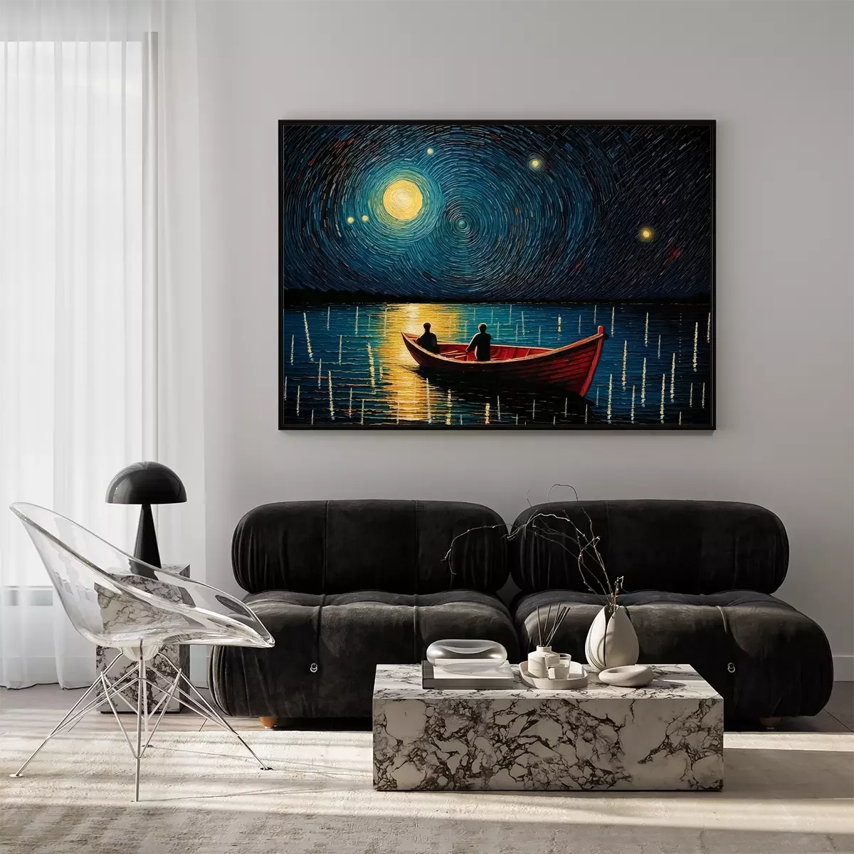 Poster : Nuit étoilée vue depuis un bateau sur le lac