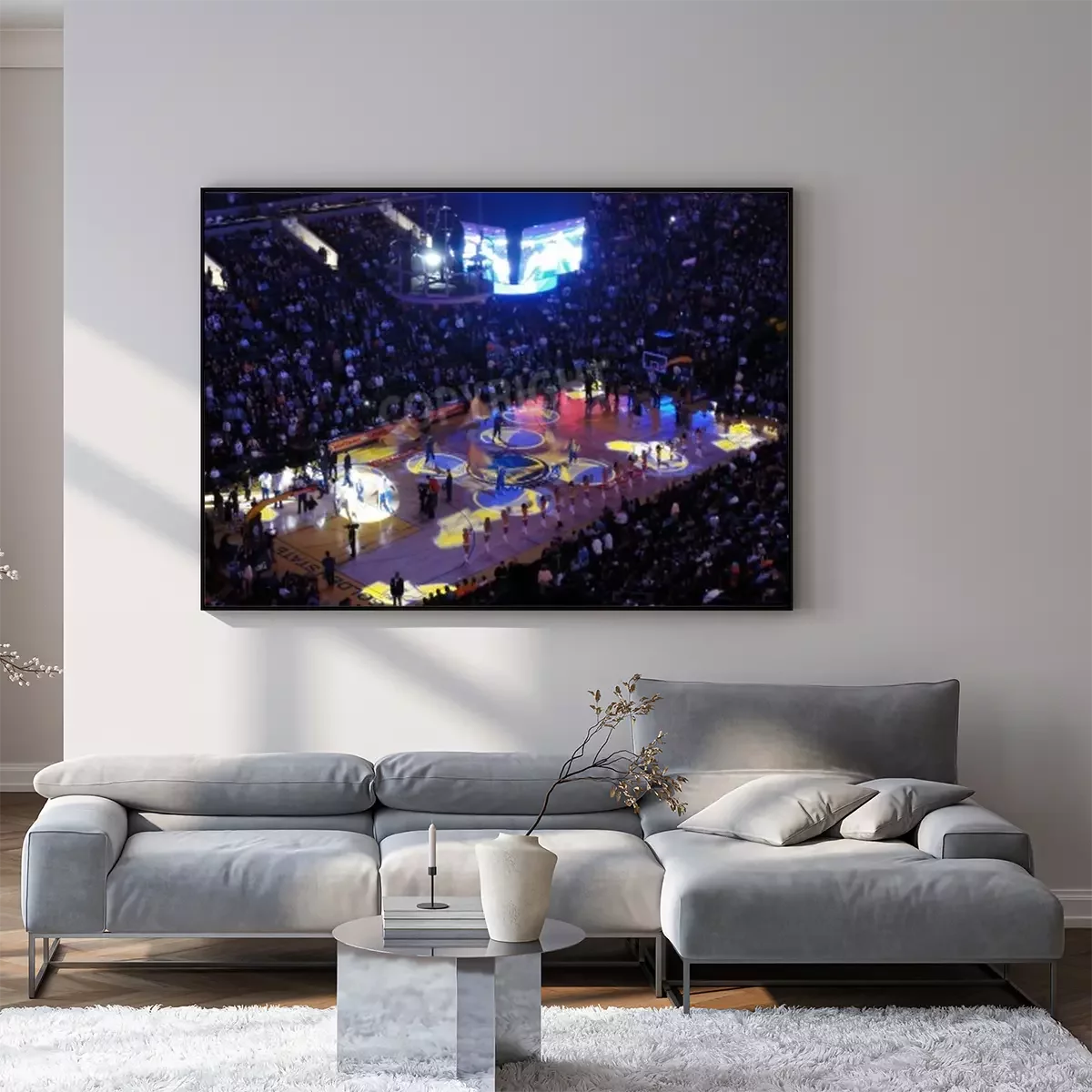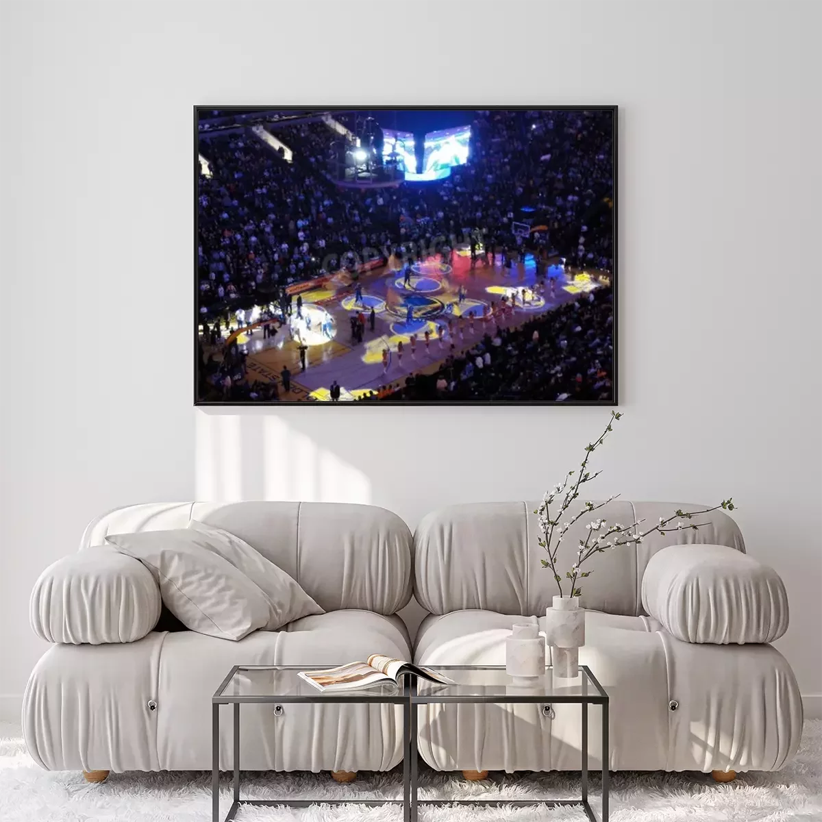 Poster  OAKLAND, CA - JANVIER 22: Celtics vs Warriors: Début du spectacle de jeu de lumière se passe comme cheerleaders Pump Up fans à Oracle Arena Prise le 22 Février, 2011 Oakland en Californie.
