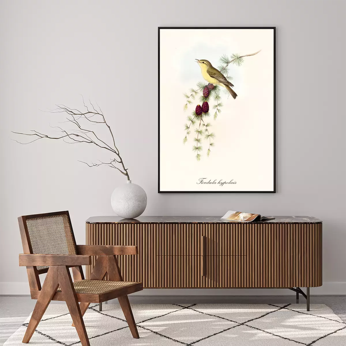 Dessin avec des oiseaux posés sur des branches couvertes de fleurs