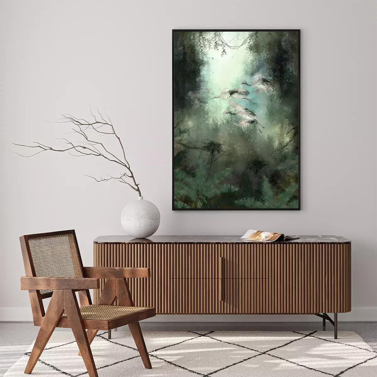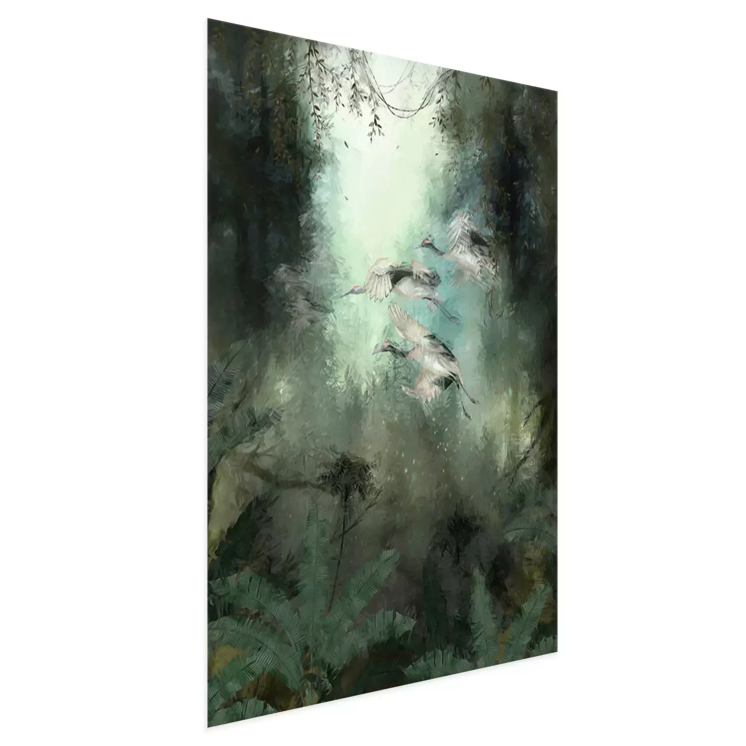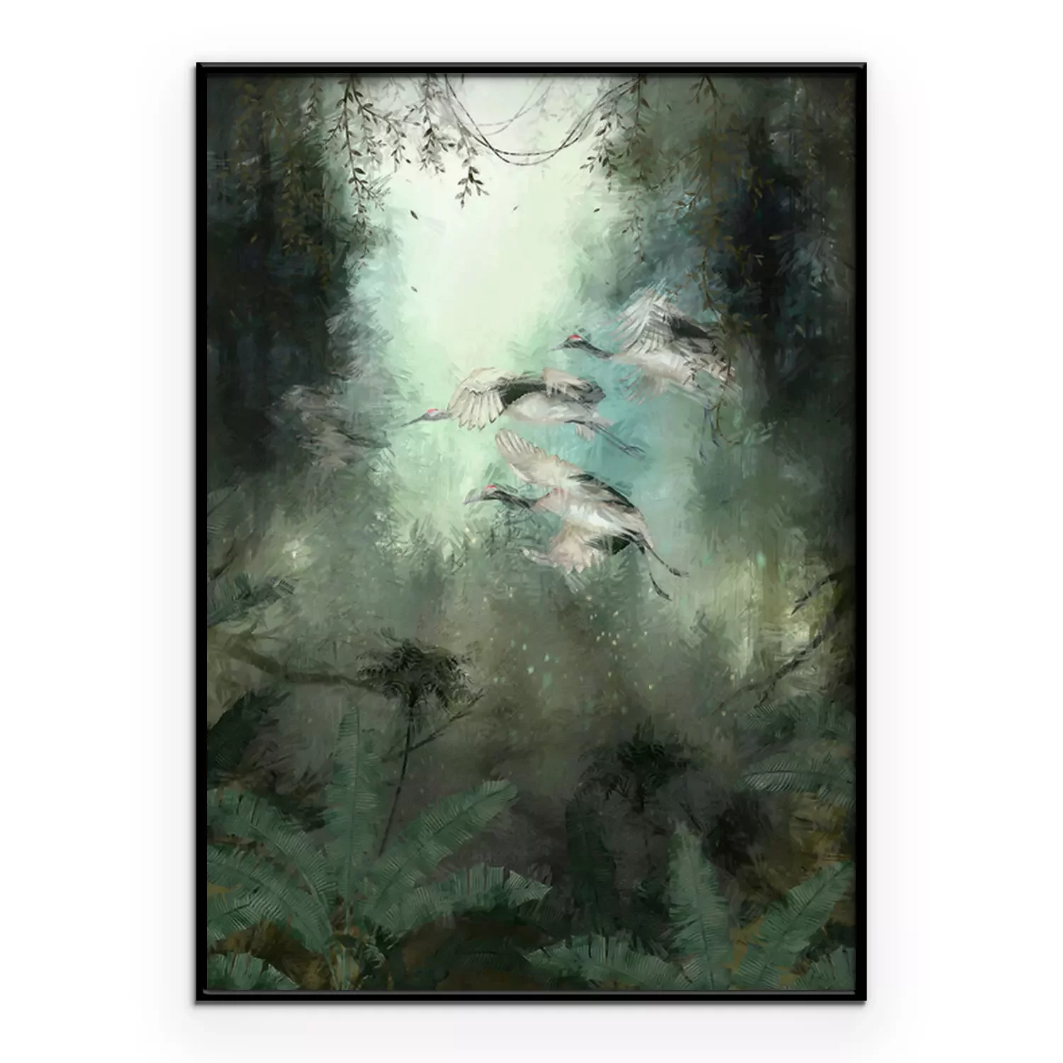 Wallpaper Jungle Tropical Forest Palm tree Birds Vintage Painting old