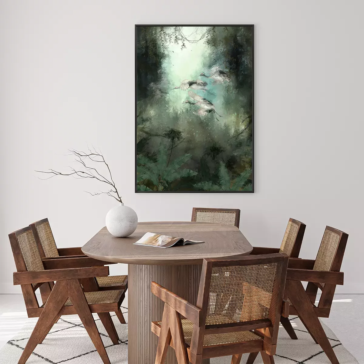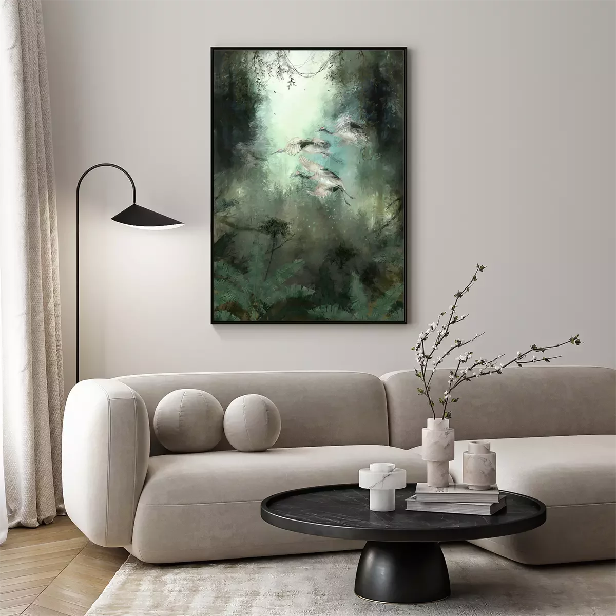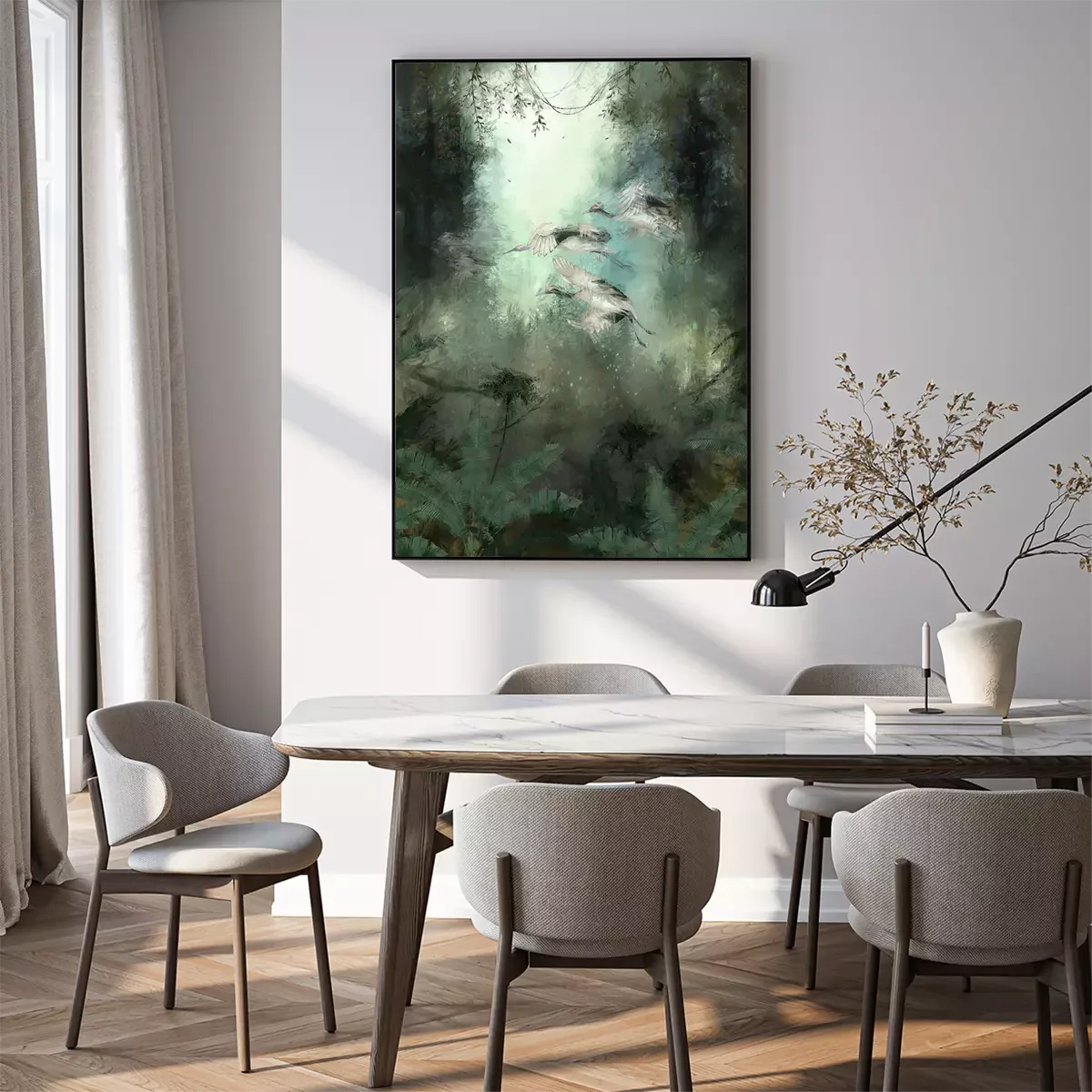 Wallpaper Jungle Tropical Forest Palm tree Birds Vintage Painting old