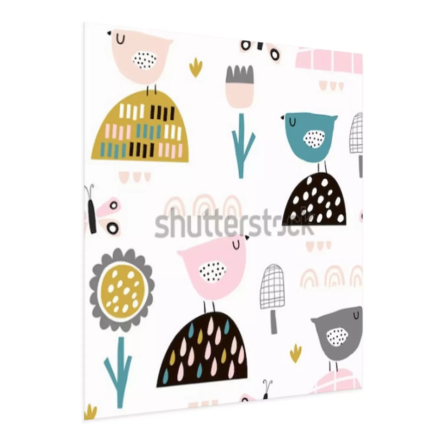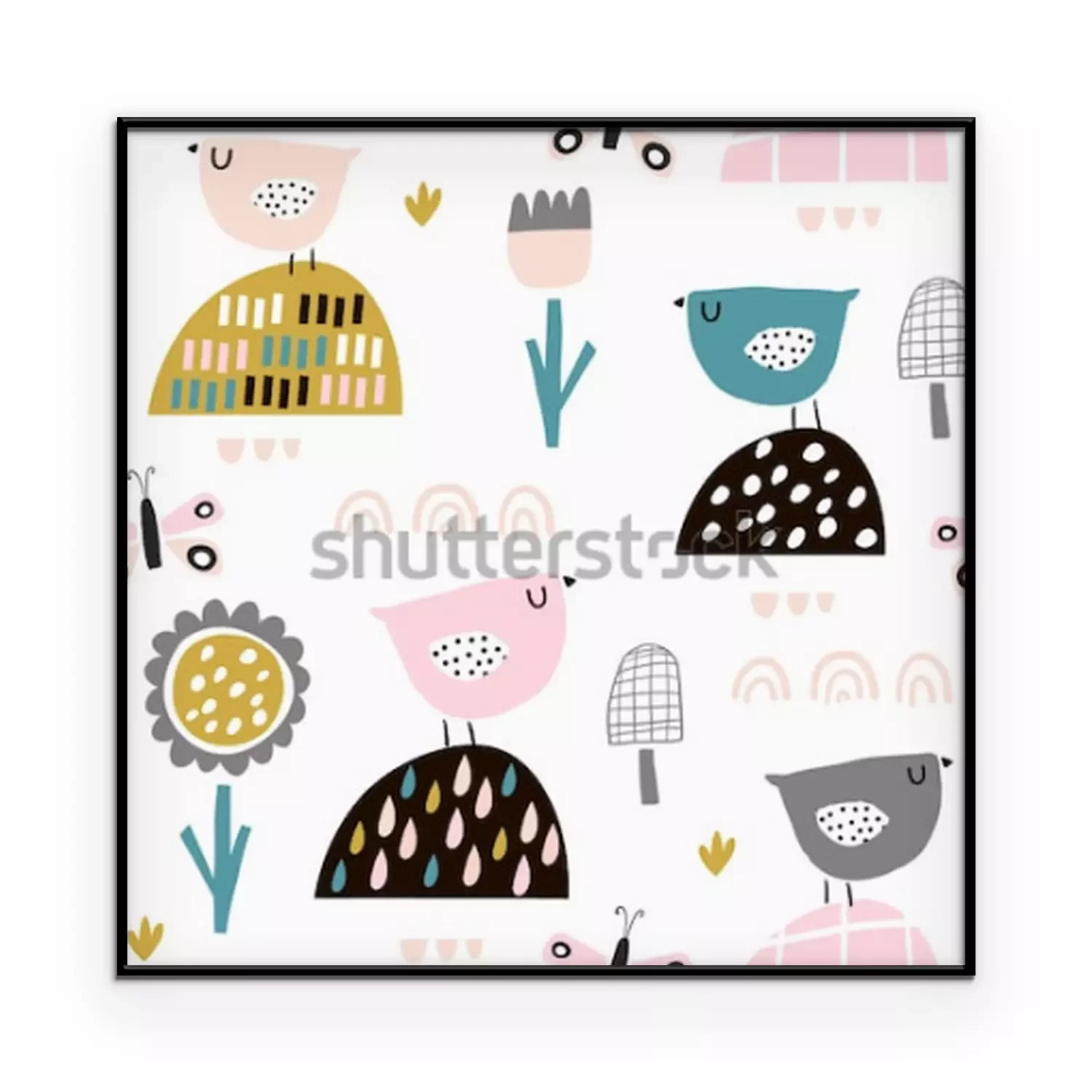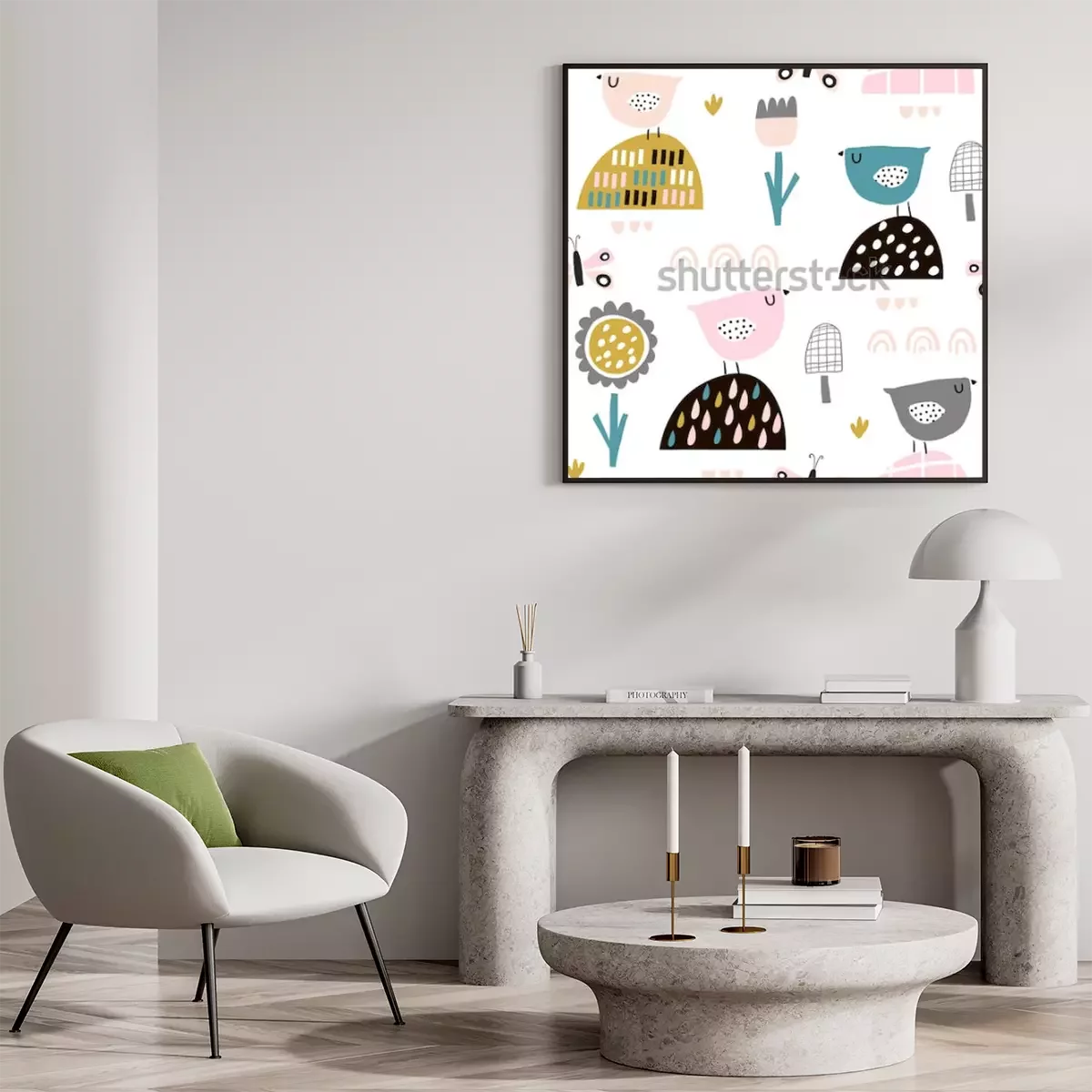 Poster : Oiseaux colorés assis sur des demi-cercles à motifs