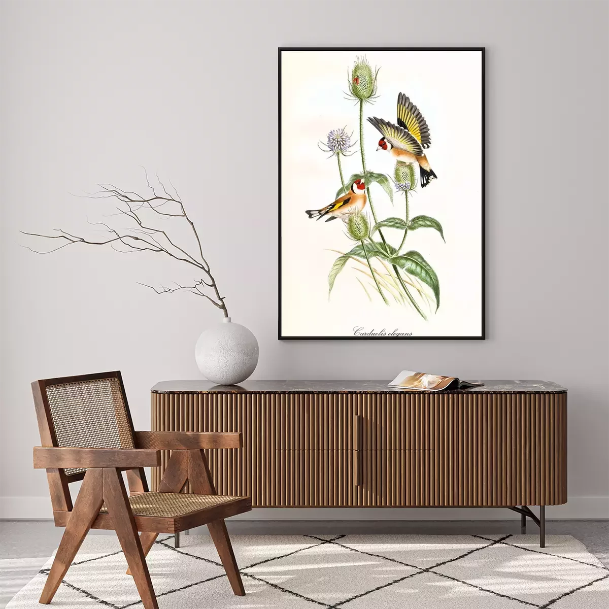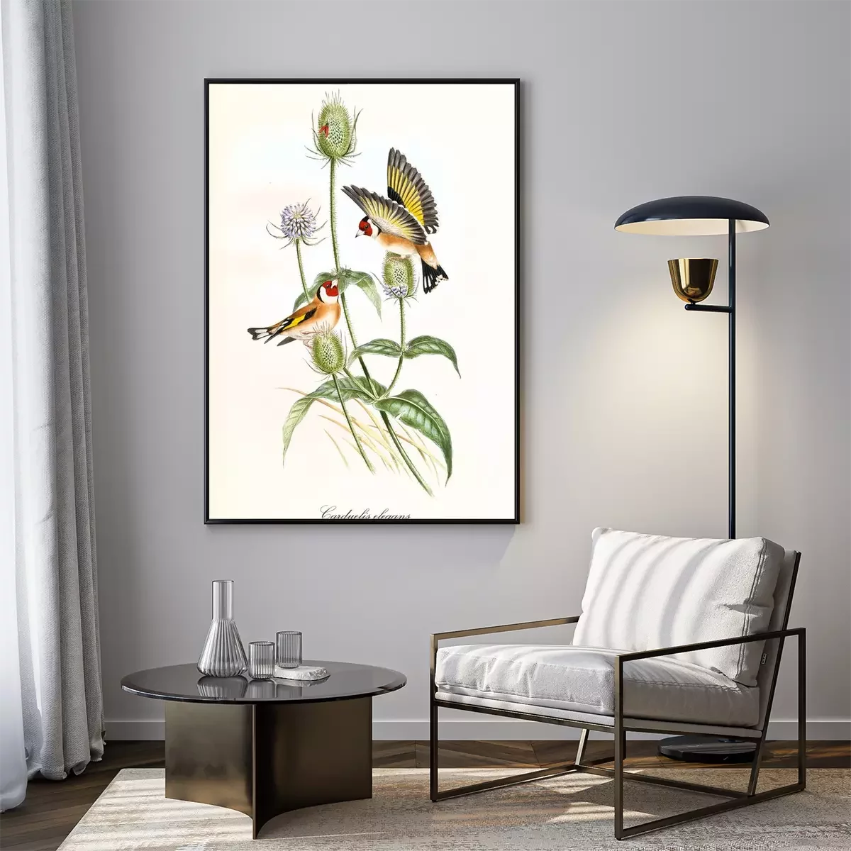 Dessin avec des oiseaux posés sur des branches couvertes de fleurs