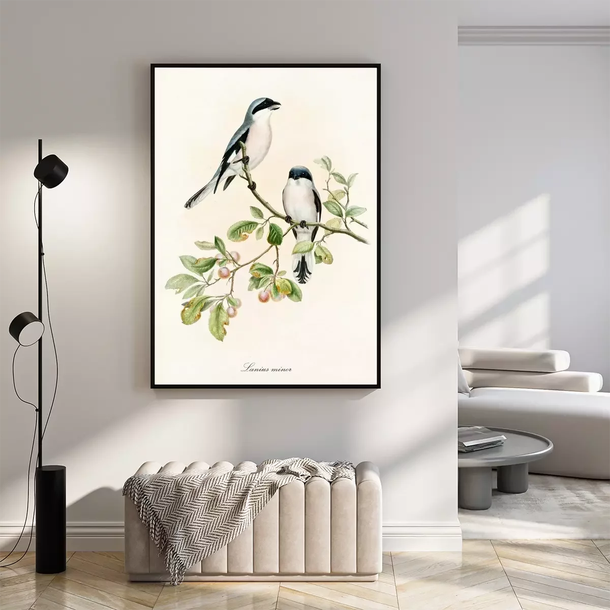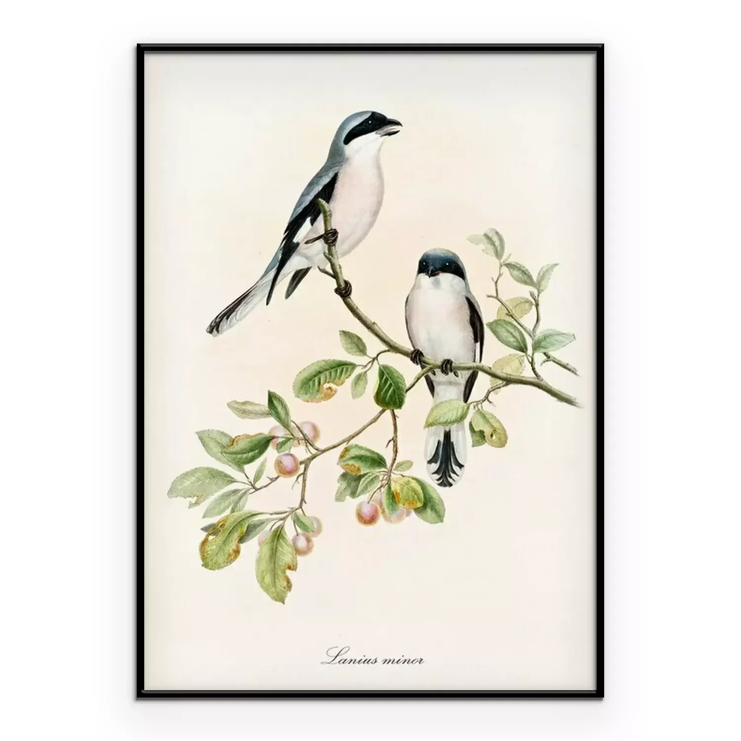 Dessin avec des oiseaux posés sur des branches couvertes de fleurs