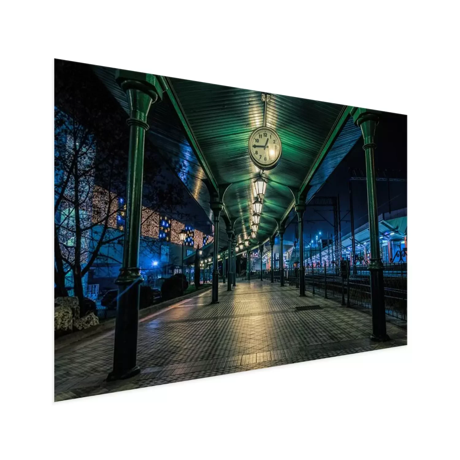 Poster  Old railway platform in Krakow, Poland. Christmas Eve