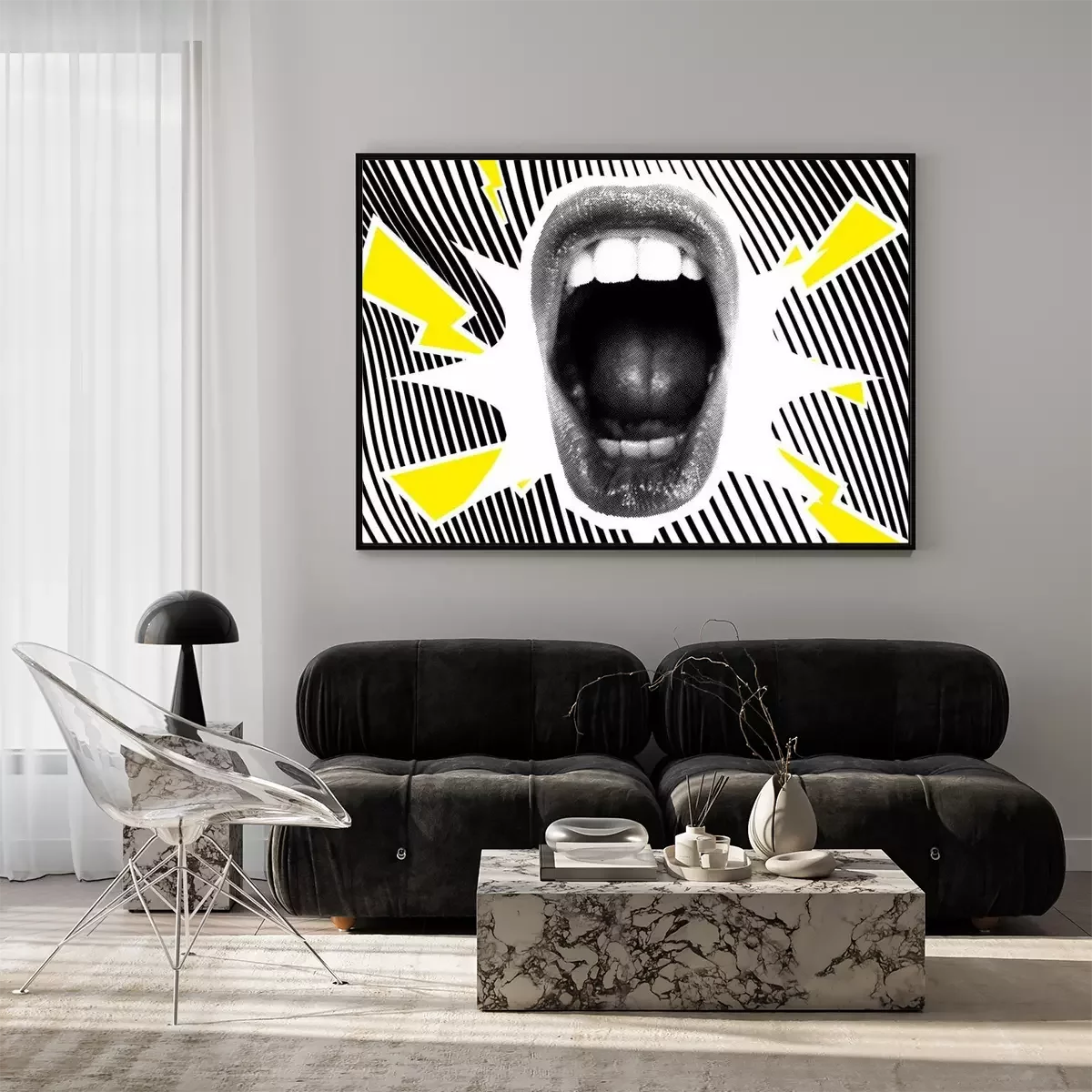 Poster : Open Screaming Mouth On A Striped Background