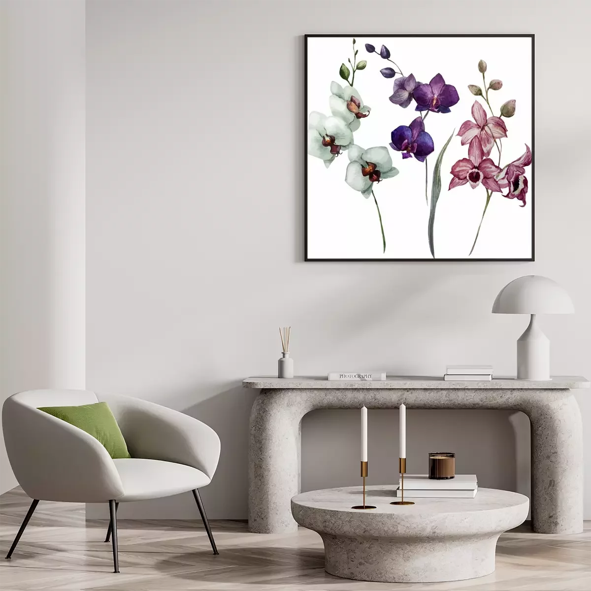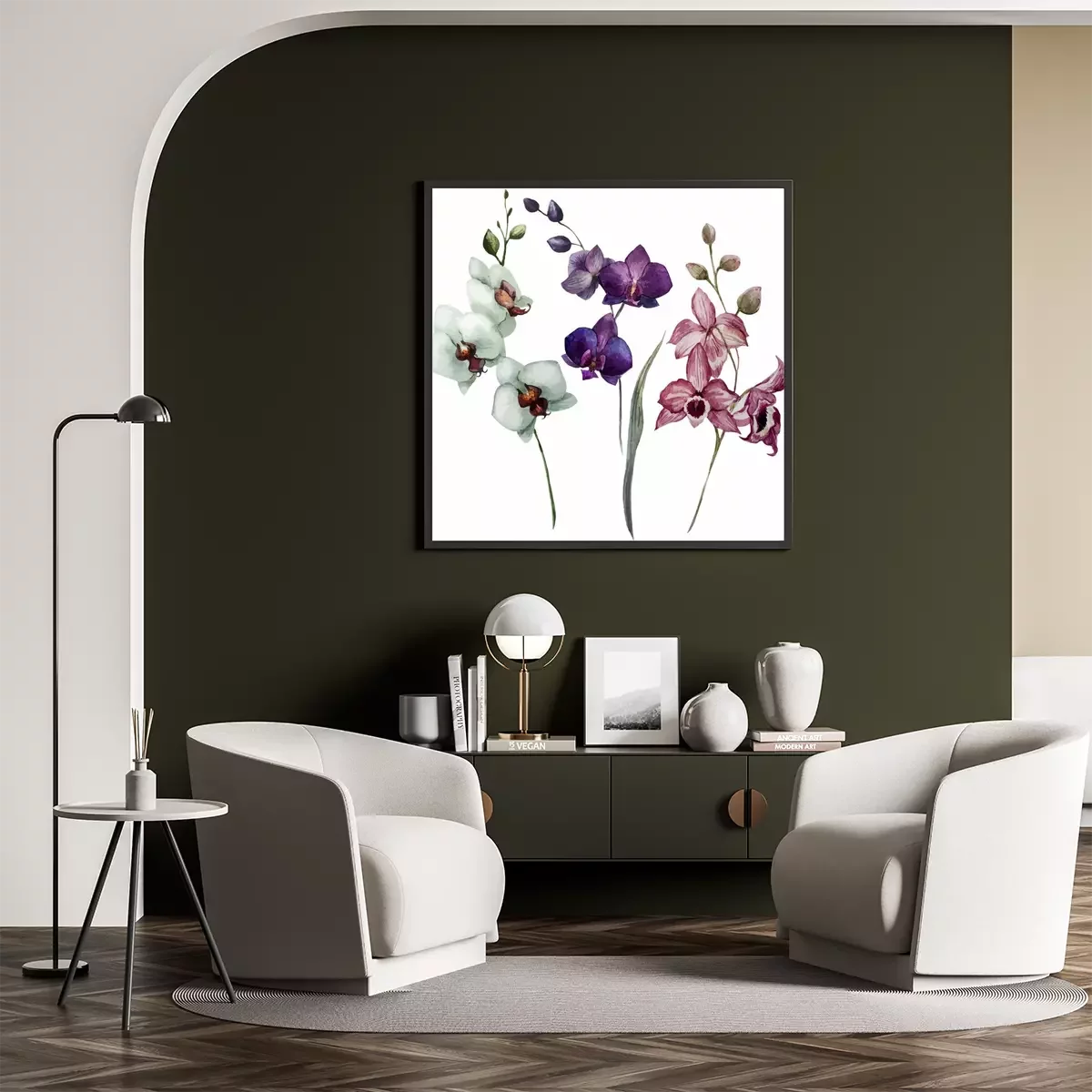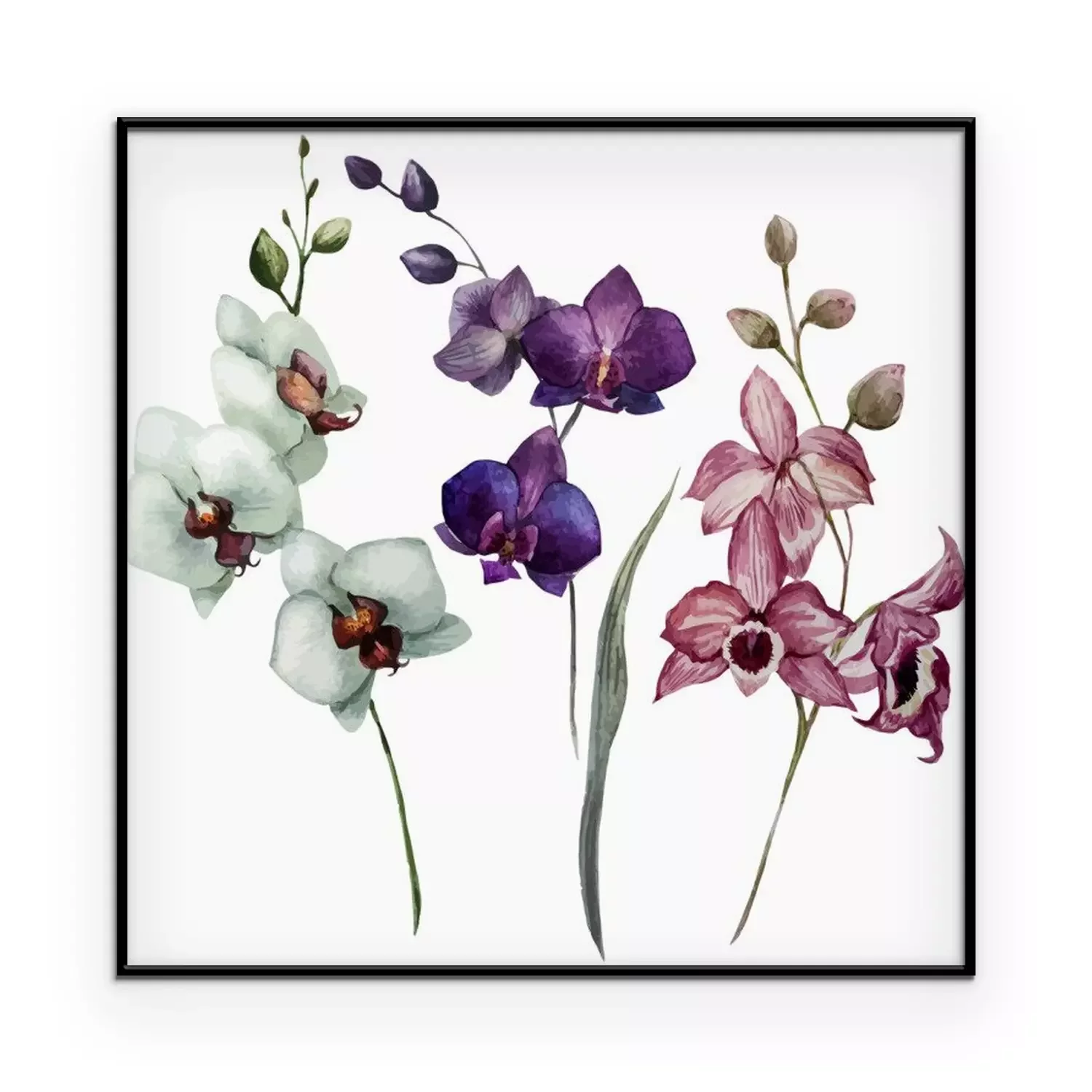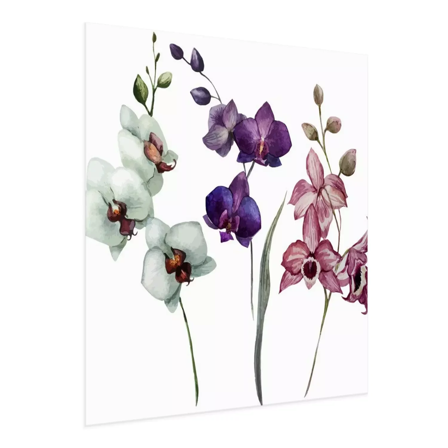 Poster  Orchidee drie scheuten in verschillende kleuren