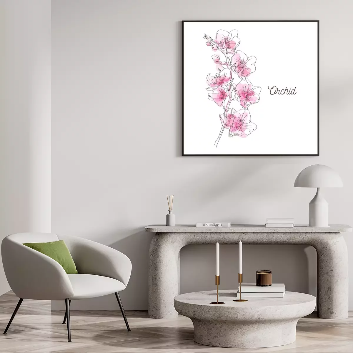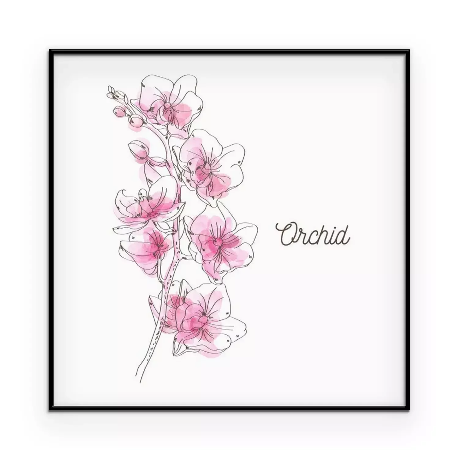 Poster : Orchideeënschets gevuld met kleurrijke vlekken