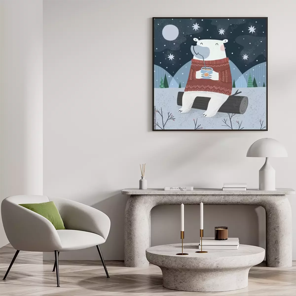 Poster  Ours en peluche avec une tasse de chocolat chaud