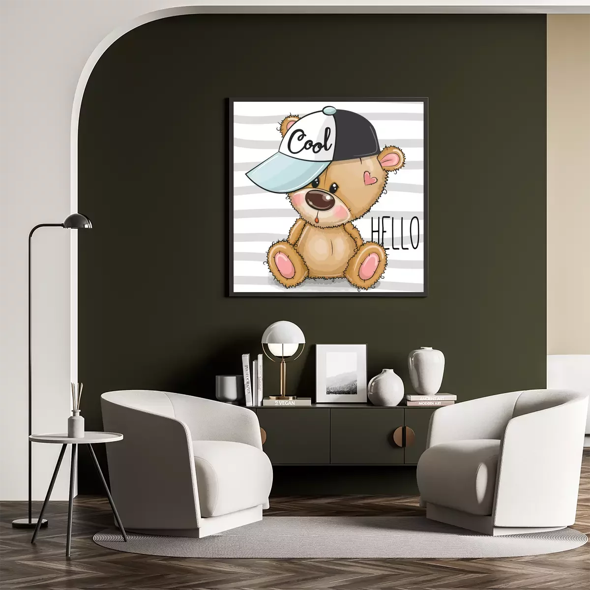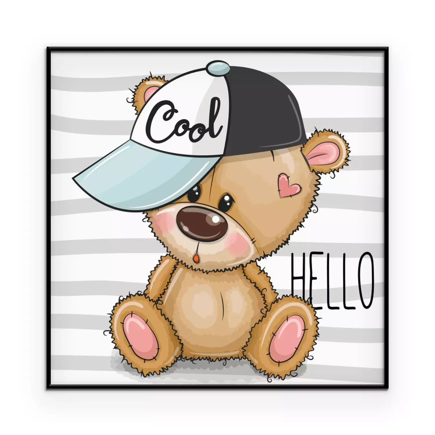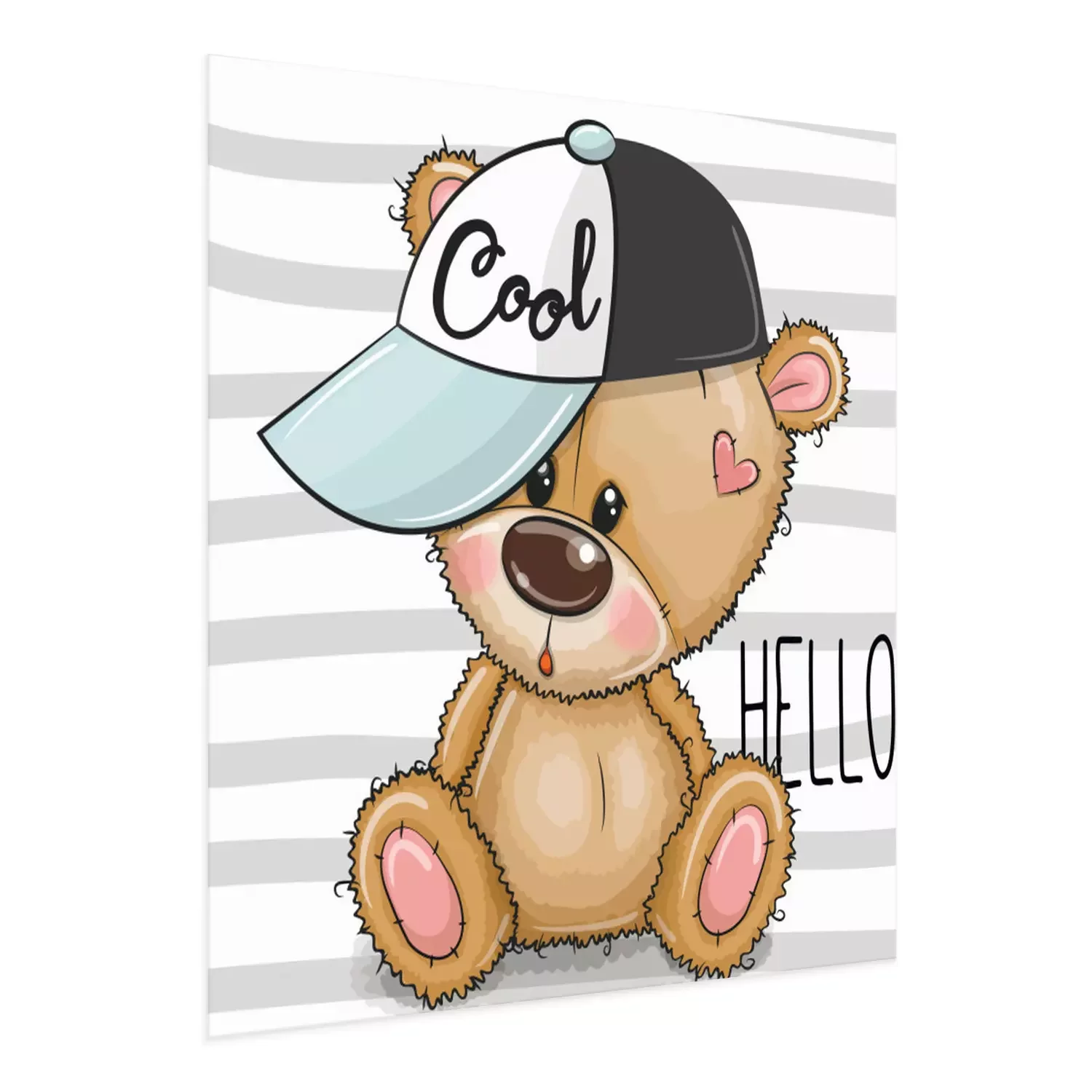 Poster  Ours en peluche dans une casquette avec un coeur sur la fourrure