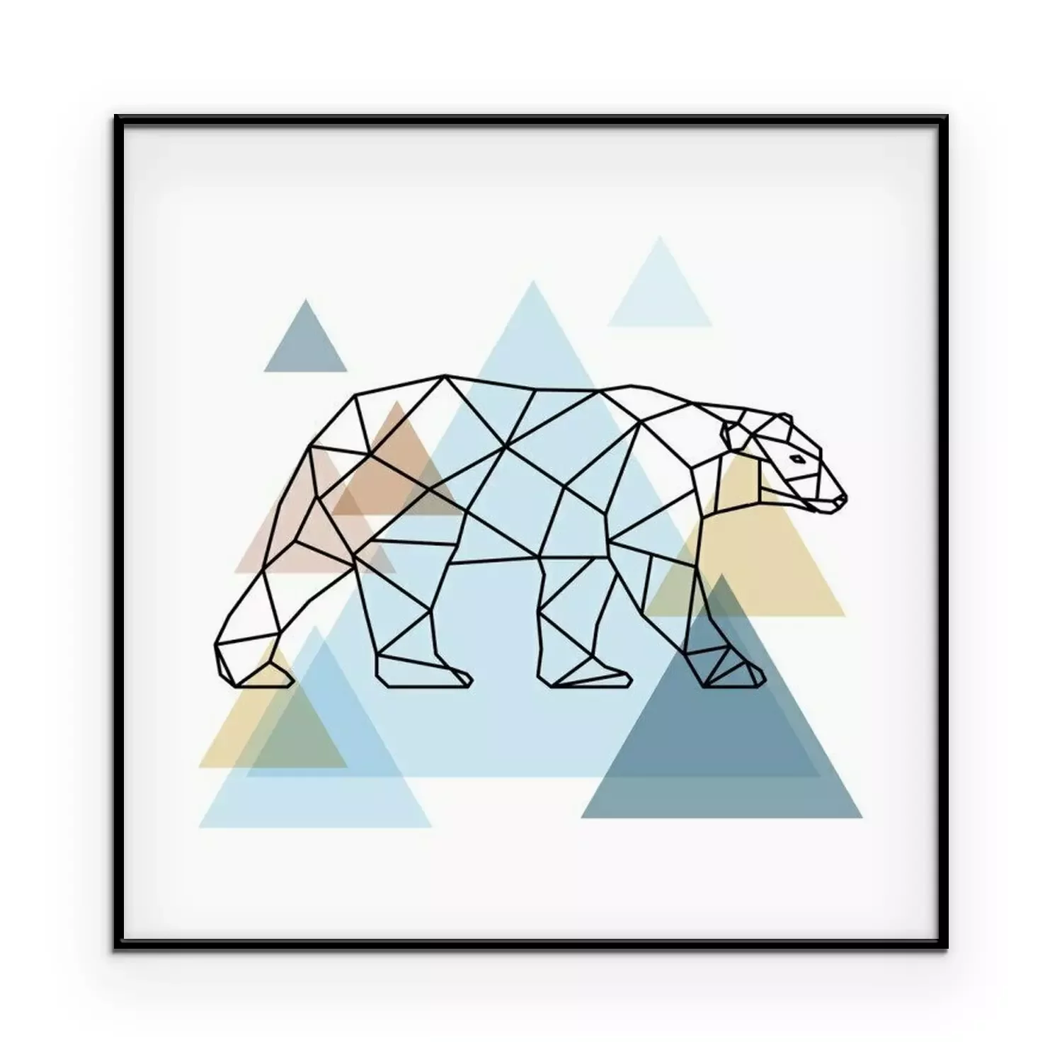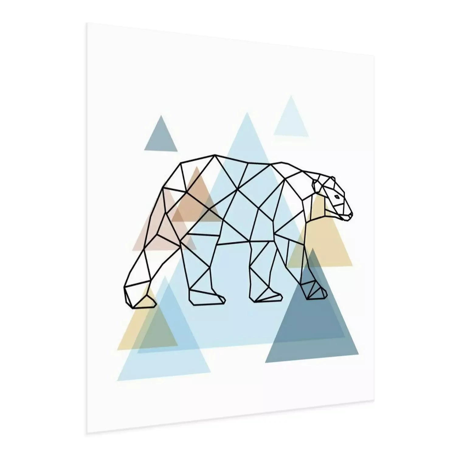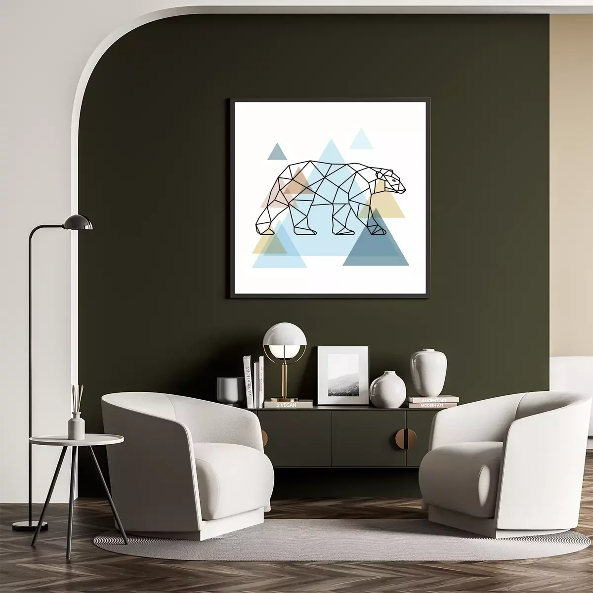 Poster : Ours géométrique avec des triangles en arrière-plan