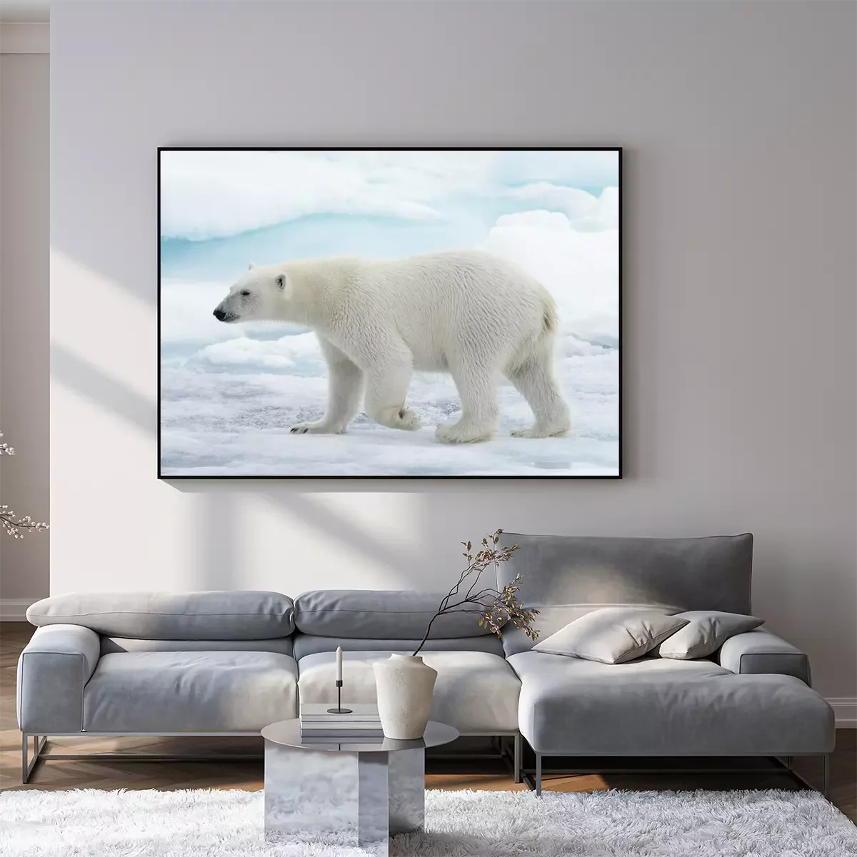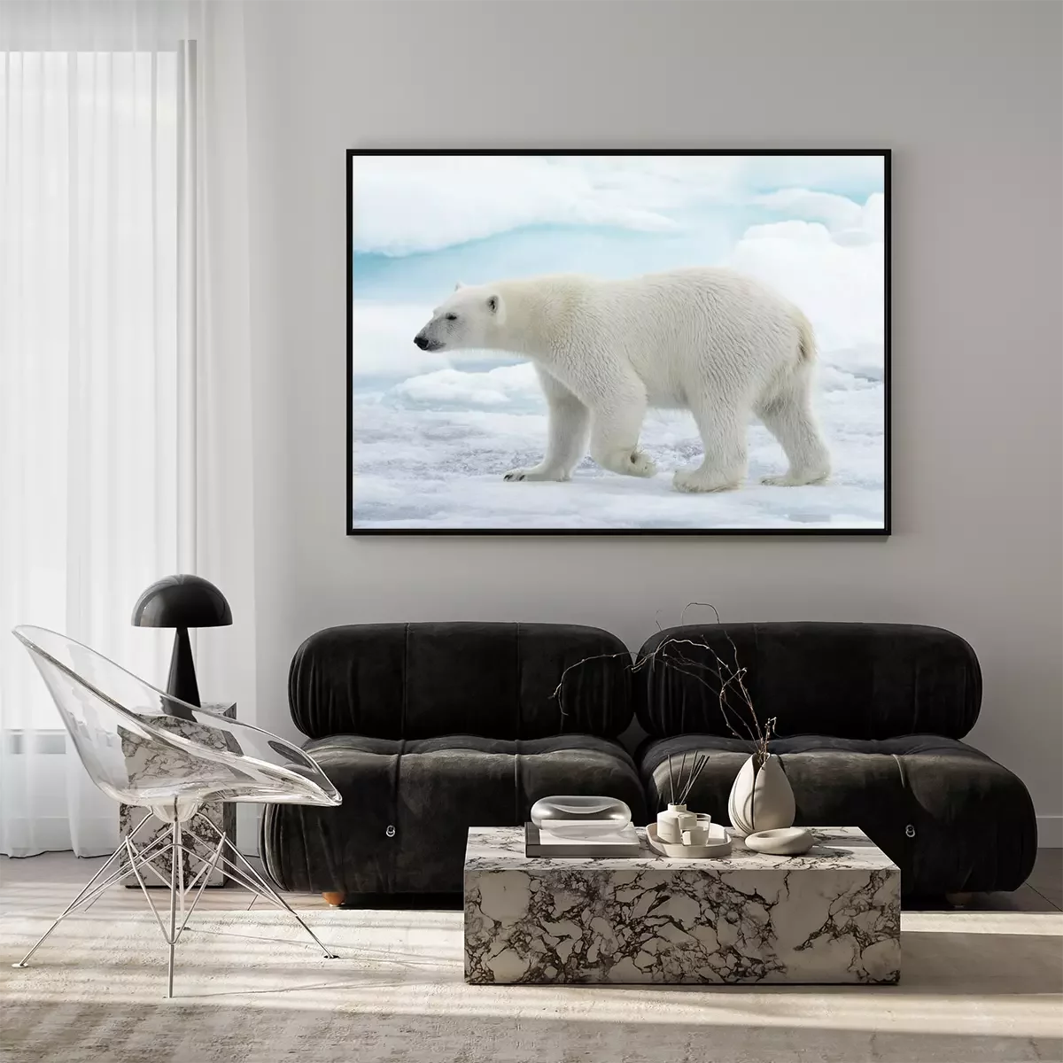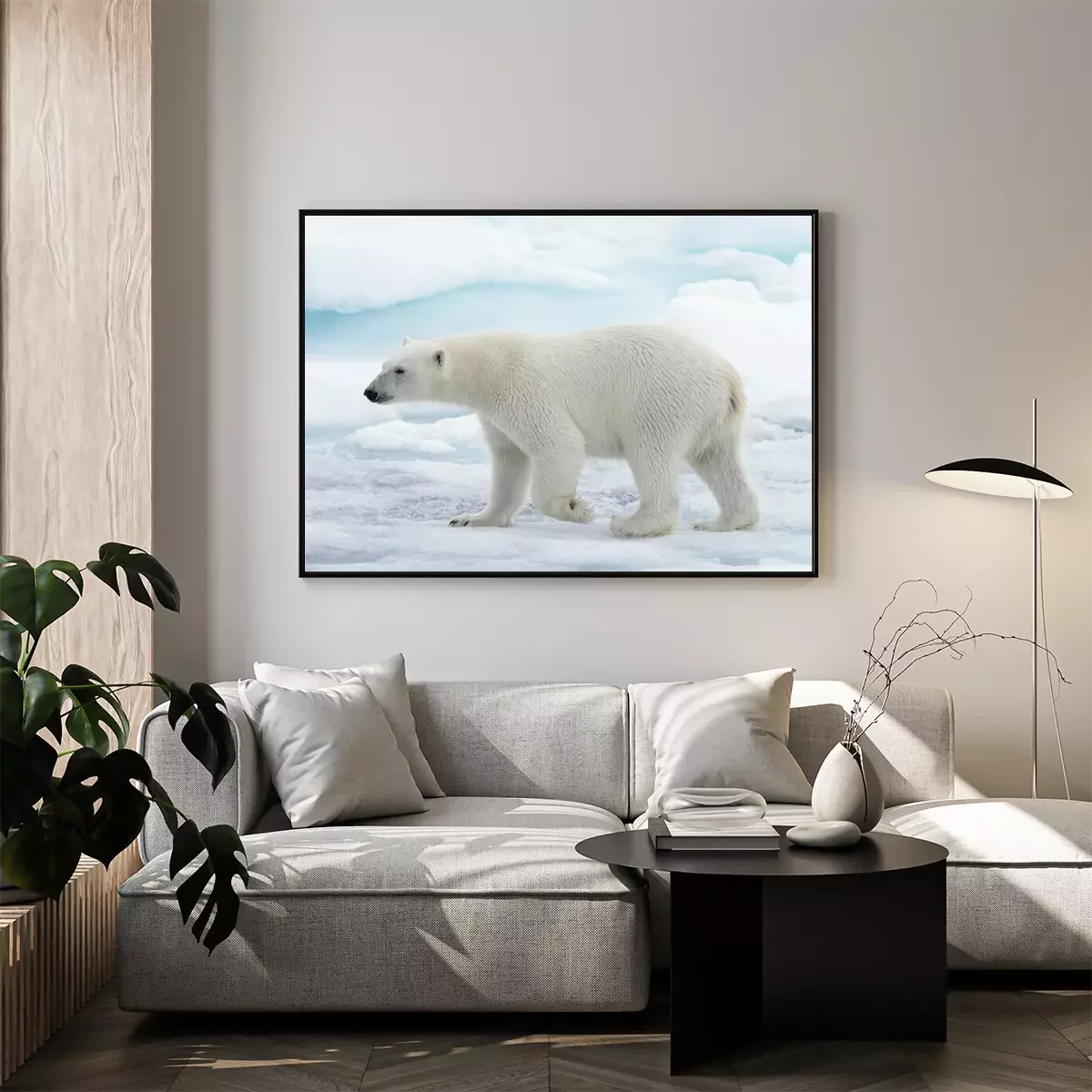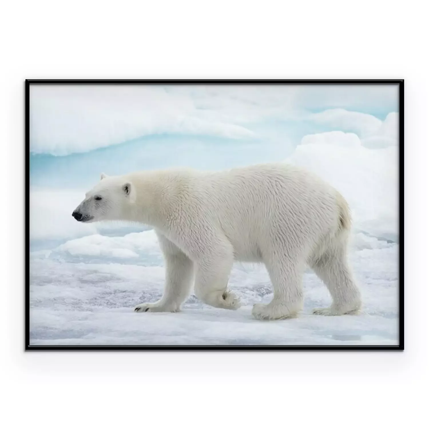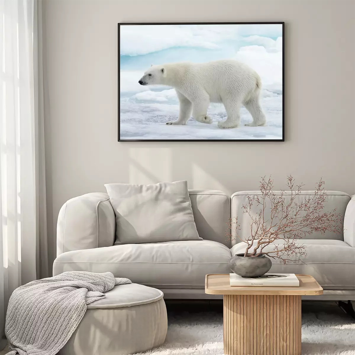 Poster  Ours polaire sauvage allant dans l'eau sur la banquise dans la mer arctique