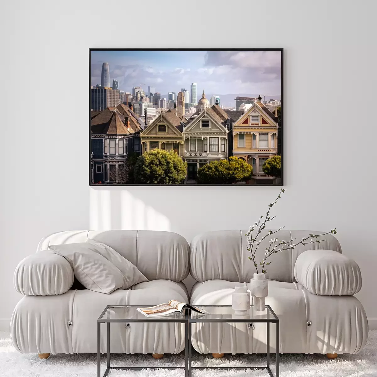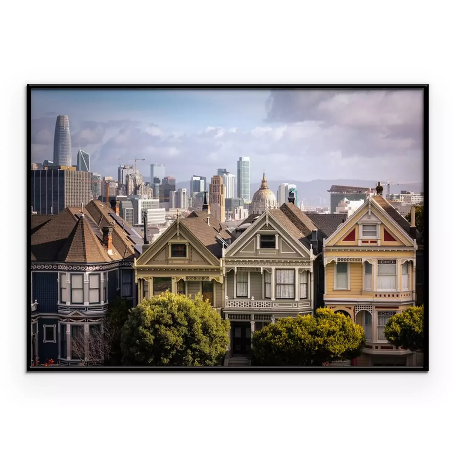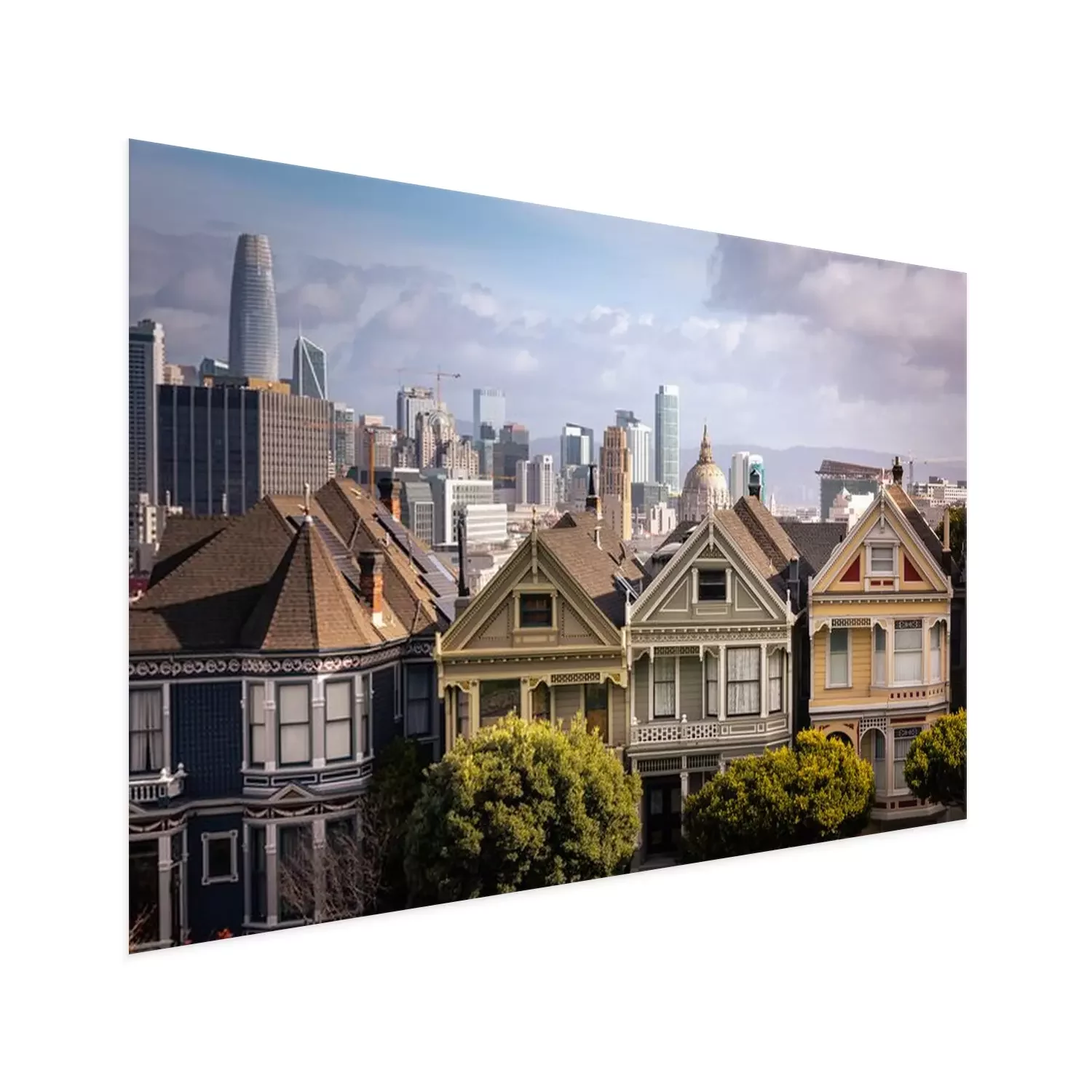 Poster  Painted Ladies houses and San Francisco's skyline at the back, California State, United States.
