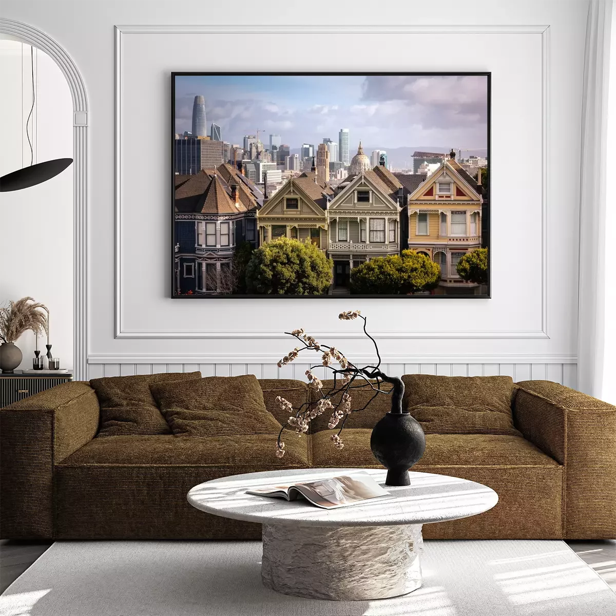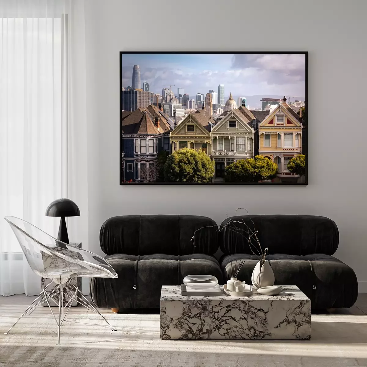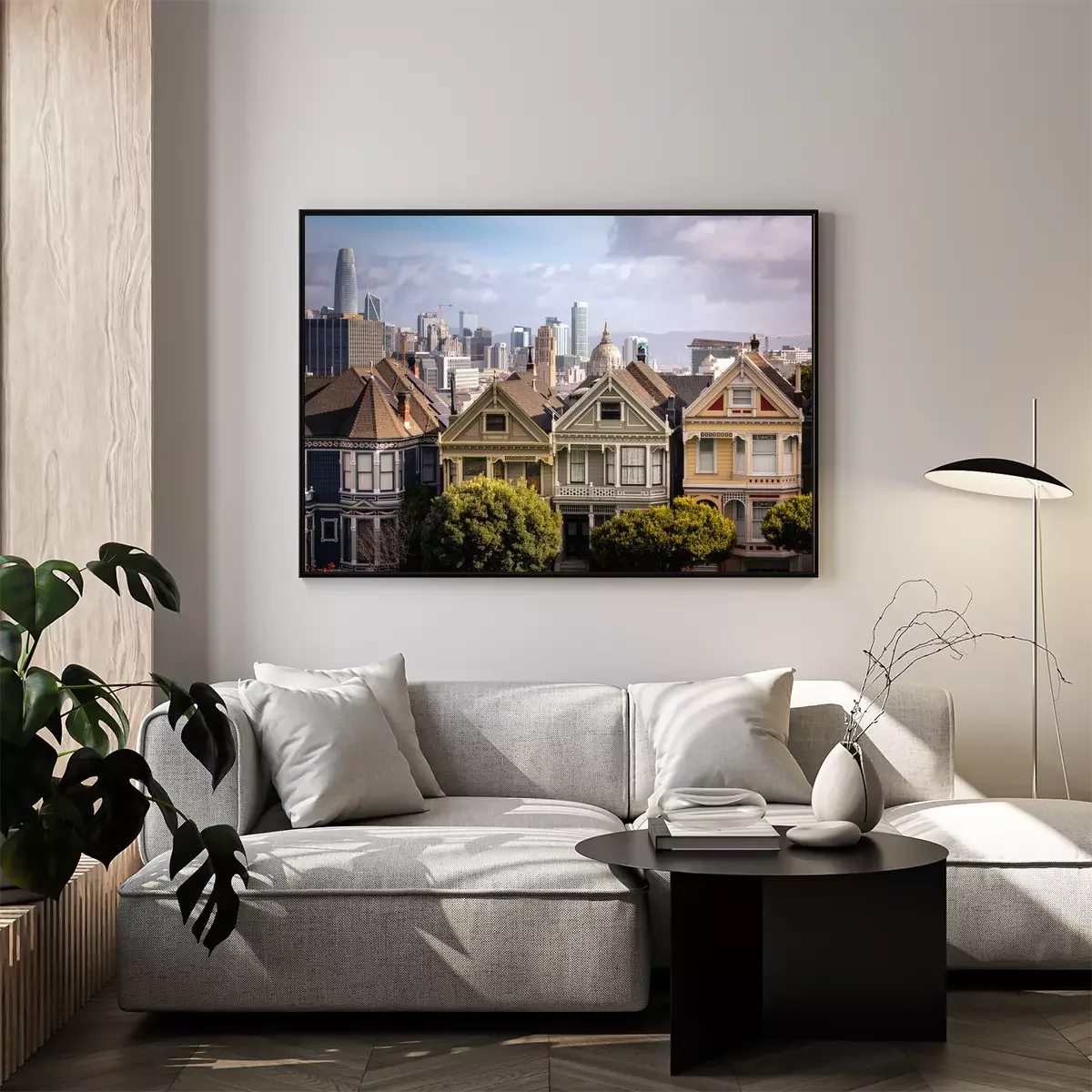 Poster  Painted Ladies houses and San Francisco's skyline at the back, California State, United States.